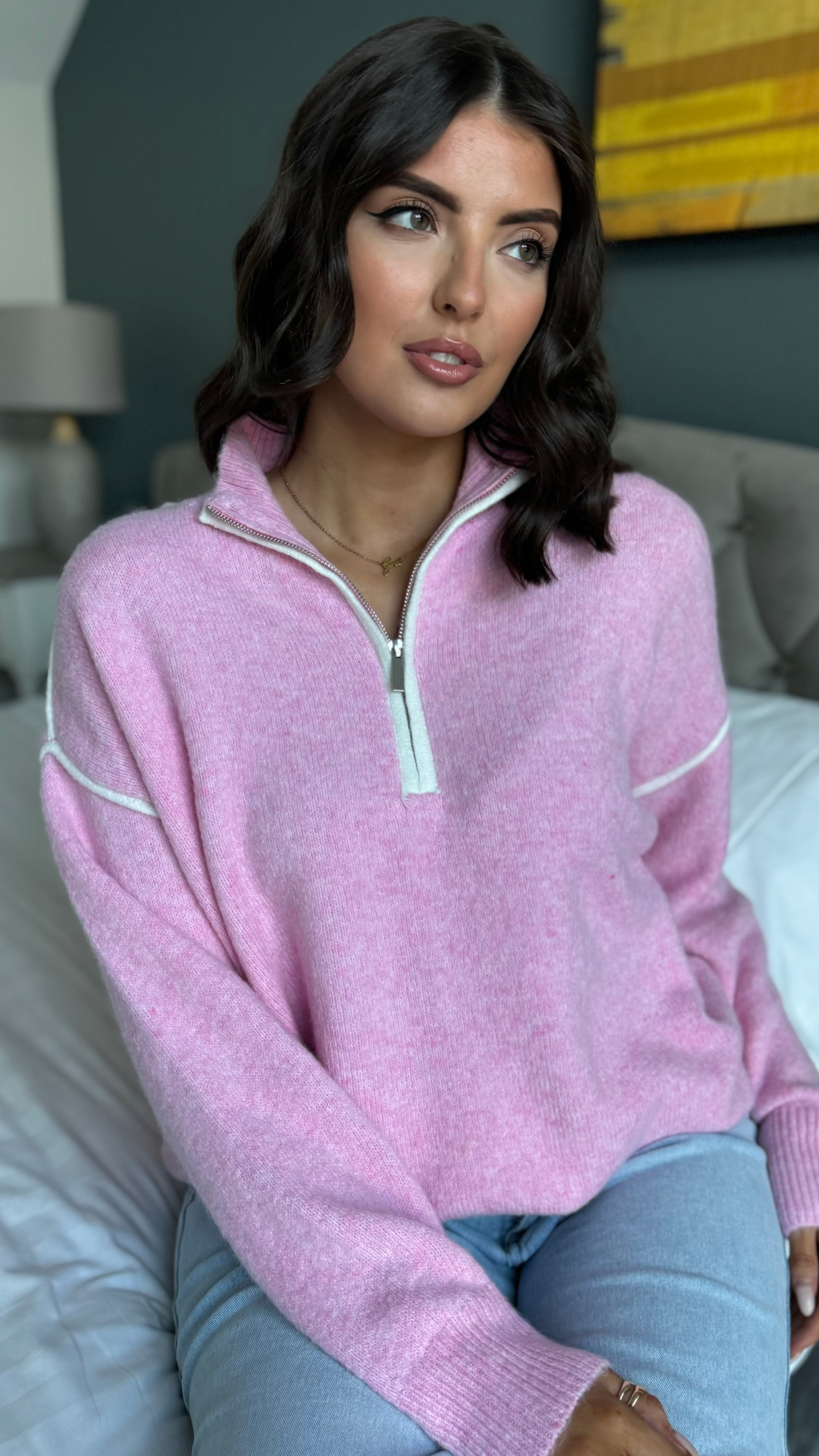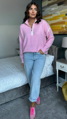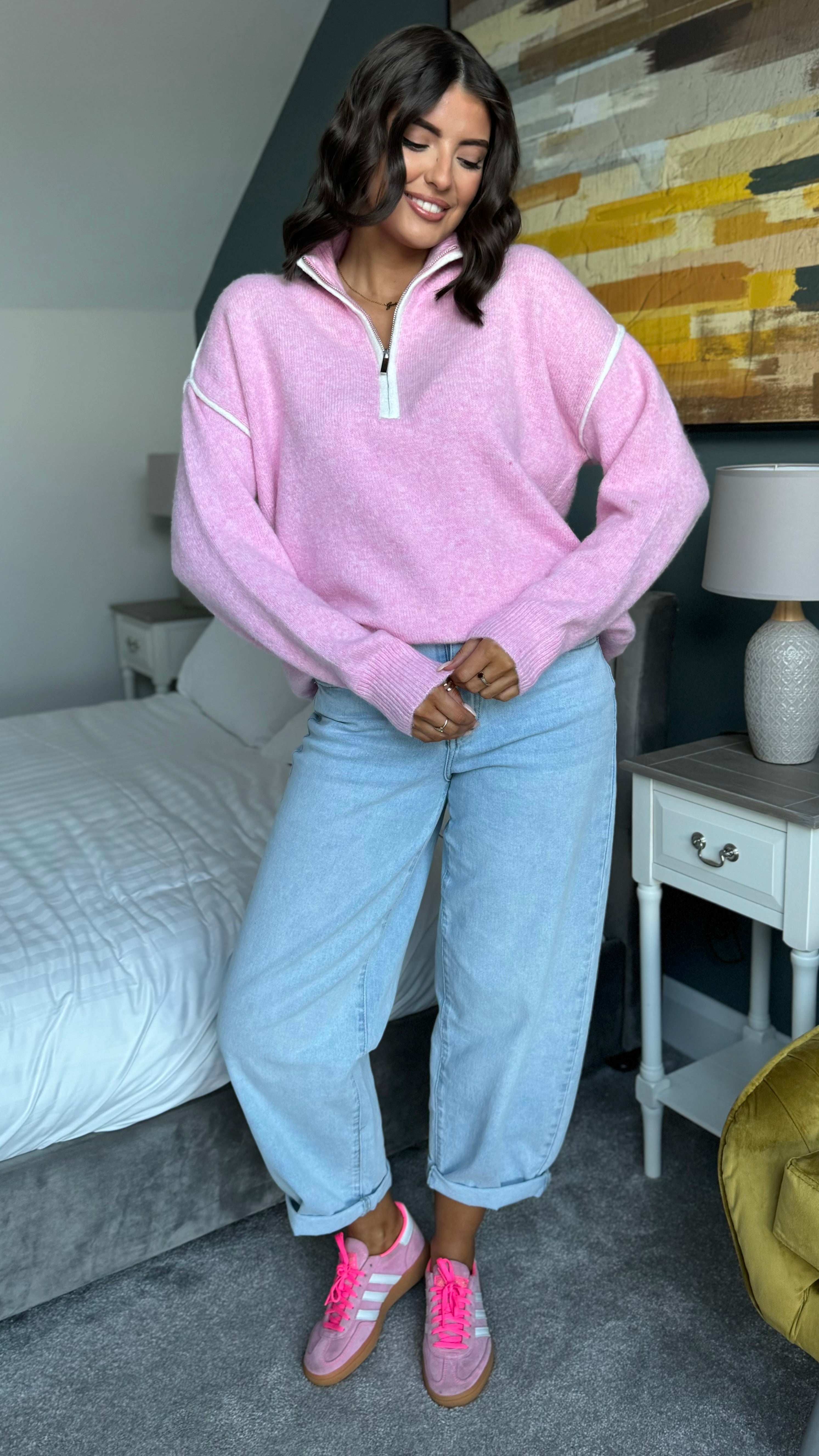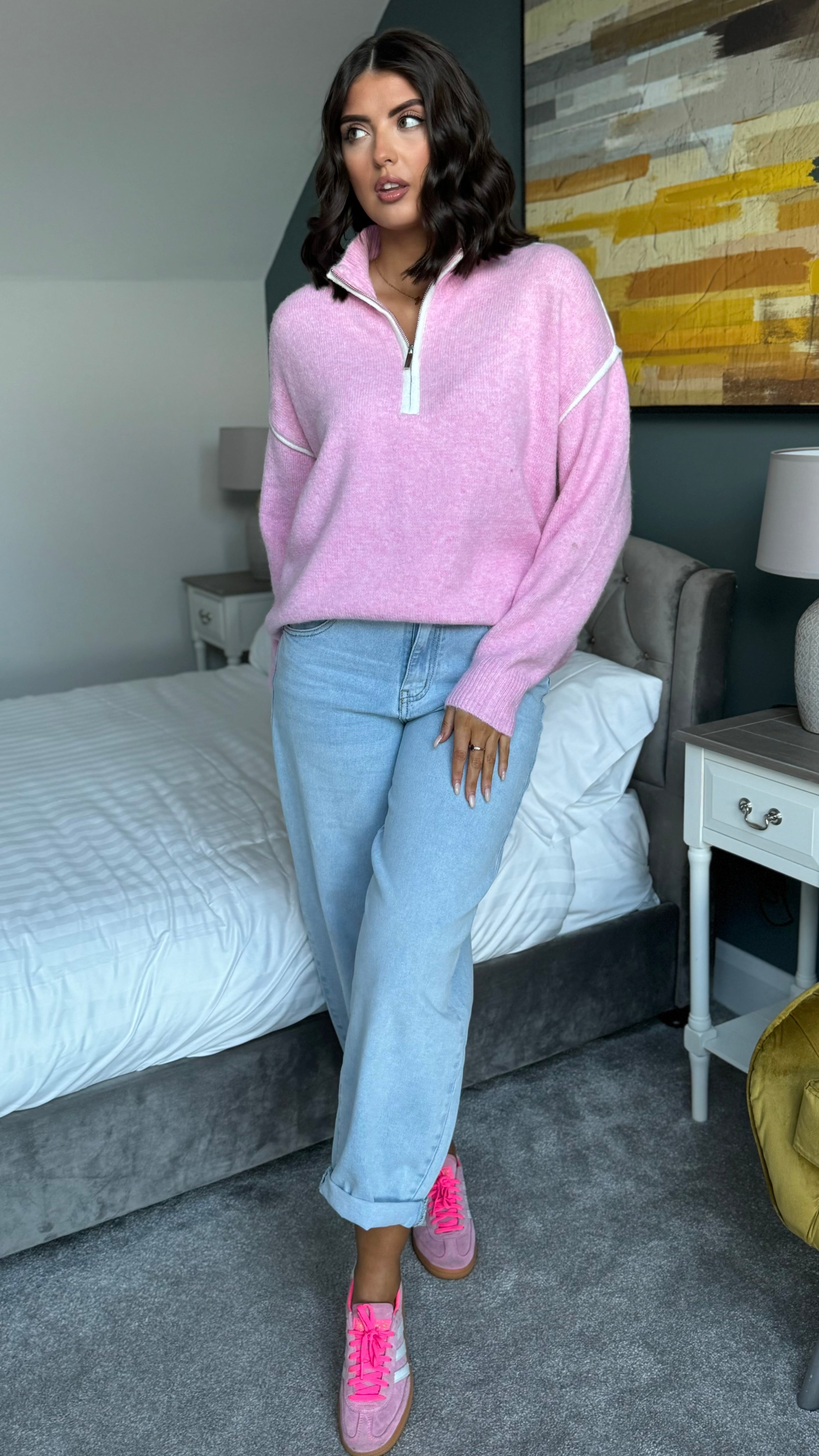 Wrap yourself in pure comfort with the Shayla Pink Quarter Zip Knitted Jumper—your new go-to for cosy days and casual vibes. This soft knit features a chic high neckline and crisp white contrast details that add a playful pop of style. The convenient quarter zip lets you adjust your warmth on the fly, making it perfect for layering or standalone wear. Whether you're lounging at home or out and about, this jumper delivers effortless comfort without compromising on looks.