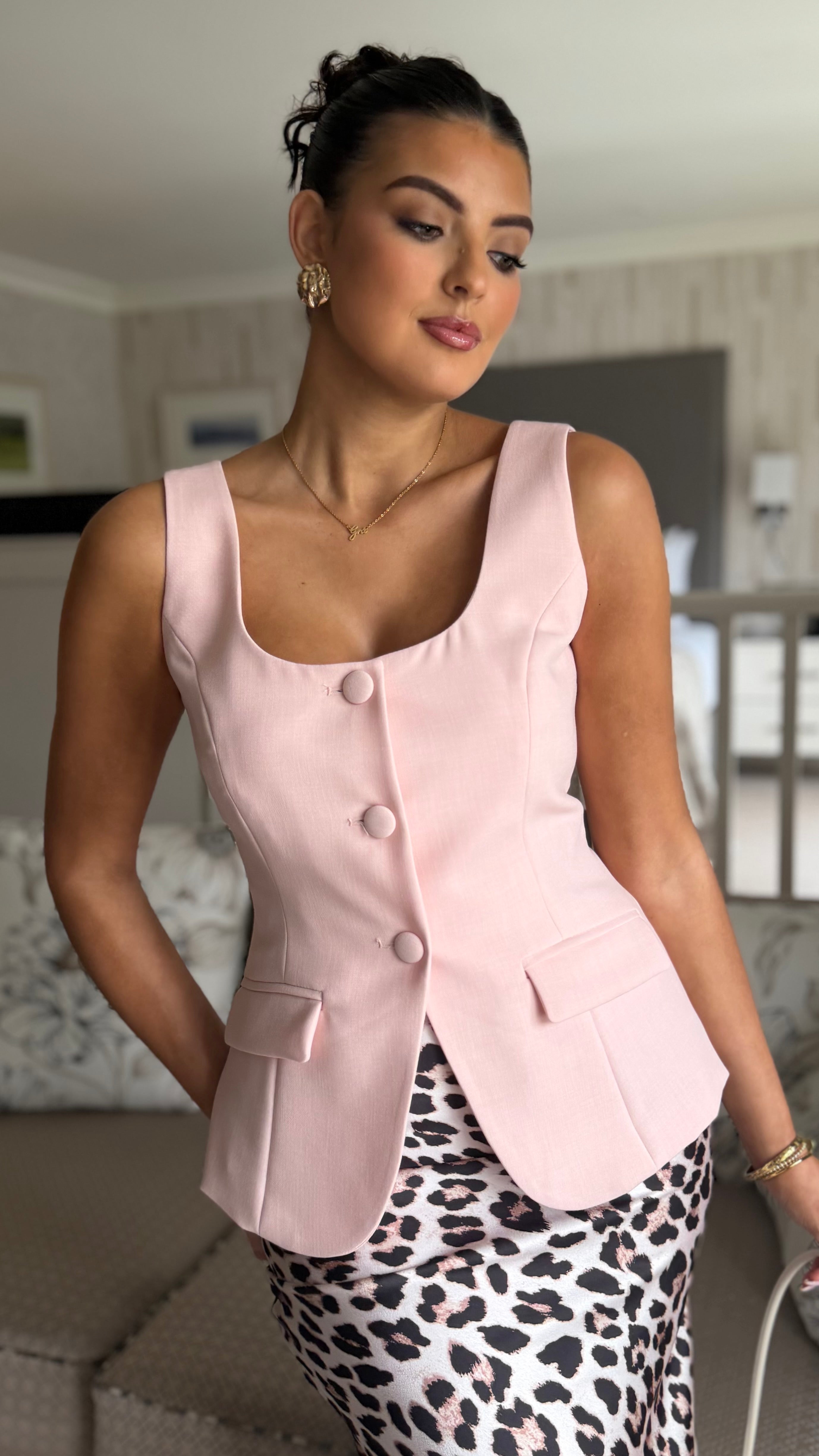 Introducing the Wrenley—your new go-to waistcoat that's equal parts chic and charming. This tailored beauty features a flattering square neckline that frames the face beautifully, paired with sleek self-covered buttons running down the front for a polished finish. The faux pockets add that perfect touch of practicality (even if they're just for show), while the expertly tailored fit hugs you in all the right places. Dress it up over a crisp white shirt or throw it on with your favourite tee—this versatile piece is ready to elevate any outfit with effortless style.