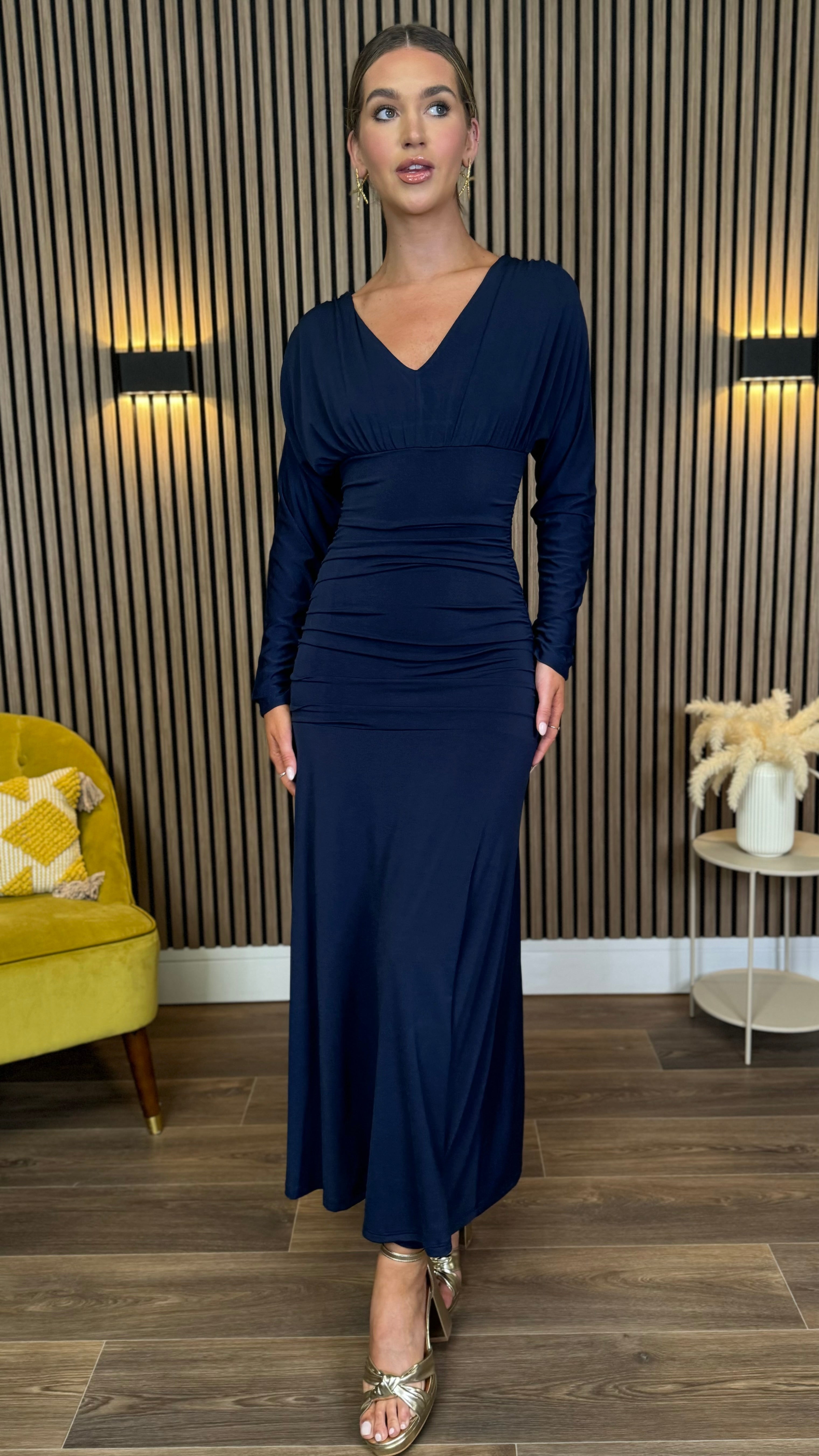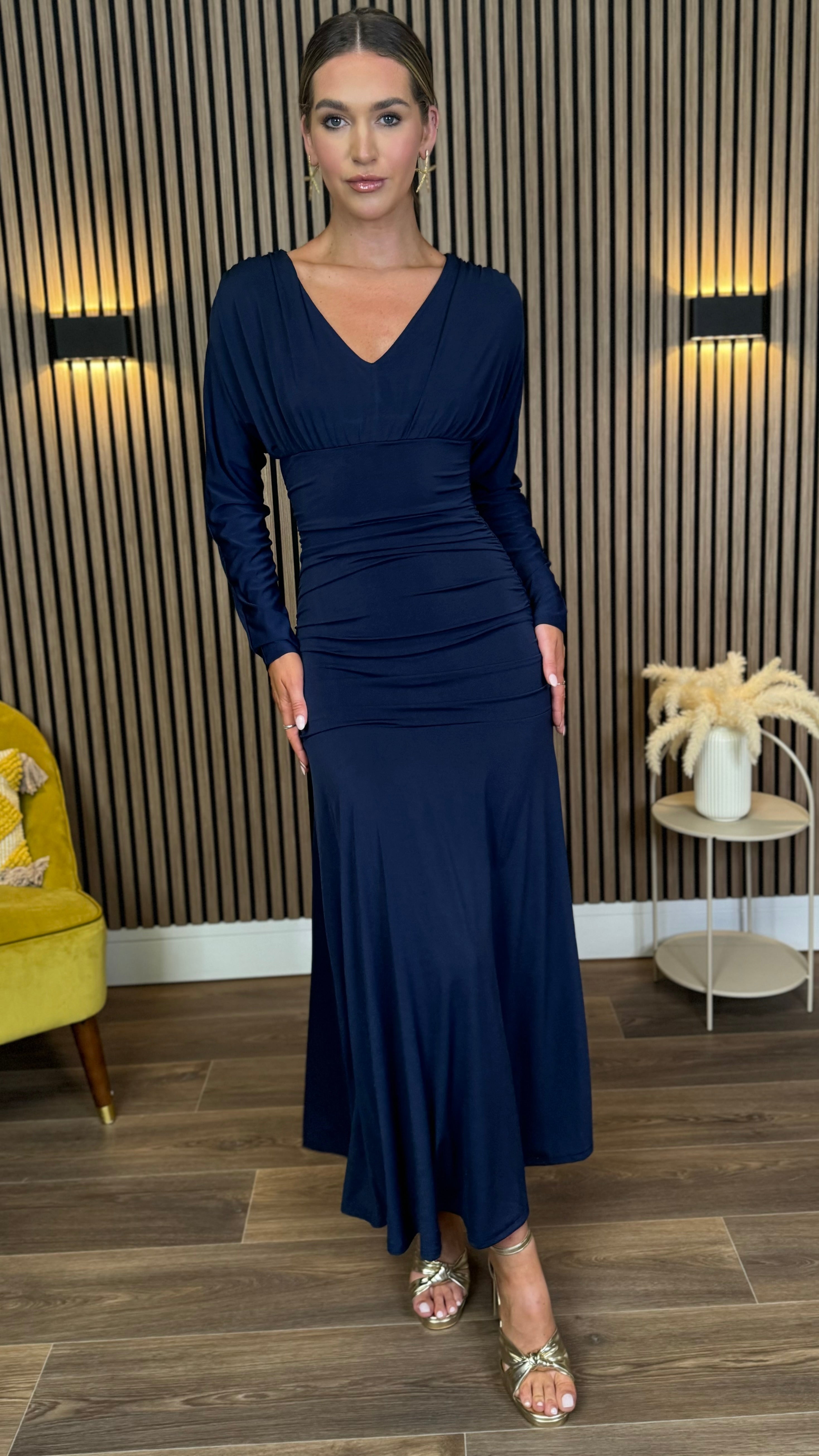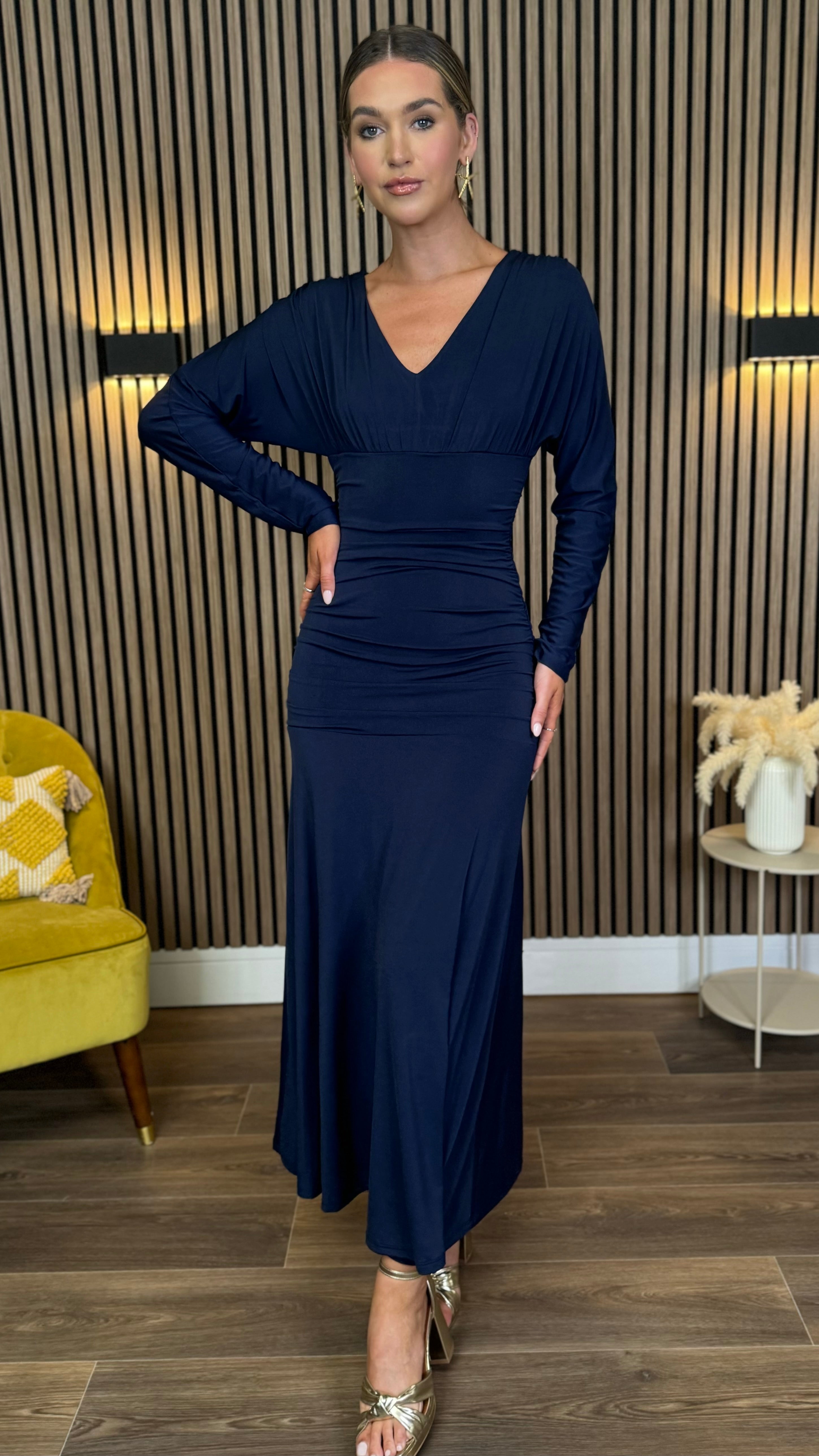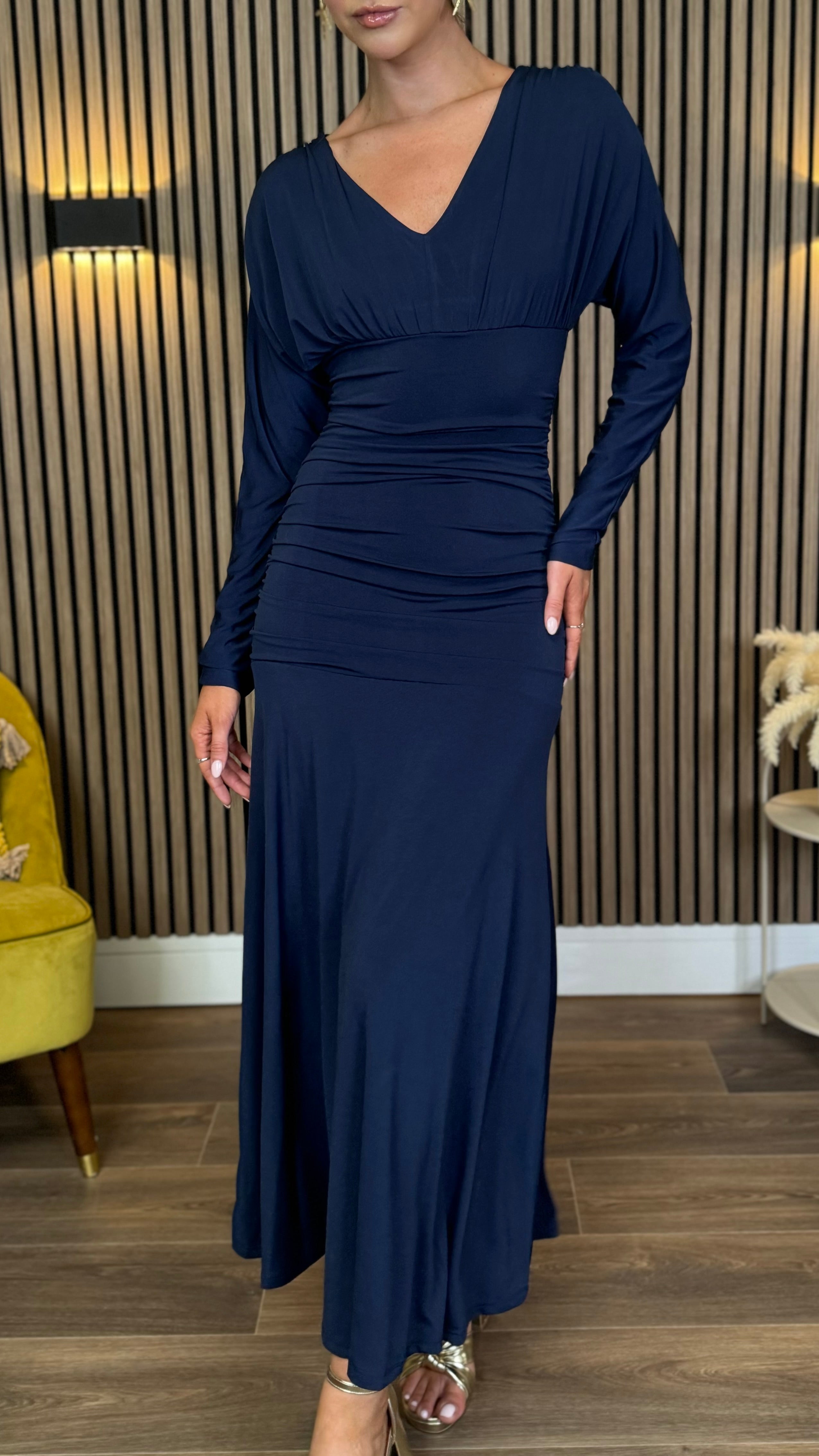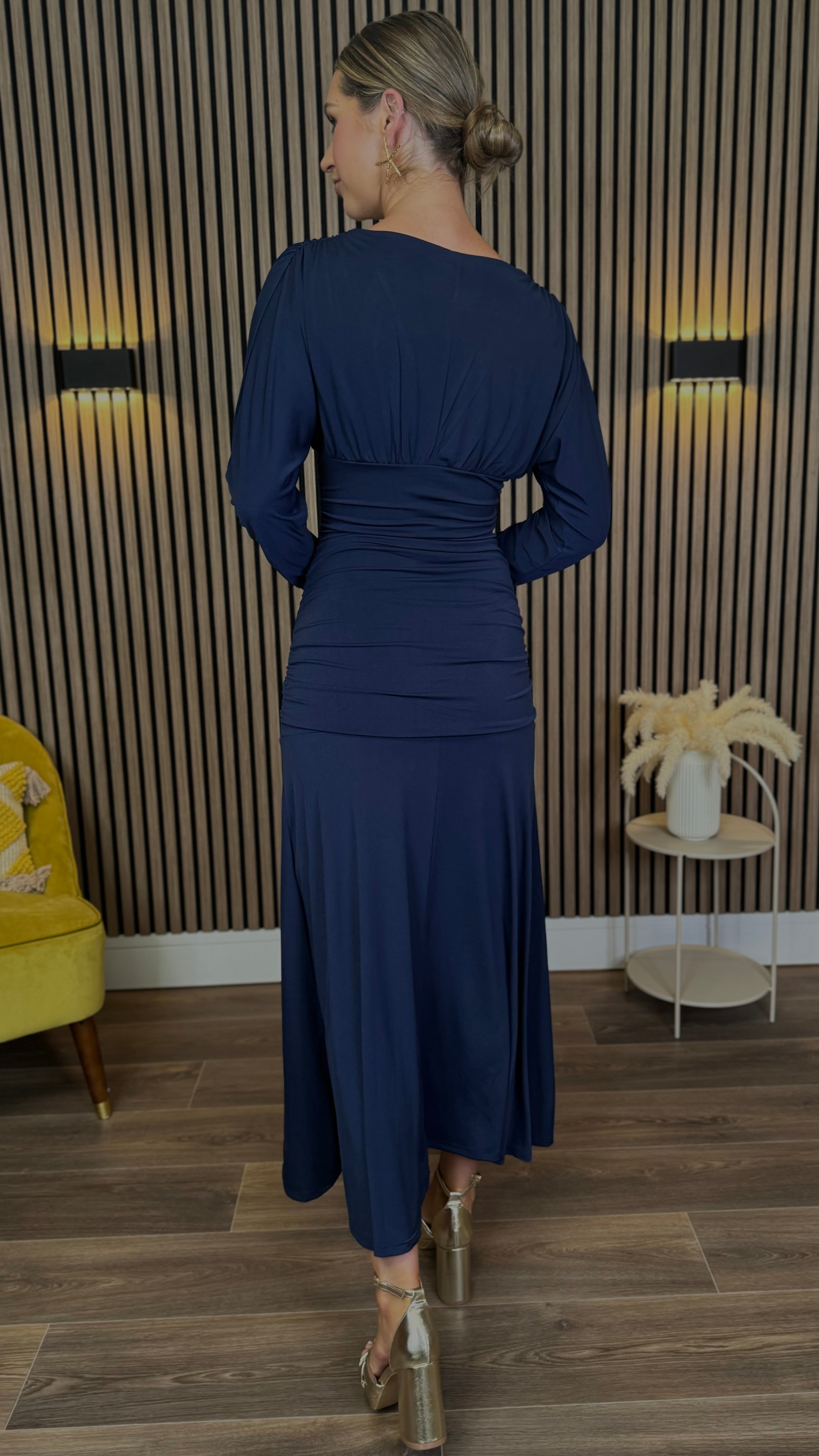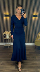 Aisling Navy Long Sleeve Ruched Midaxi Dress