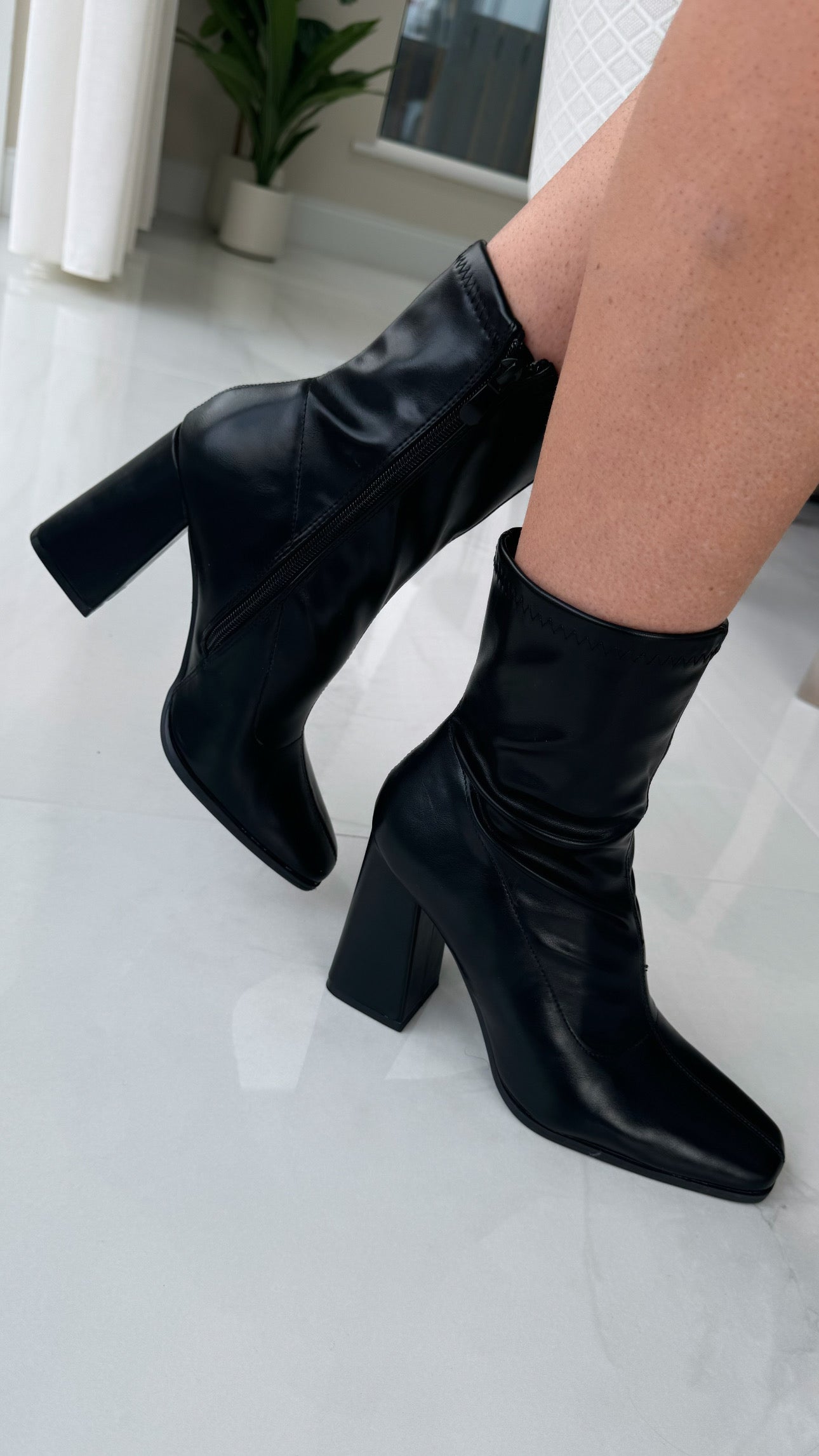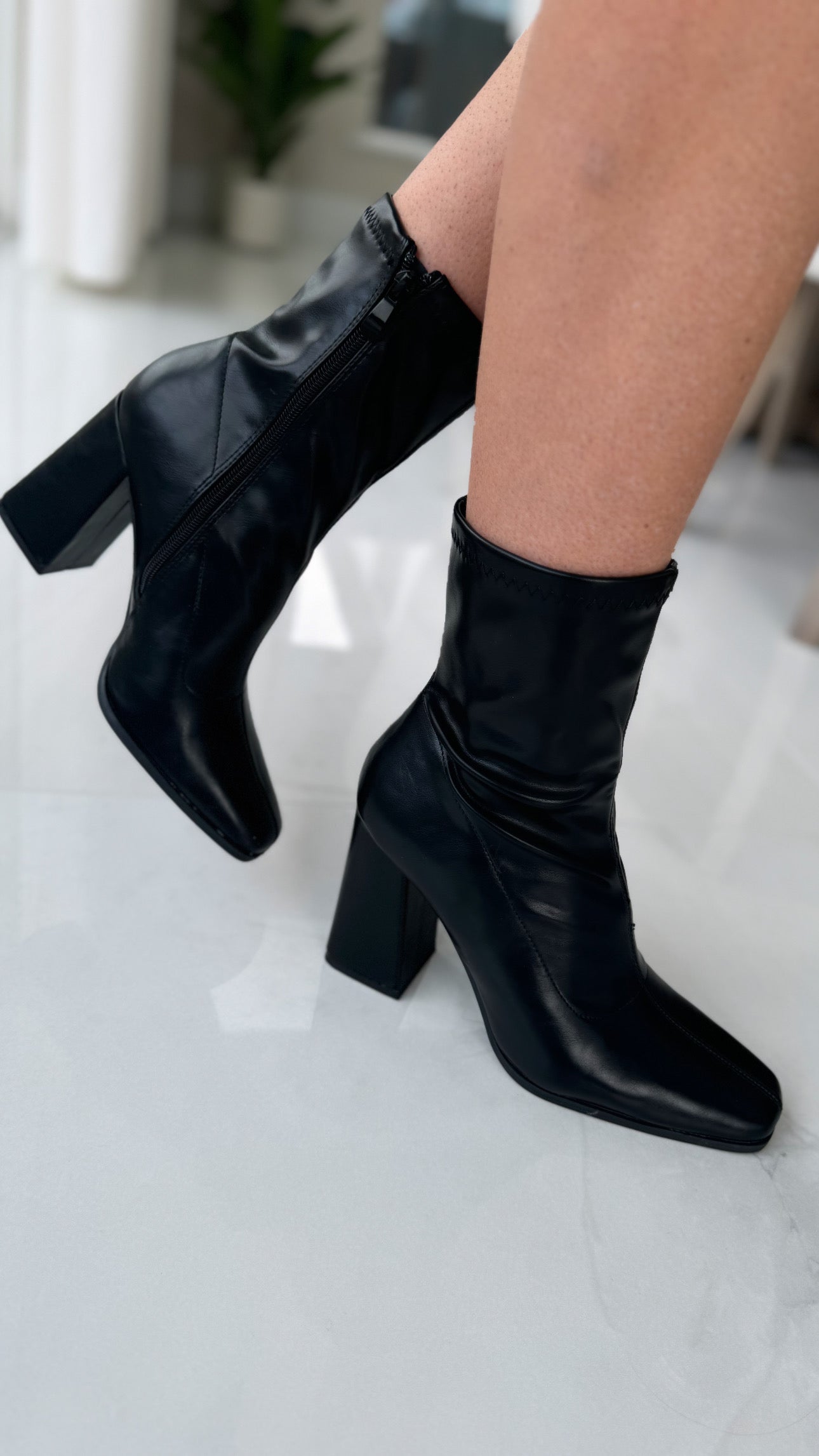 Step up your style game with the Megan Black Faux Leather Boots! These ankle boots blend rich tones with sleek faux leather for a look that’s both chic and cruelty-free.