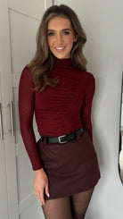 Adaline Dark Red High Neck Ruched Sequin Detail Top