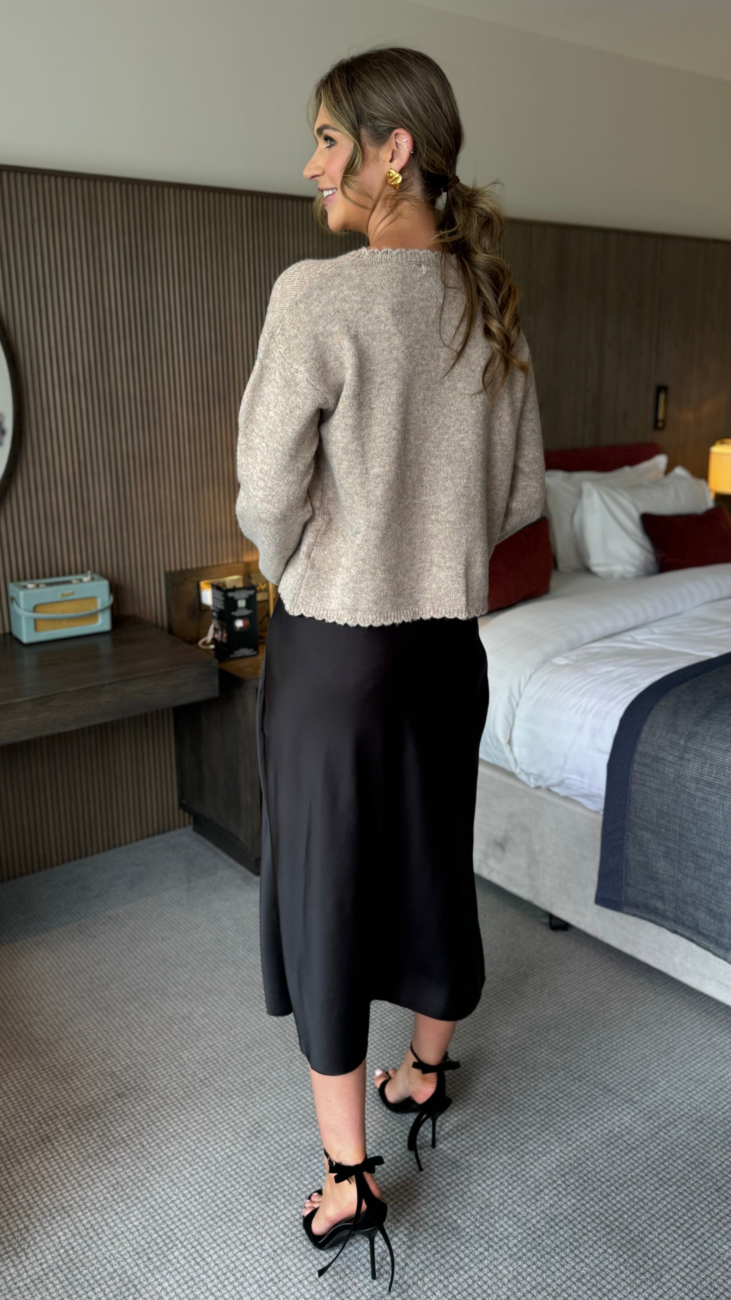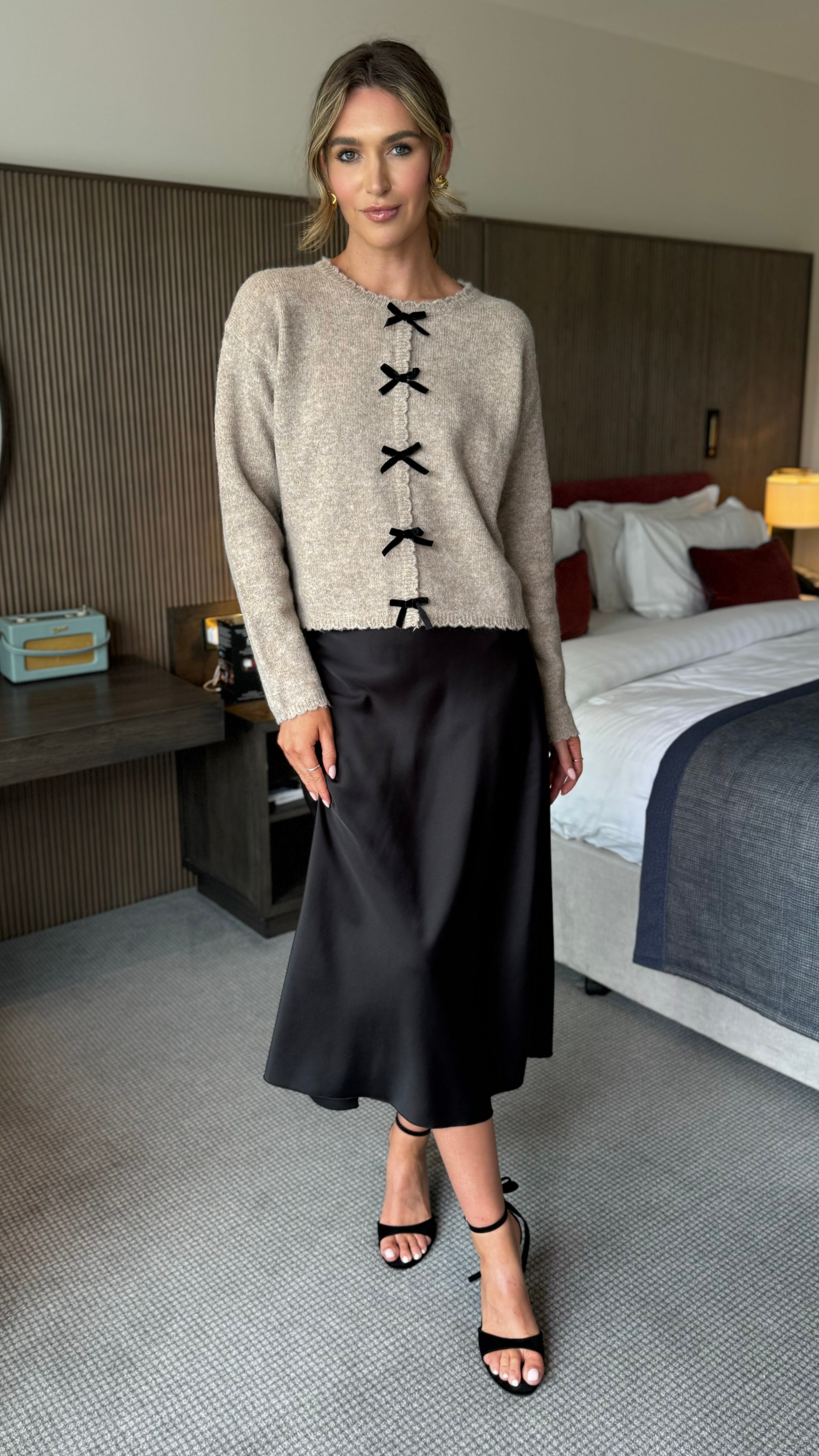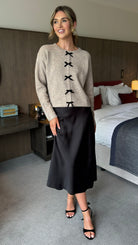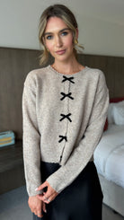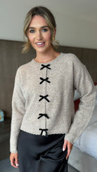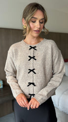 Aileen Taupe & Black Velvet Bow Detail Jumper