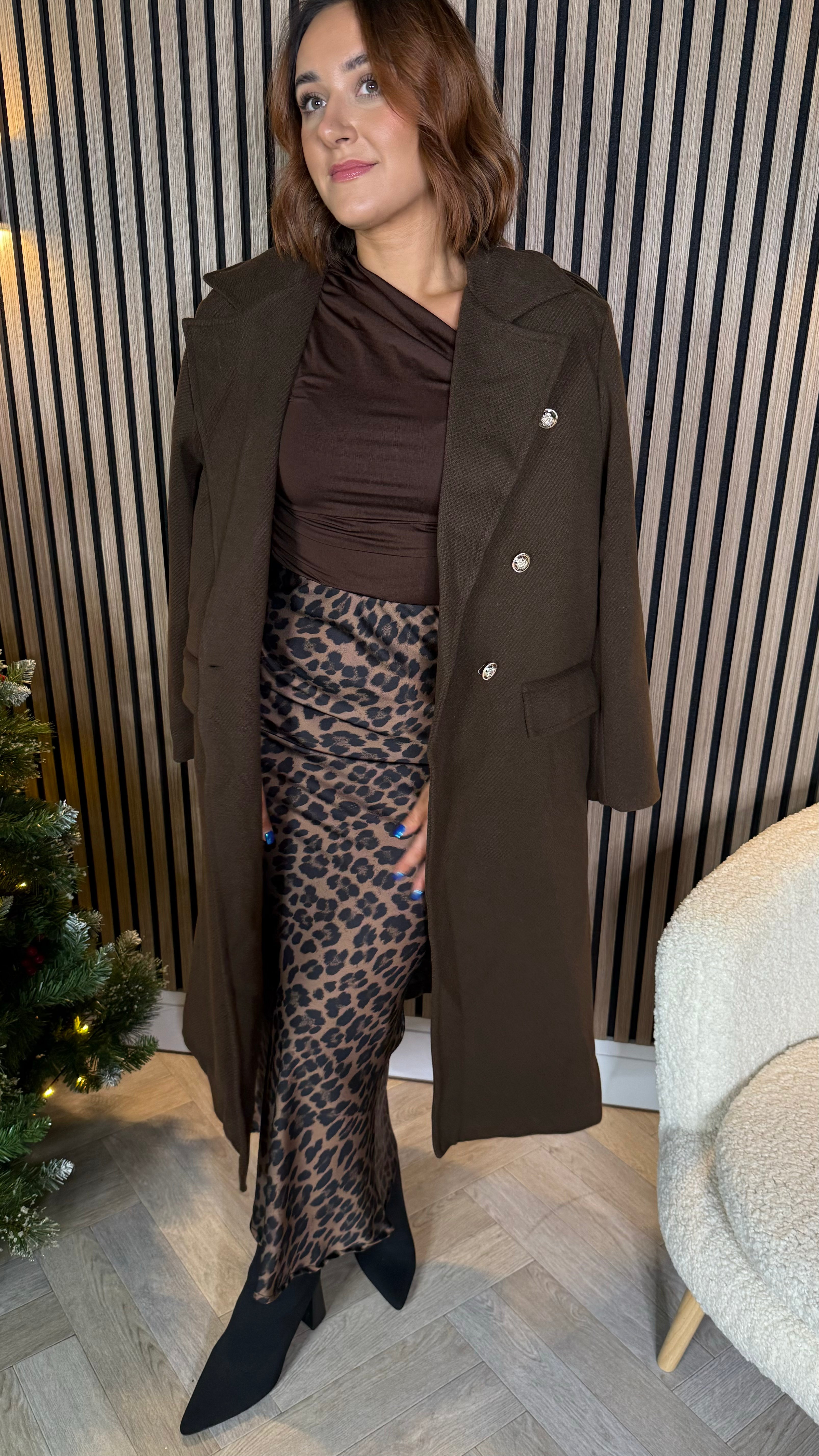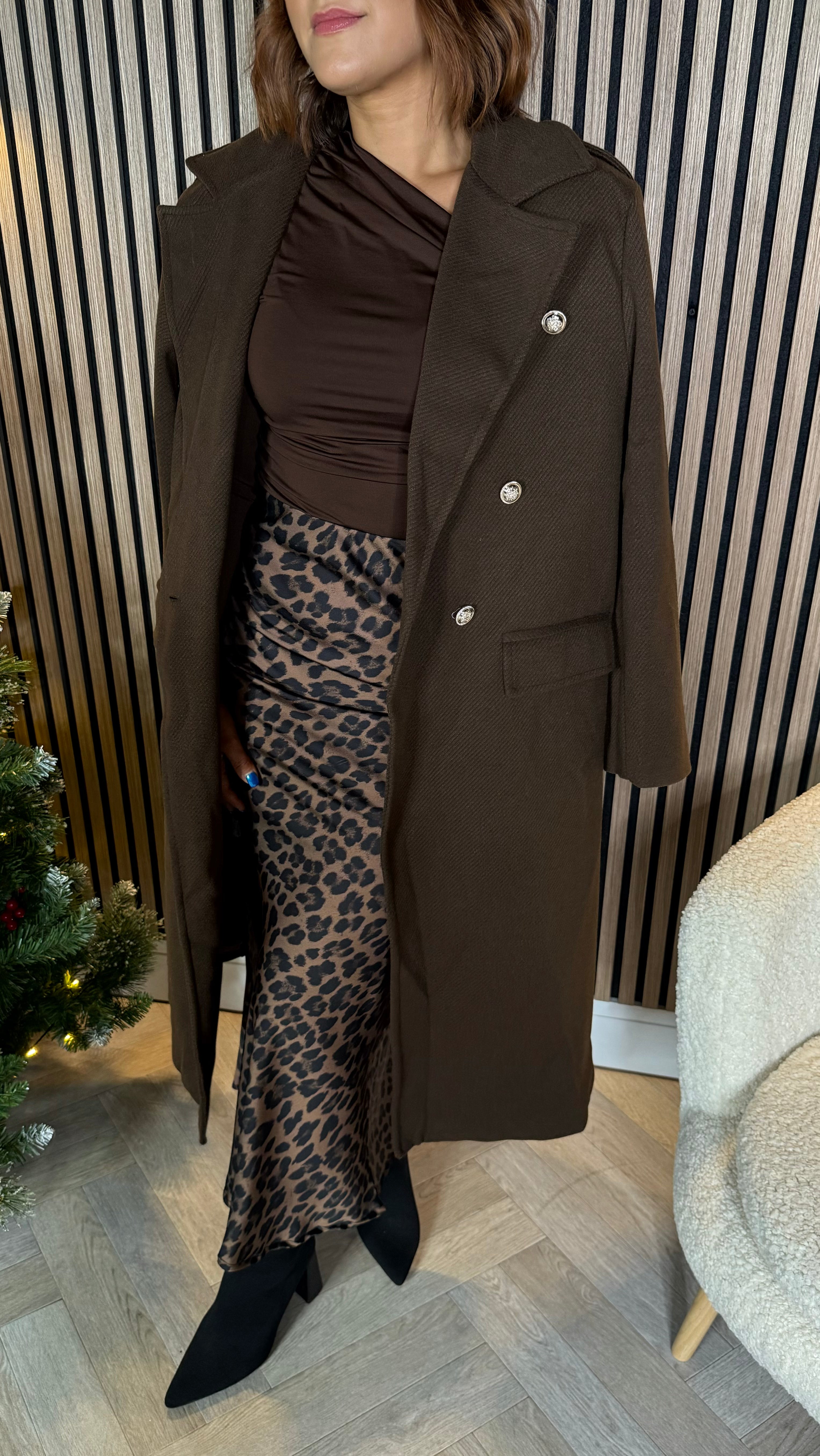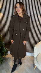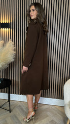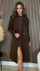 Alorie Chocolate Brown Wool Finish Midi Length Coat
