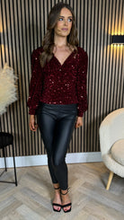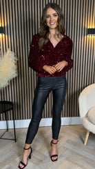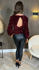 Get ready to stand out in the Andreea Red Sequin V Neck Top! With its long sleeves and shoulder definition, this top adds a touch of glamour to any outfit. Plus, the back cut out detail adds a playful, unexpected element. Sparkle and shine with this unique piece!