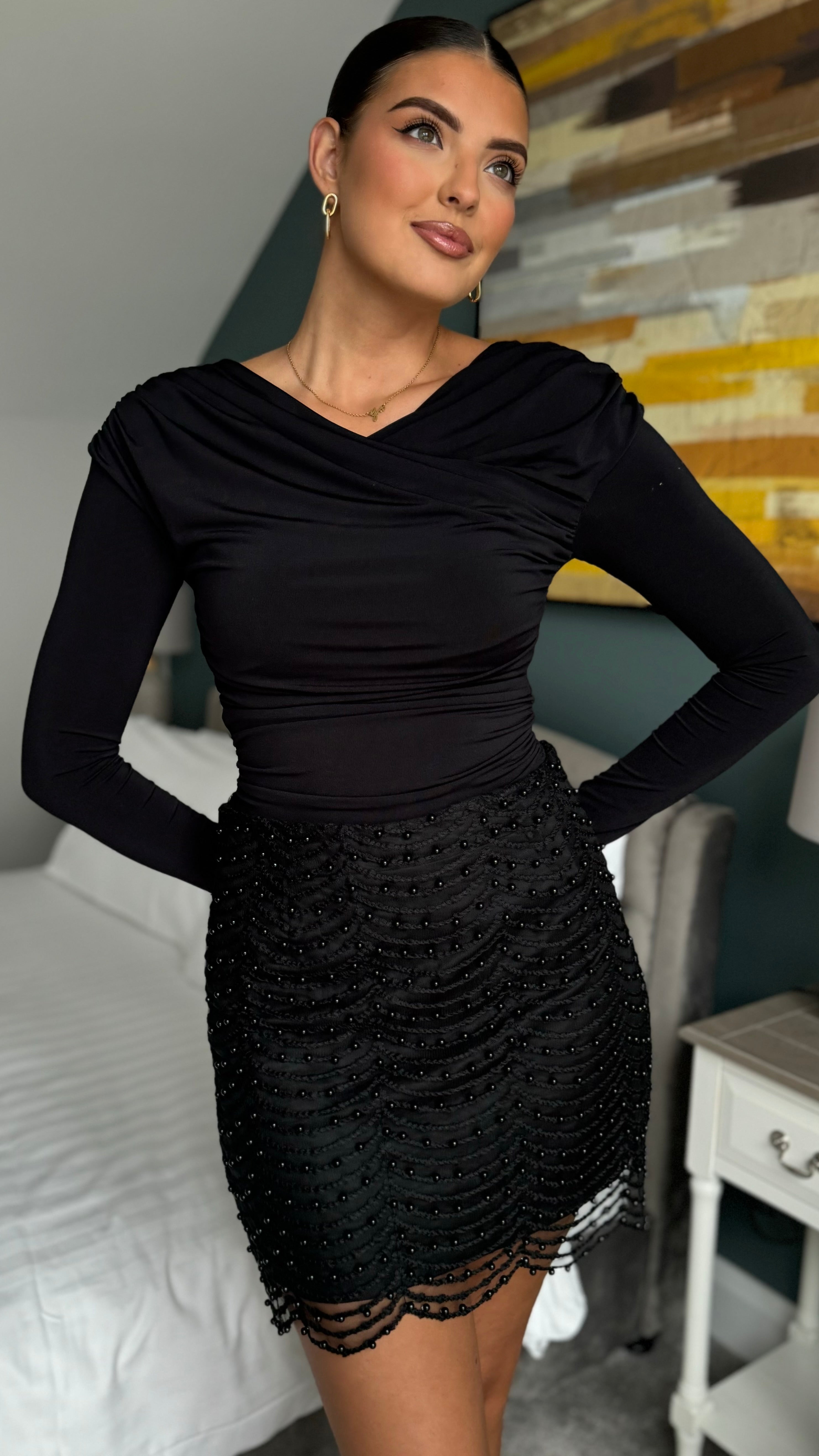 Angelica Black Beaded Mini Skirt