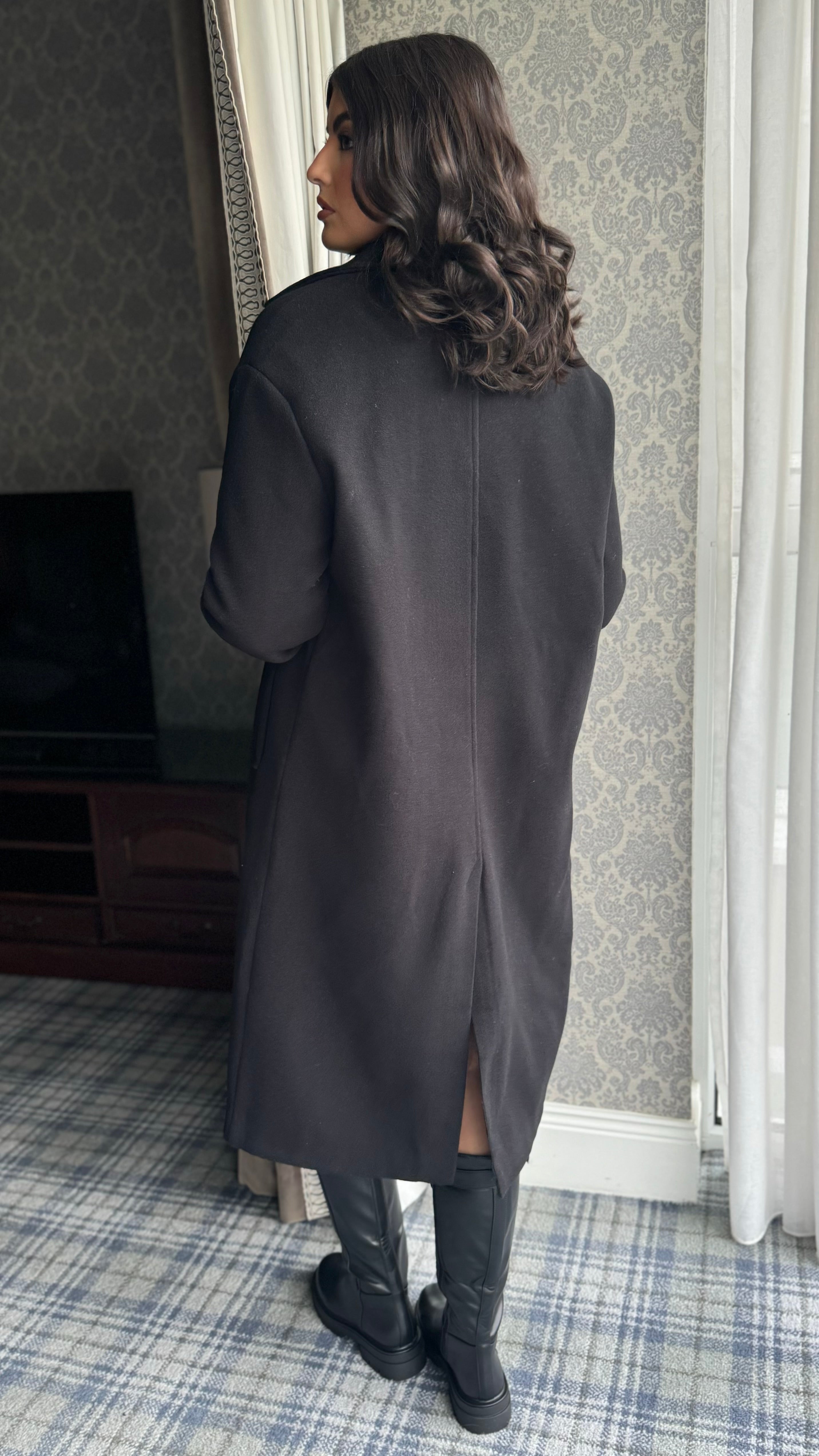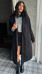 Step out in style with the Anisa Black Oversized Button Detail Coat, featuring striking buttons that pop against the rich black fabric. Enjoy functional pockets perfect for keeping your hands cozy or stashing essentials. The oversized collar adds a fun, bold twist to your look, while belted cuffs let you play with fit and flair.