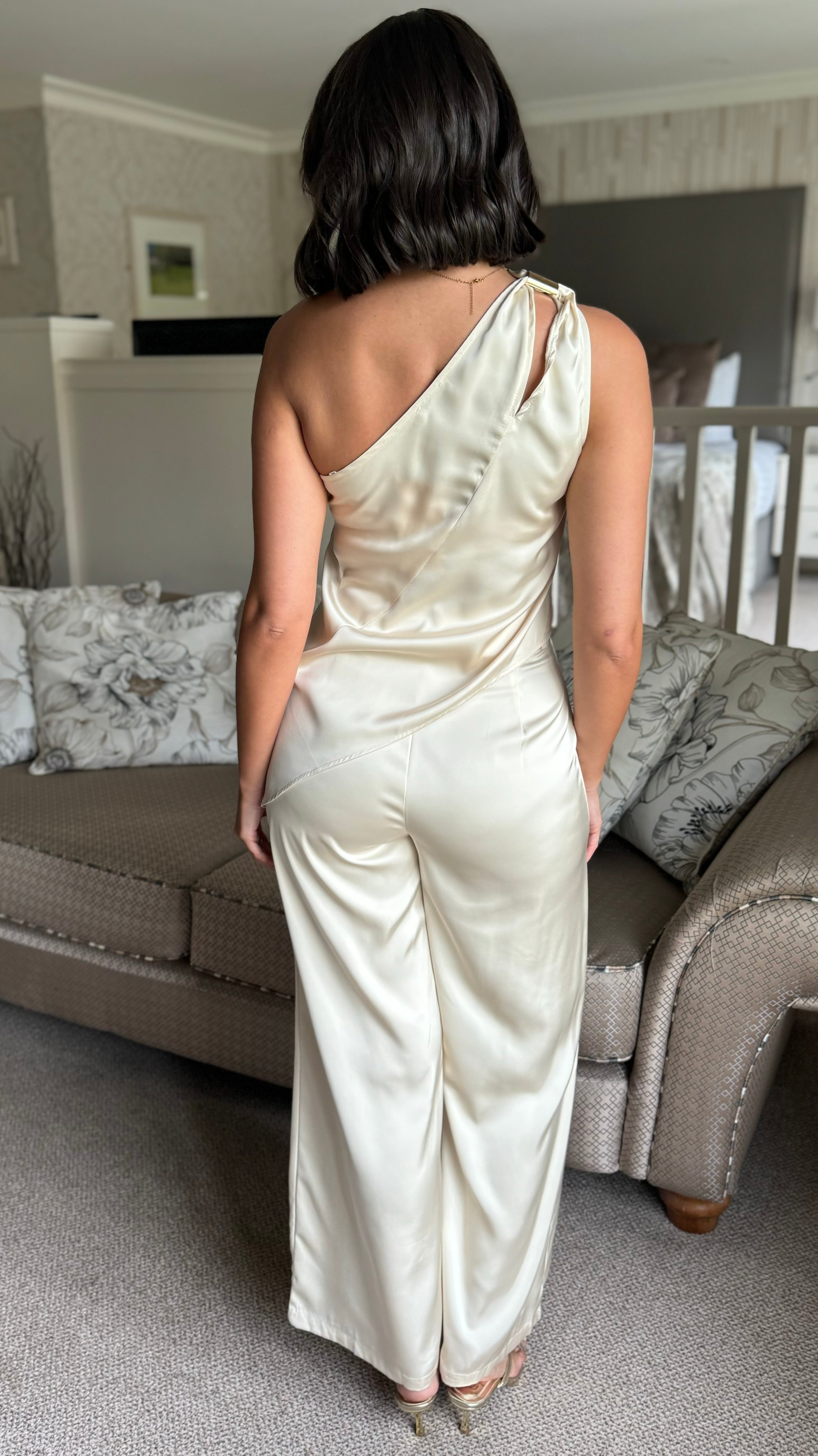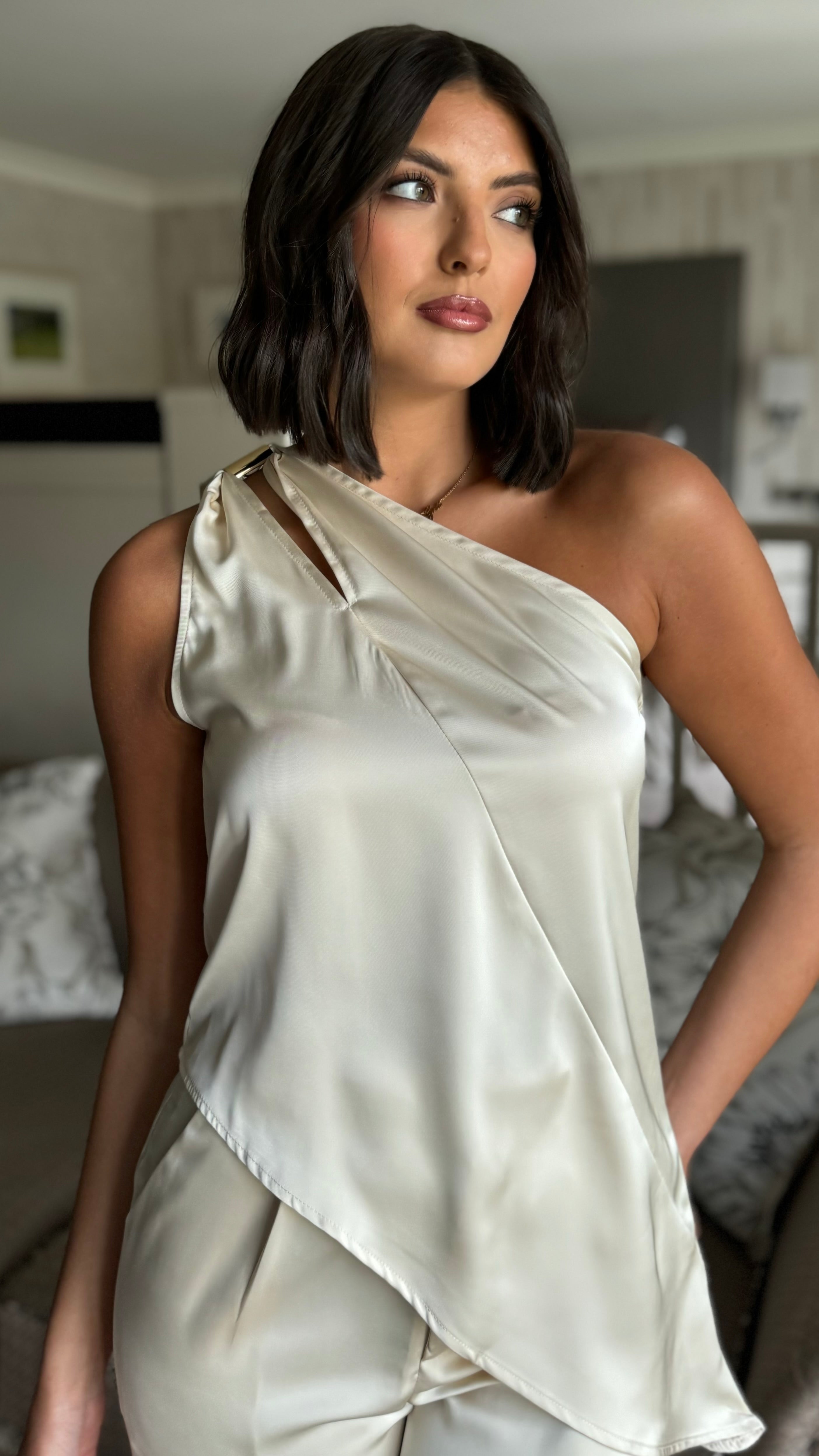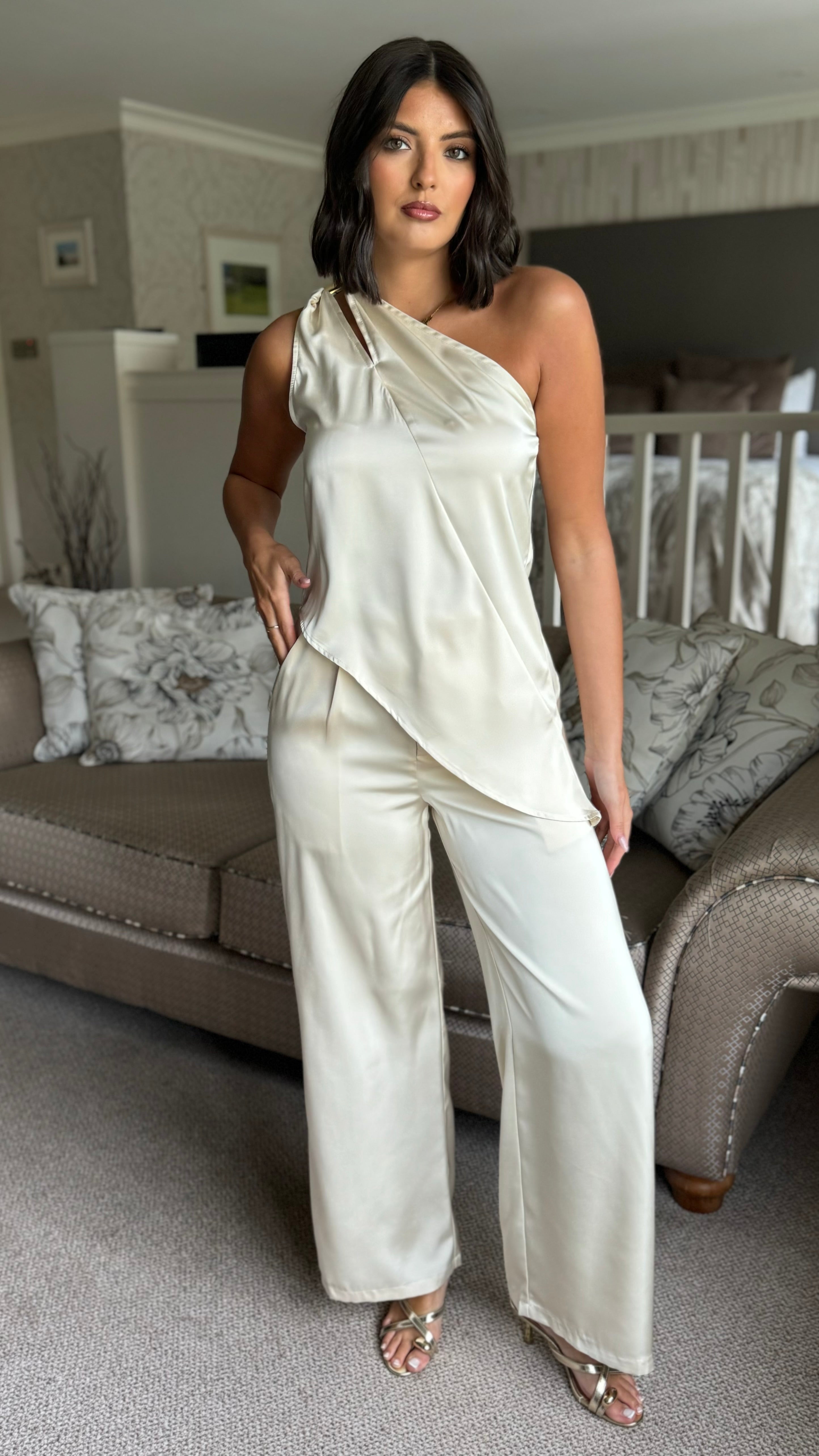 Ashley Champagne Satin One Shoulder Co-Ord
