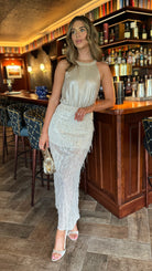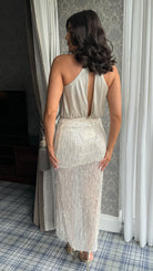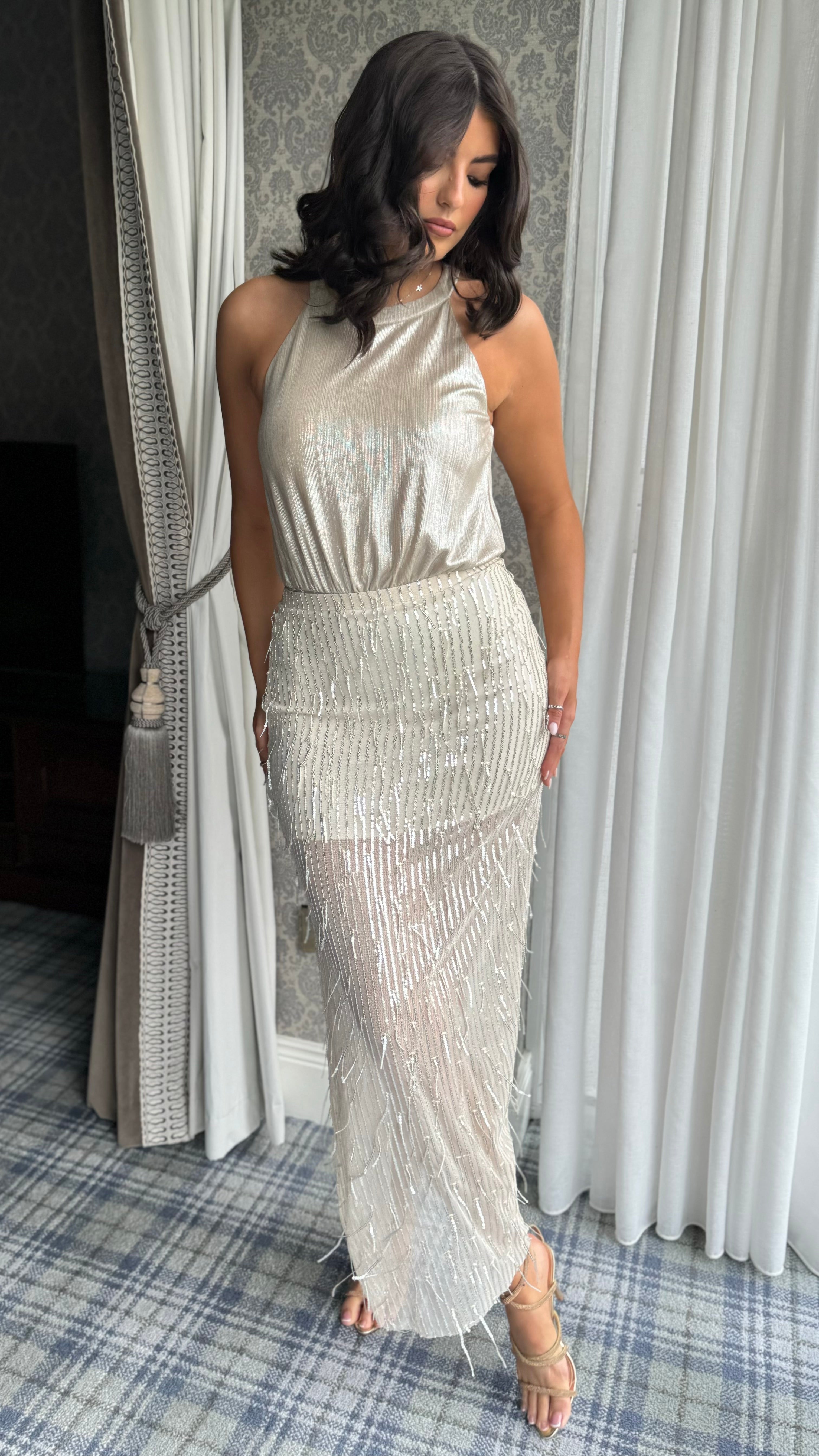 Astra Champagne Sequin Mesh Detail Maxi Skirt