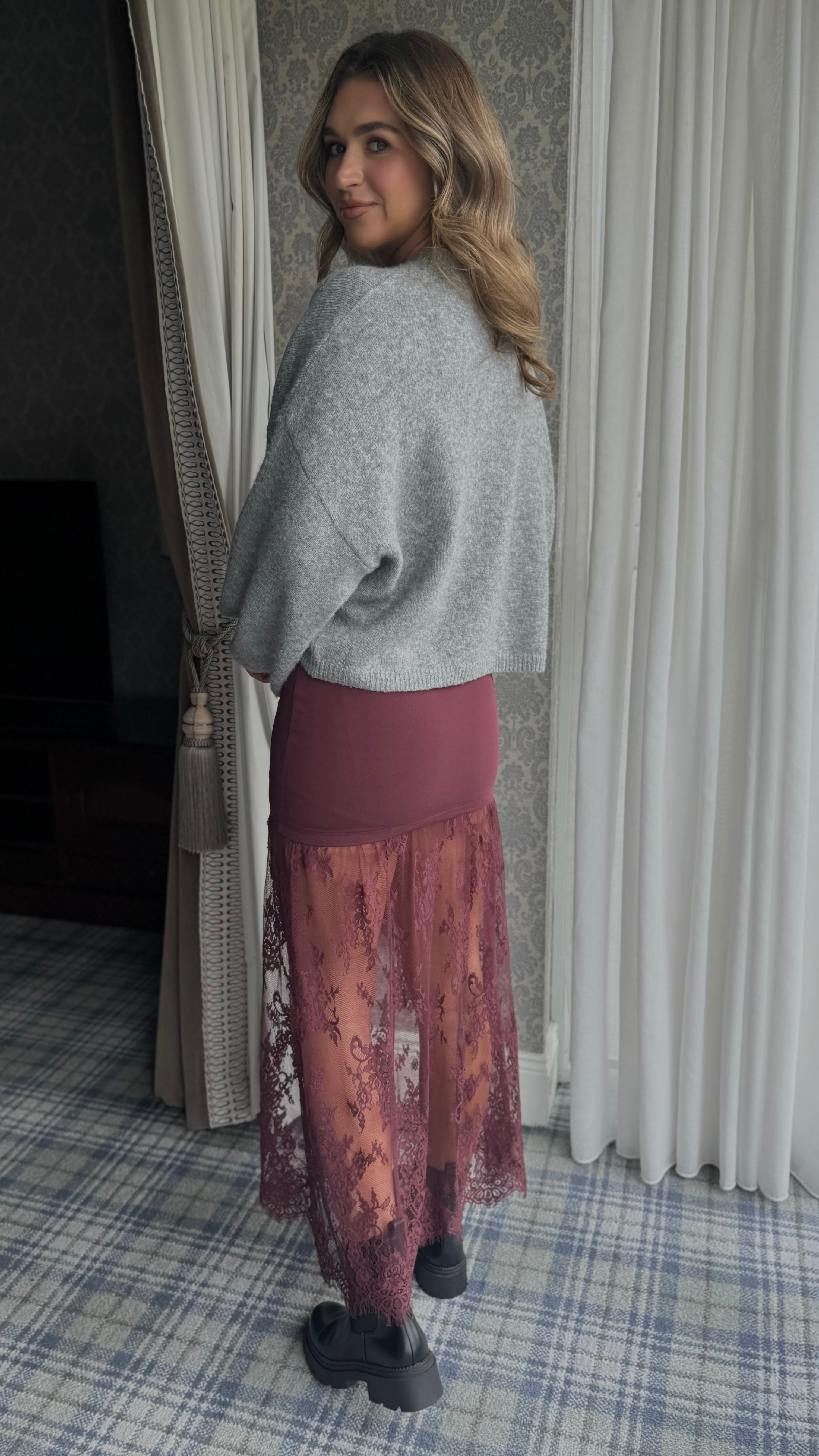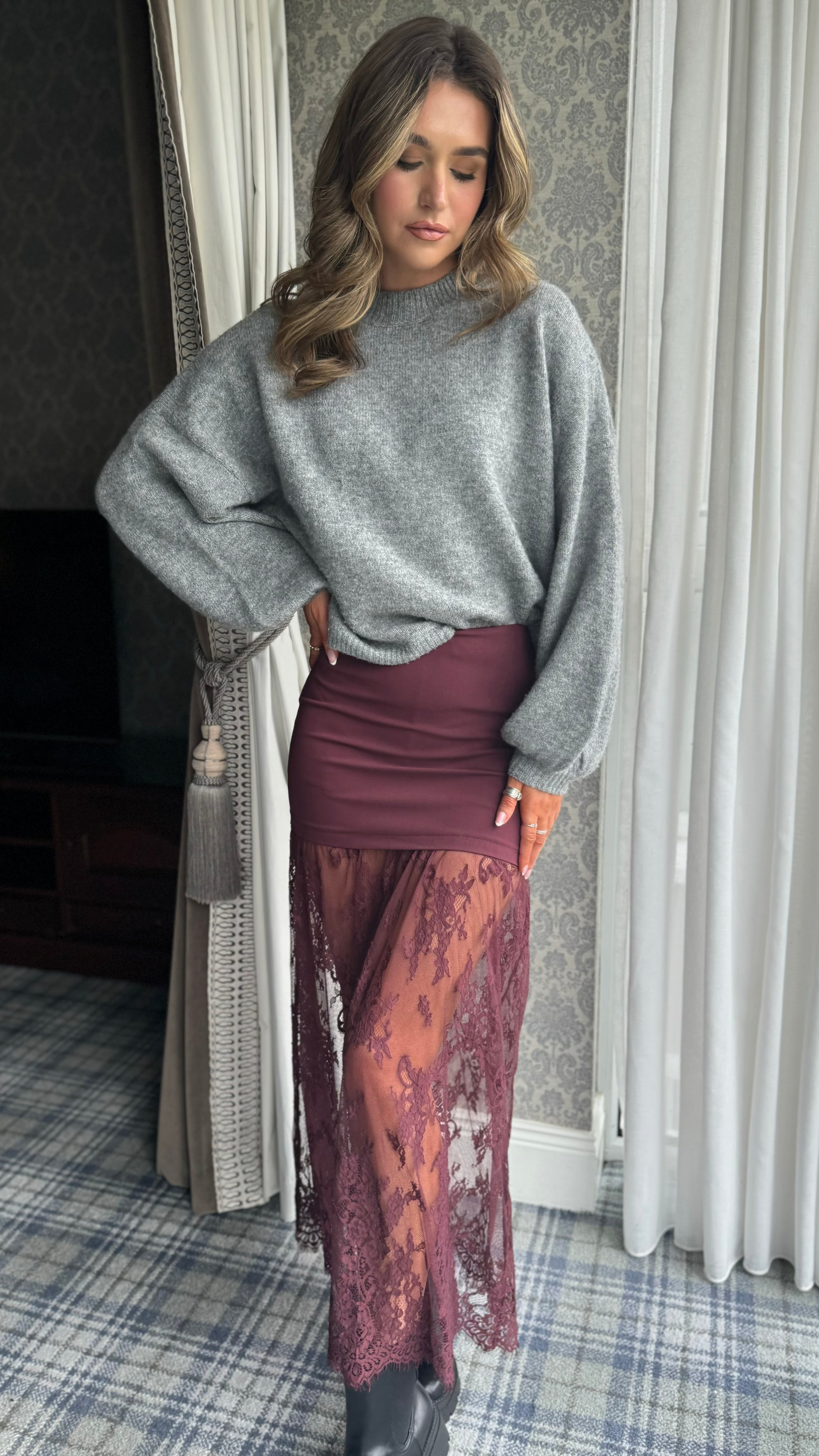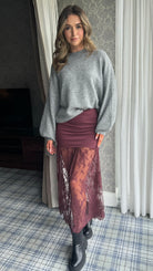 Step out in style with the Beatrix Burgundy Lace Hem Skirt! This playful twist pairs a sleek burgundy mini-length silhouette with a delicate lace hem that adds a touch of charm. Featuring a concealed zip fastening at the side for a smooth fit, it’s perfect for turning heads whether you dress it up or down. Embrace your fun side while flaunting a timeless look!