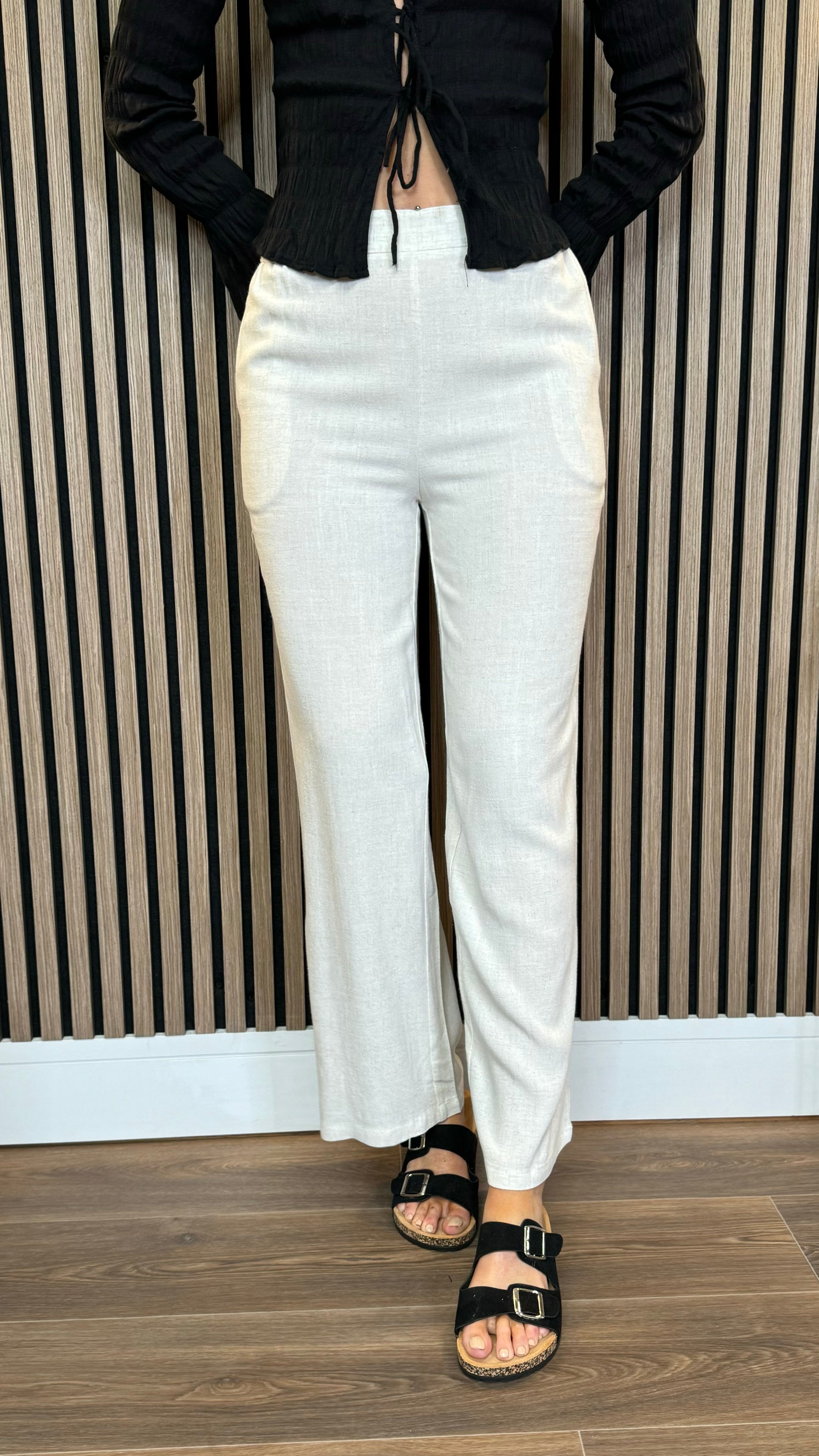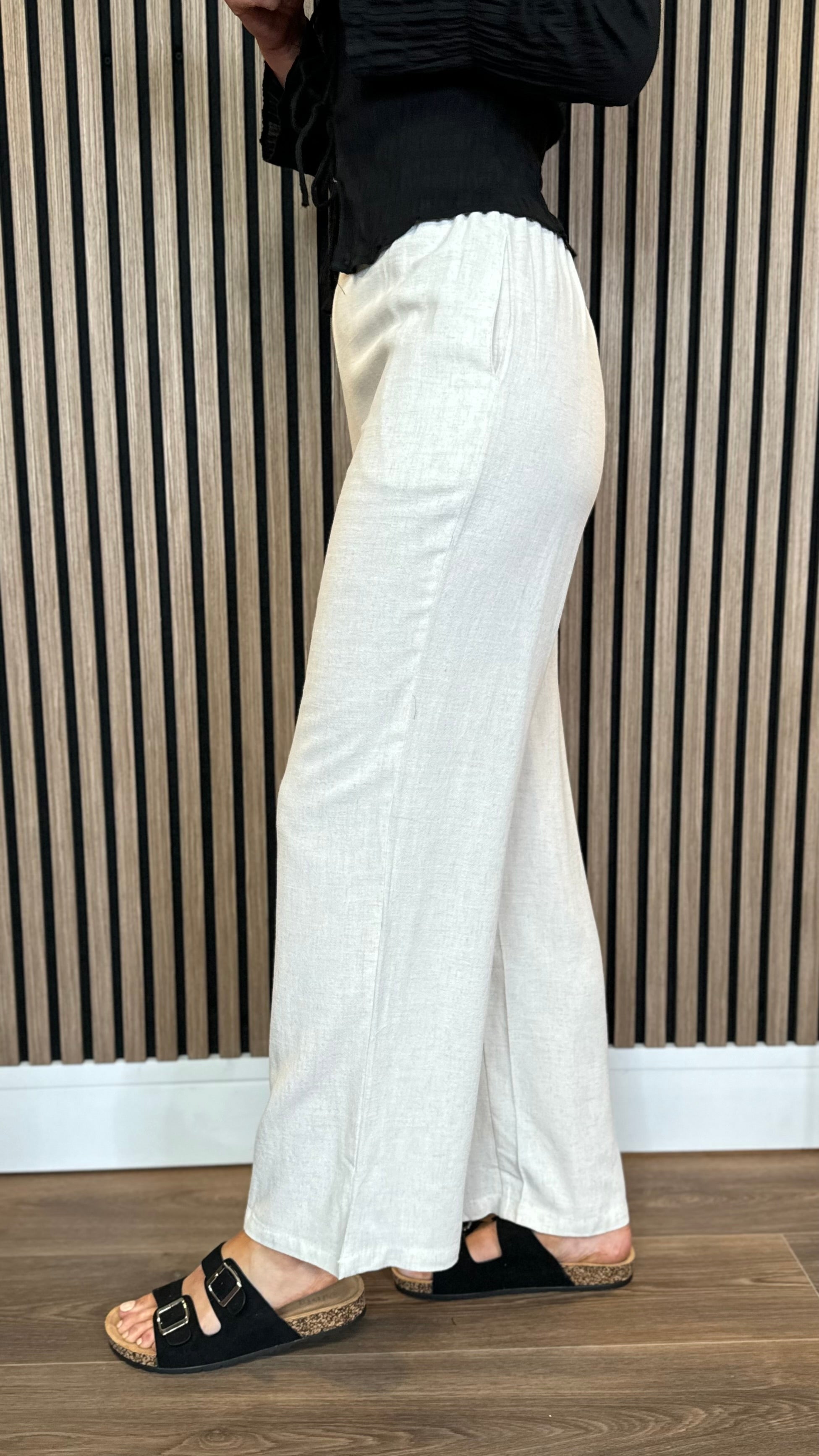 Blair Beige Wide Leg Elasticated Waist Linen Trouser