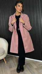 Wrap up in style with the Bonne Rose Pink Belted Midi Coat. This chic coat features a flattering belted waist, luxurious lining, and a classic collared neckline. Finished with elegant silver buttons, it's the perfect addition to any wardrobe. Stay warm and stylish all season long!