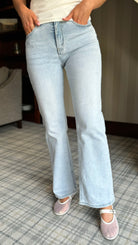 Go with the flow in our Brianne Light Blue Flared Jeans! These stylish jeans feature a flattering flared leg that elongates your figure, making you feel like a true fashionista. Perfect for any casual occasion, these jeans are a must-have in your wardrobe. Get ready to turn heads and embrace your inner style!