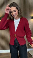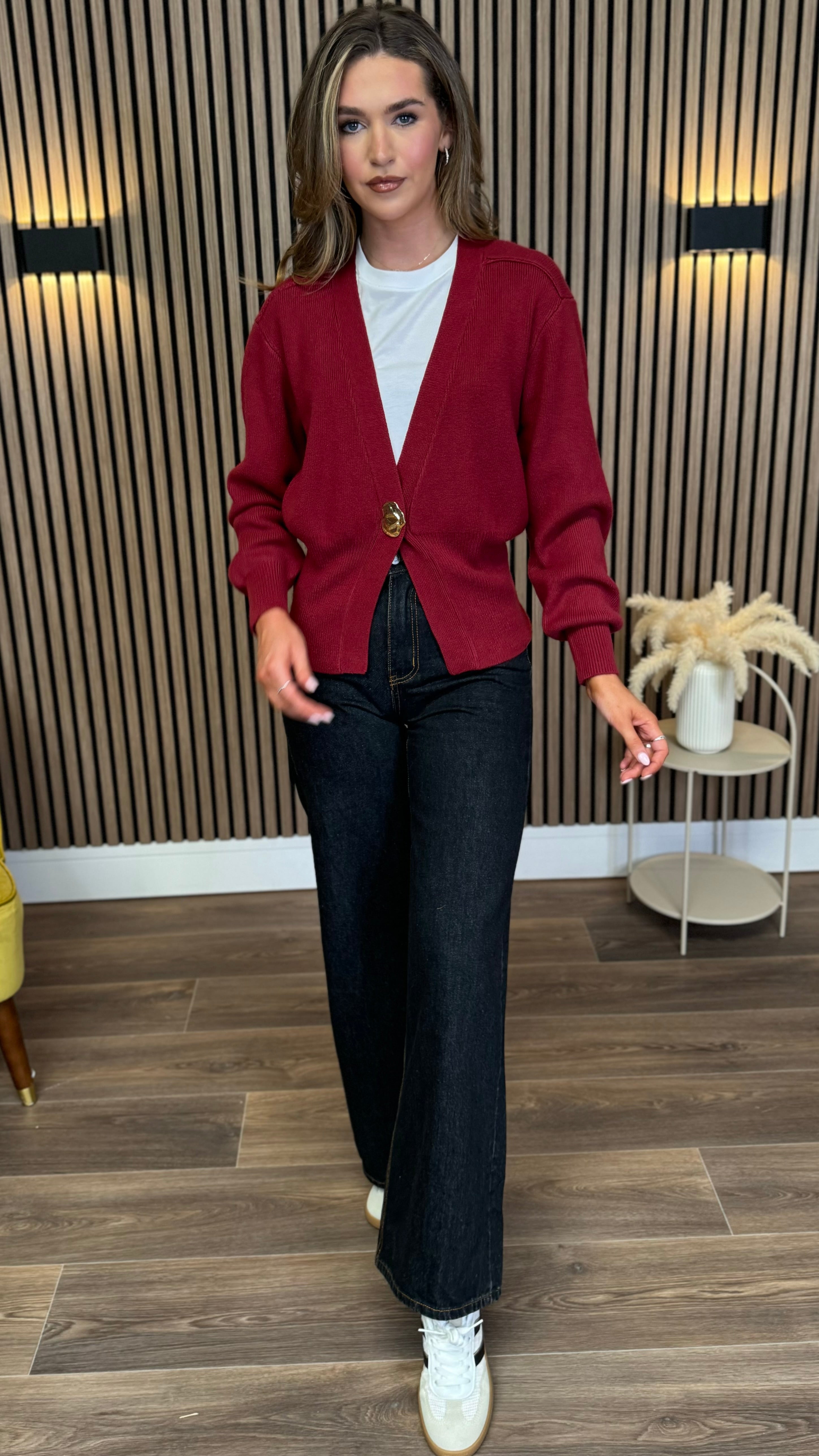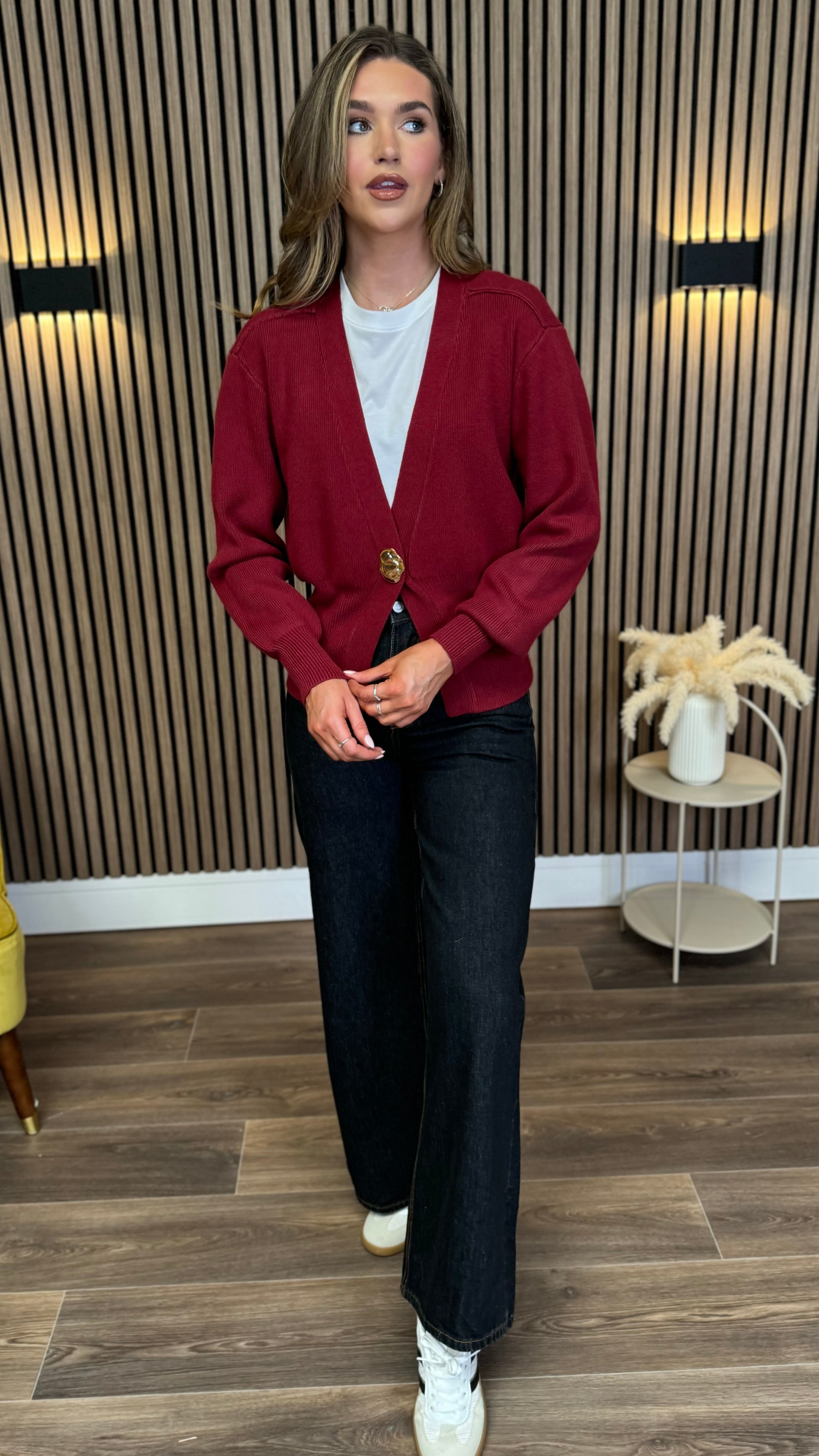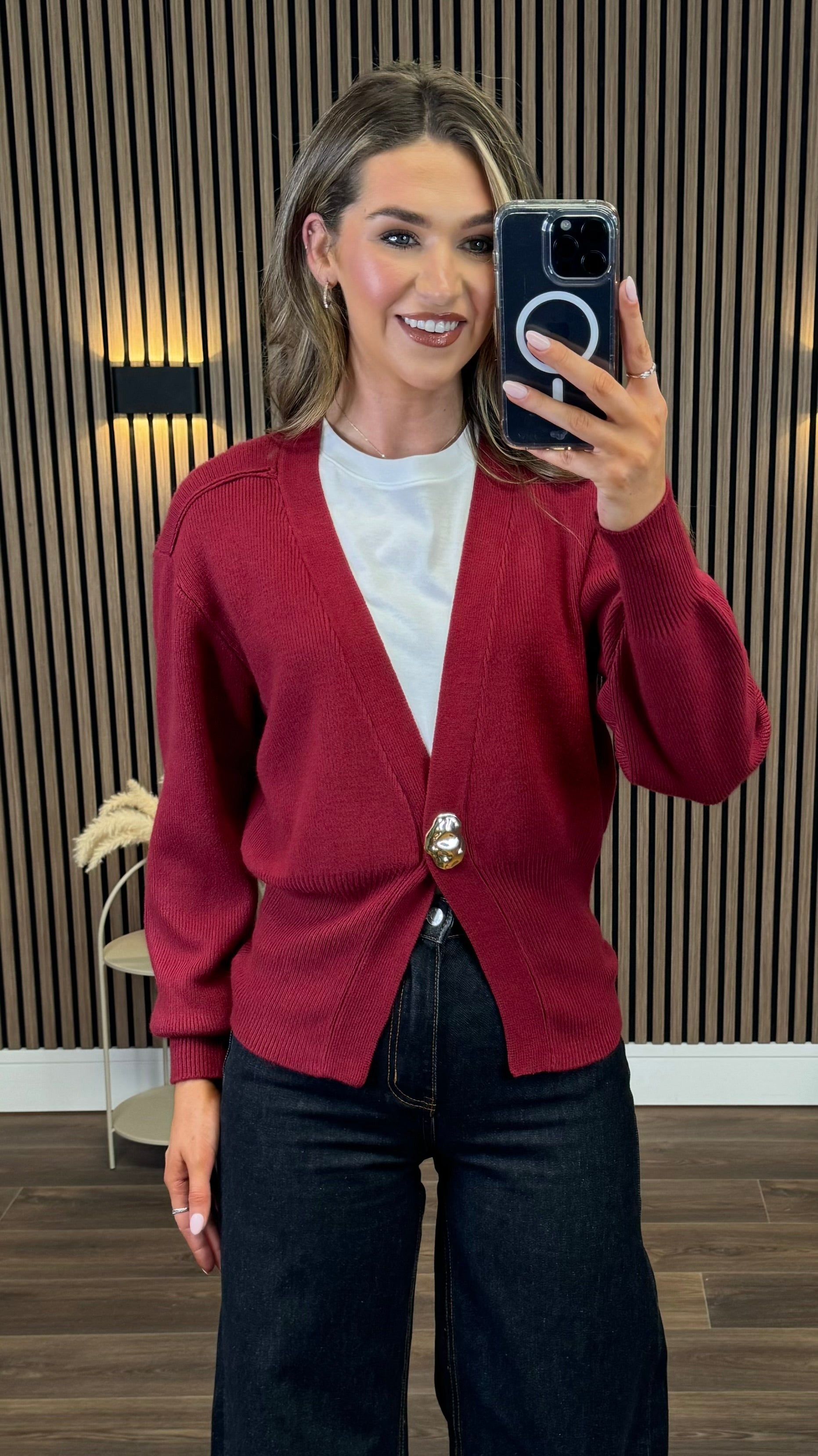 Cosy up in the Brinley Burgundy Gold Button Cardigan 🍂✨! This vibrant burgundy piece shines with fun gold buttons, making every outfit pop. Perfect for layering those chillier days, it’s your new go-to for warmth and style with a playful twist. Stay chic, comfy, and a little bit sparkly! 💖🧥