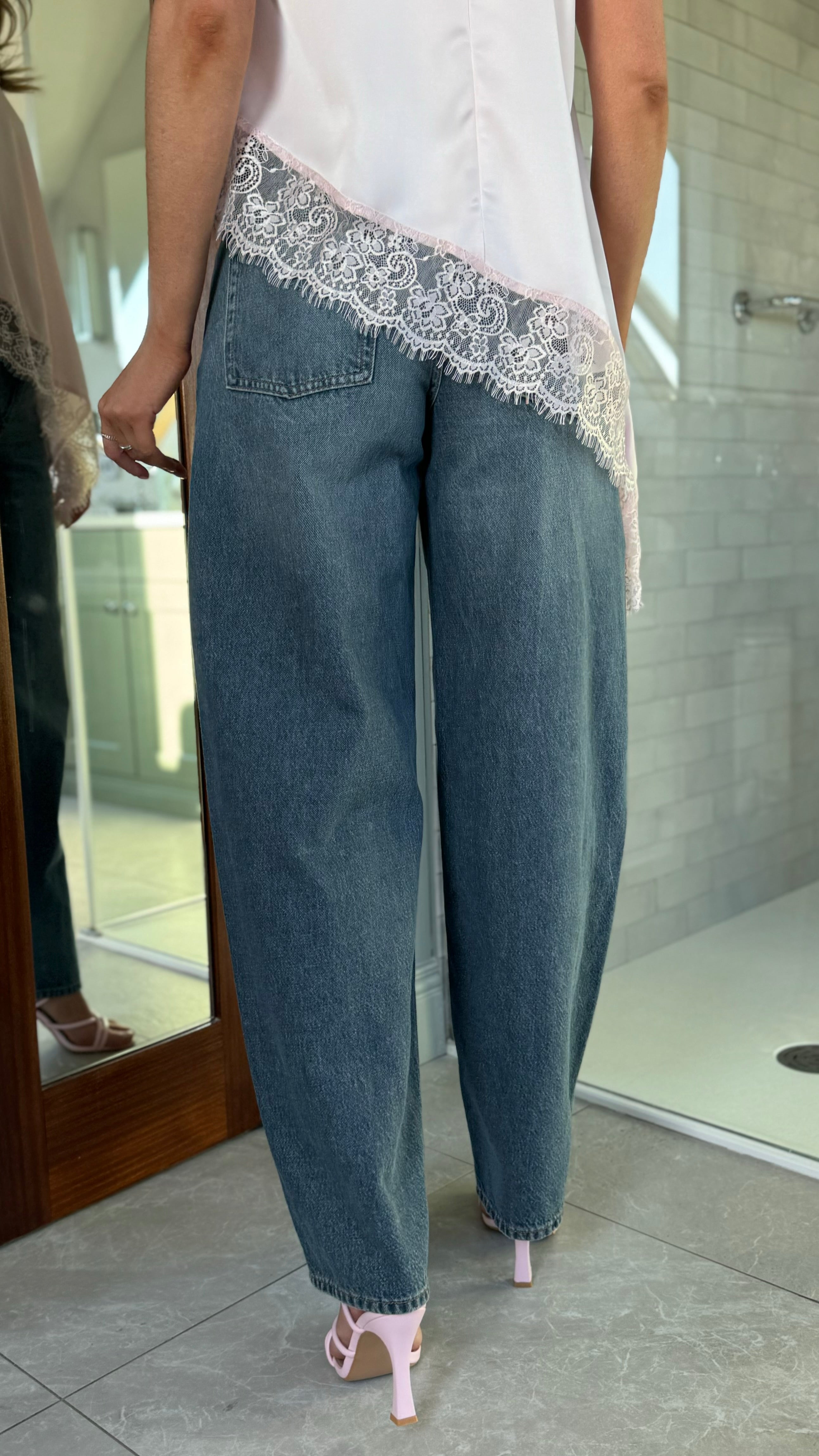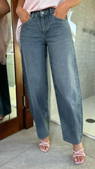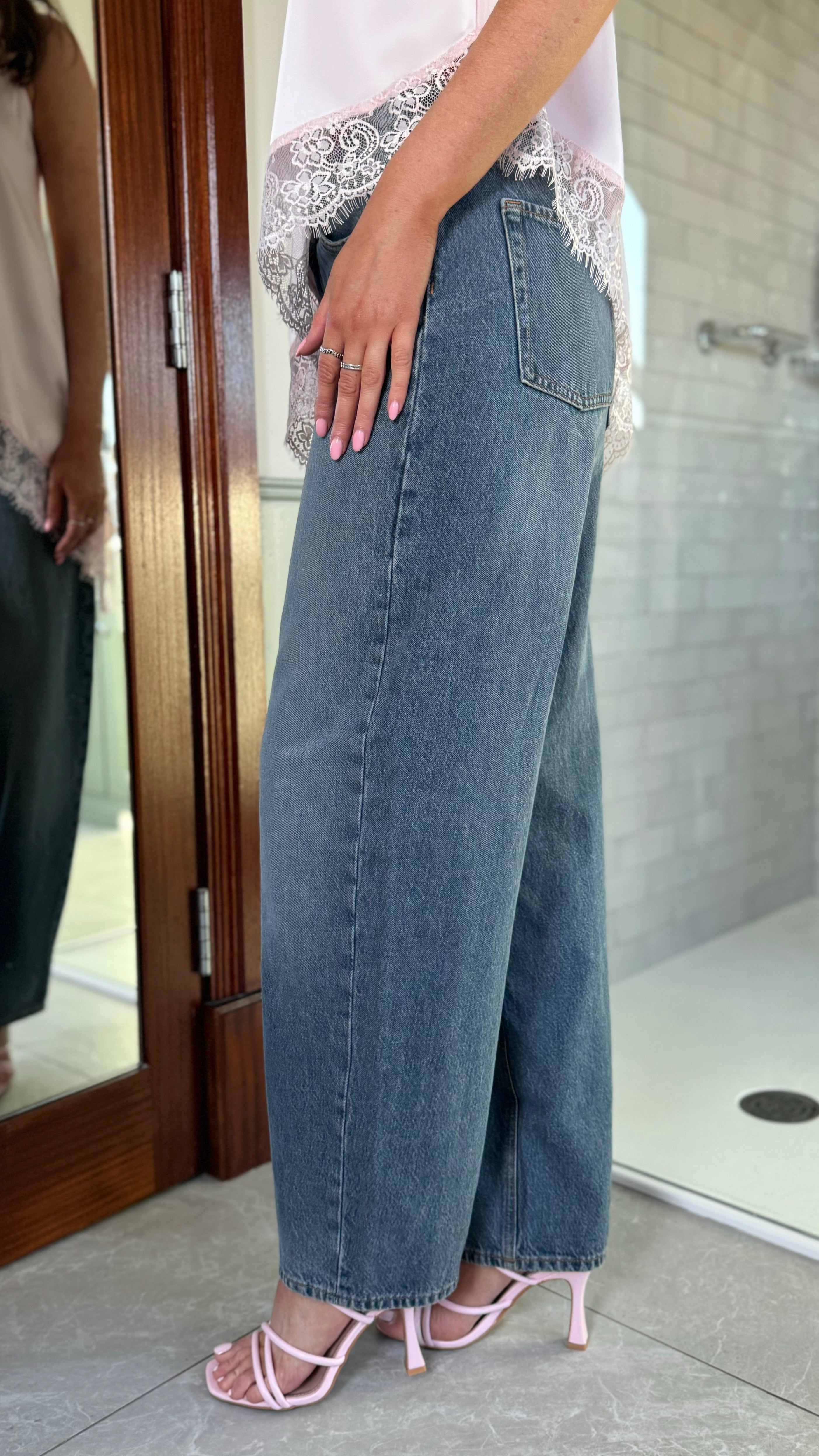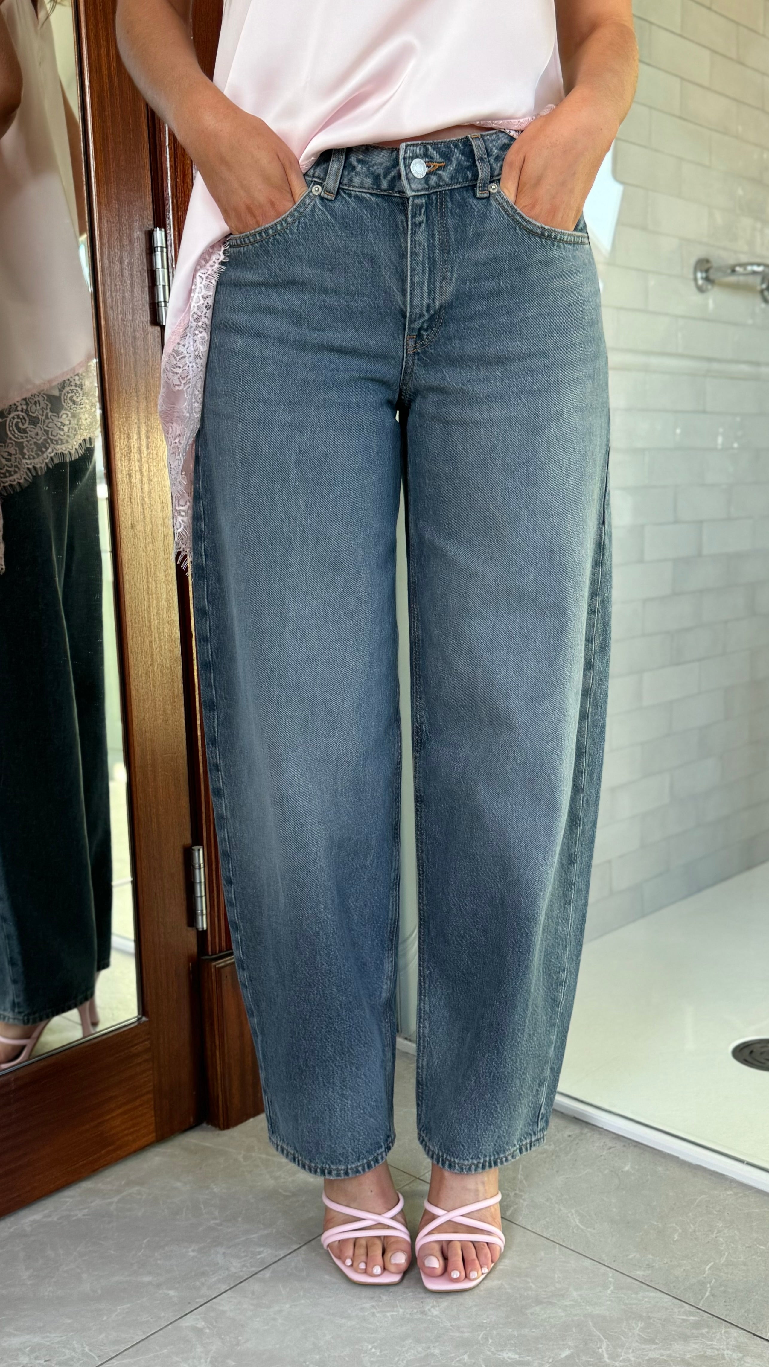 Bryony Mid-Wash Faded Barrel Jeans feature a relaxed barrel silhouette with a flattering mid-rise cut. The five-pocket design offers practical storage, while belt loops provide styling versatility. Crafted in a soft faded wash, these jeans deliver an effortlessly cool, lived-in aesthetic perfect for everyday wear. The structured barrel shape creates a contemporary, fashion-forward look that pairs seamlessly with everything from fitted tops to oversized layers.