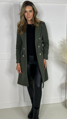 Get ready to slay in style with the Camilla Khaki Collared Gold Button Detail Coat! This stunning coat features a collared design, perfect for keeping you warm and chic. The gold button detailing on the front and cuffs adds a touch of elegance, making you stand out from the crowd. Stay cozy and fashionable this season. 💫
