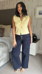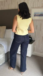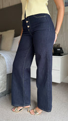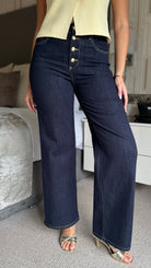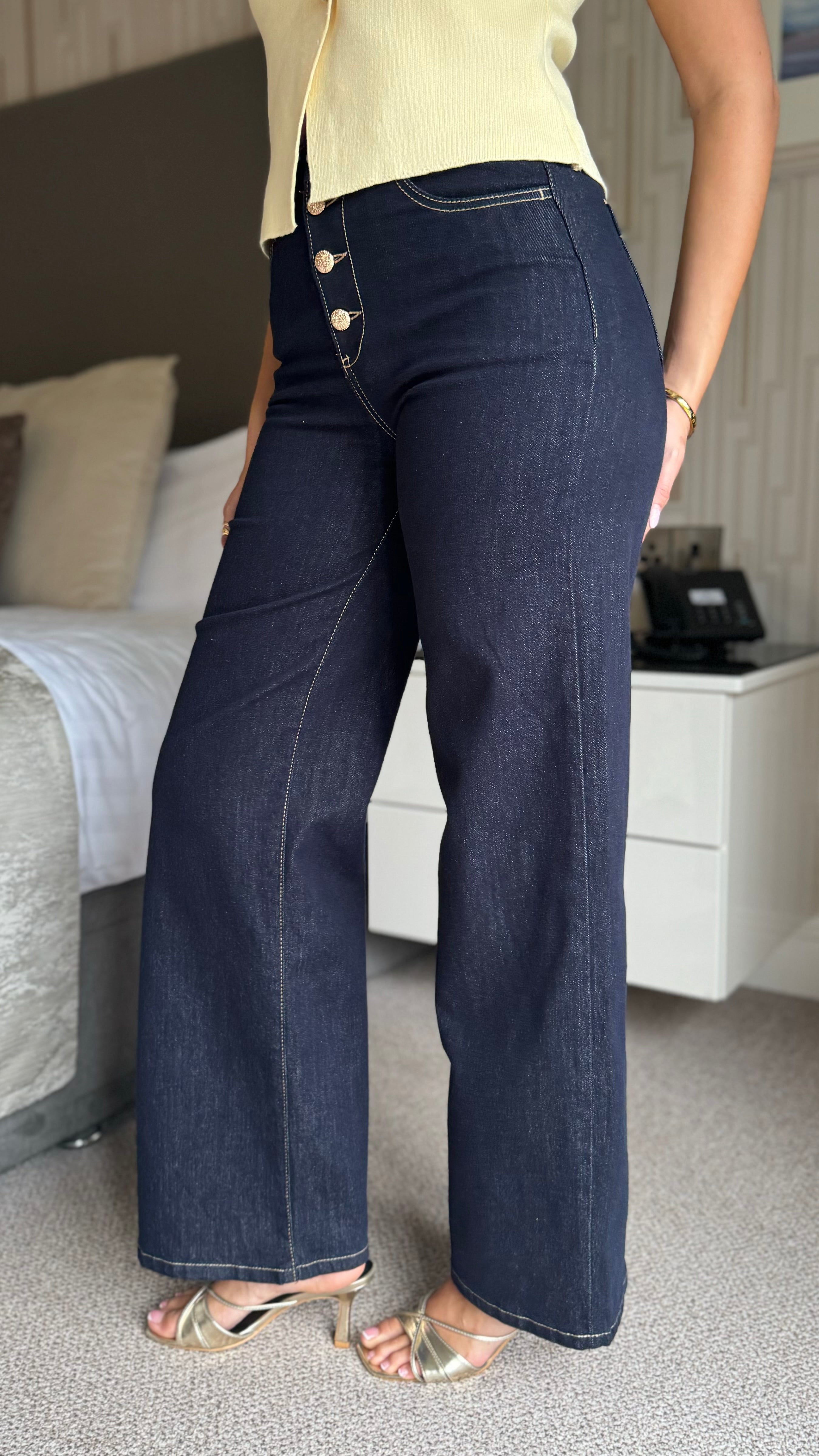 Celina Dark Denim Gold Button Detail Wide Leg Jeans