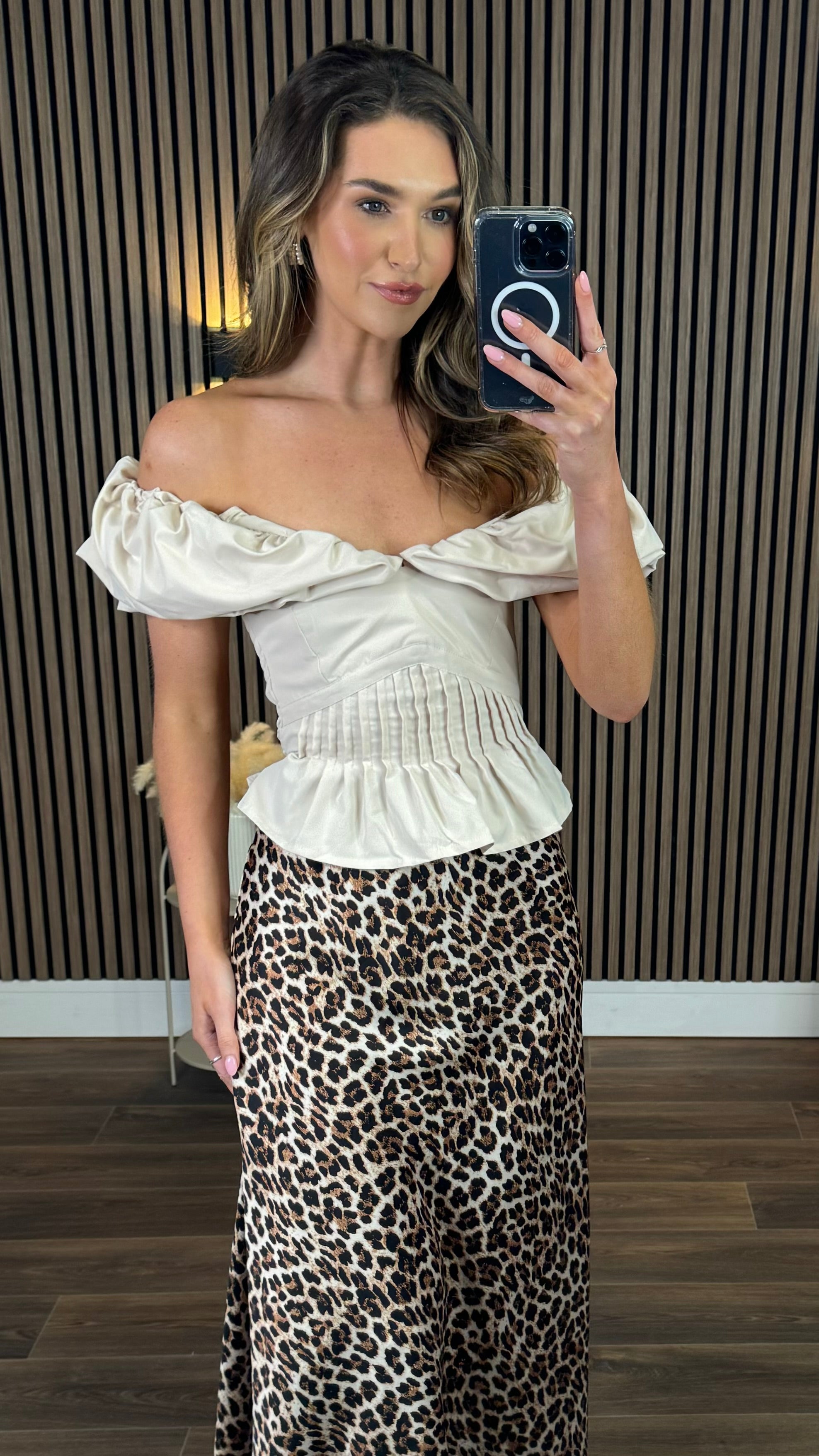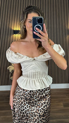 Celine Taupe Puff Sleeve Elasticated Bodice Top
