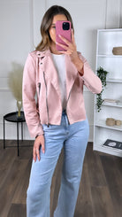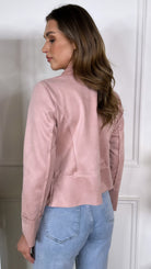 Zip up your style game with the Cora Dusky Pink Suede Finish Collared Jacket! This fitted jacket features zip detailing for a touch of edge. Perfect for adding a playful twist to any outfit! 🧥💥