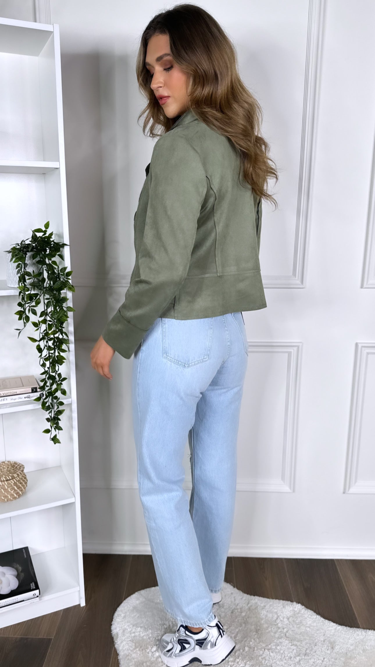 Zip up your style game with the Cora Khaki Suede Finish Collared Jacket! This fitted jacket features zip detailing for a touch of edge. Perfect for adding a playful twist to any outfit! 🧥💥