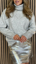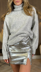 Get ready to slay in the Diego Silver Leather Look Mini Skirt! This fitted mini skirt features a unique front left split, adding a touch of edginess to any outfit. Rock this skirt and slay all day! 💥