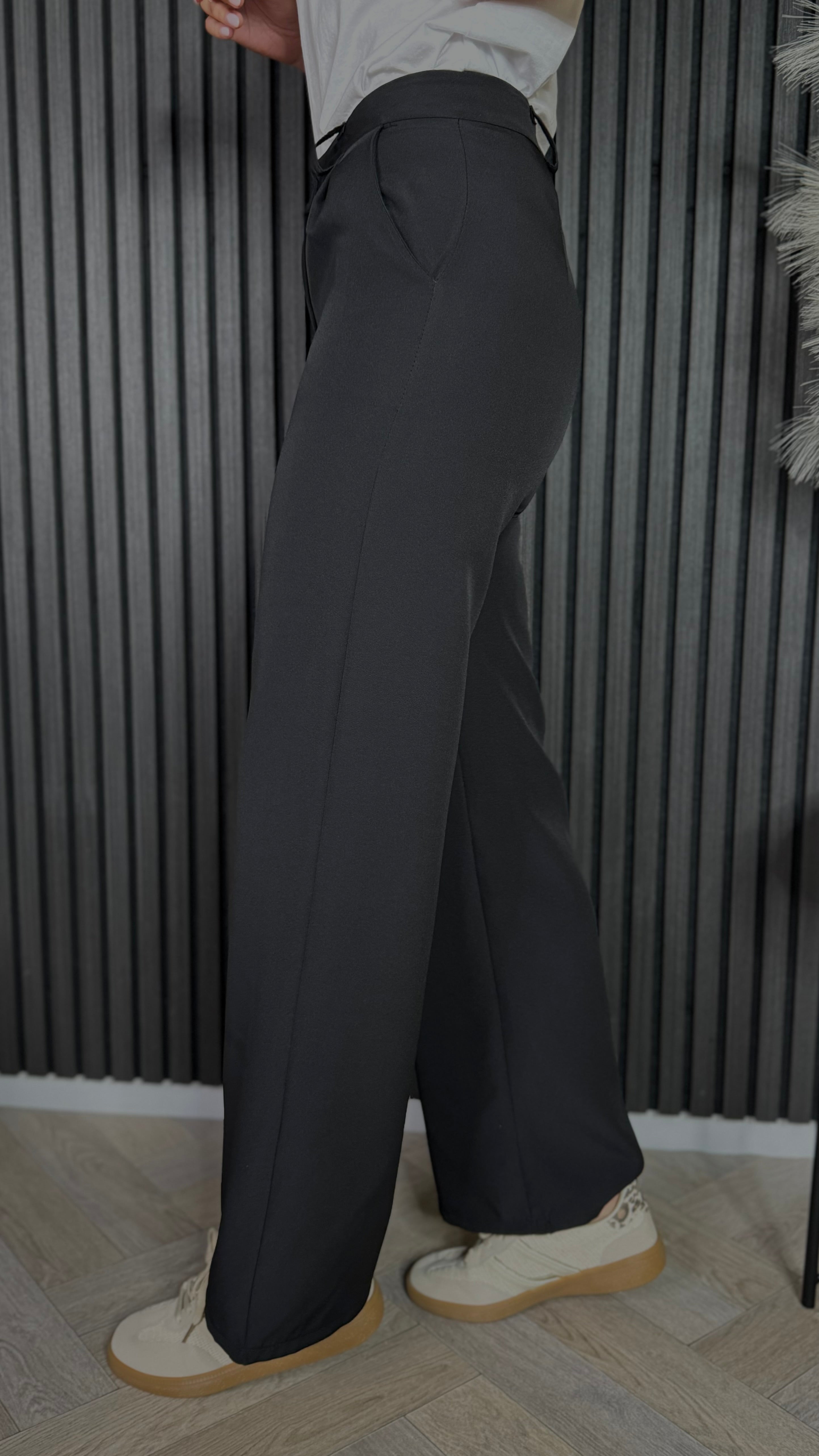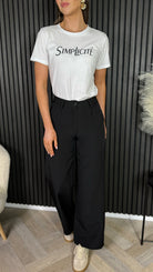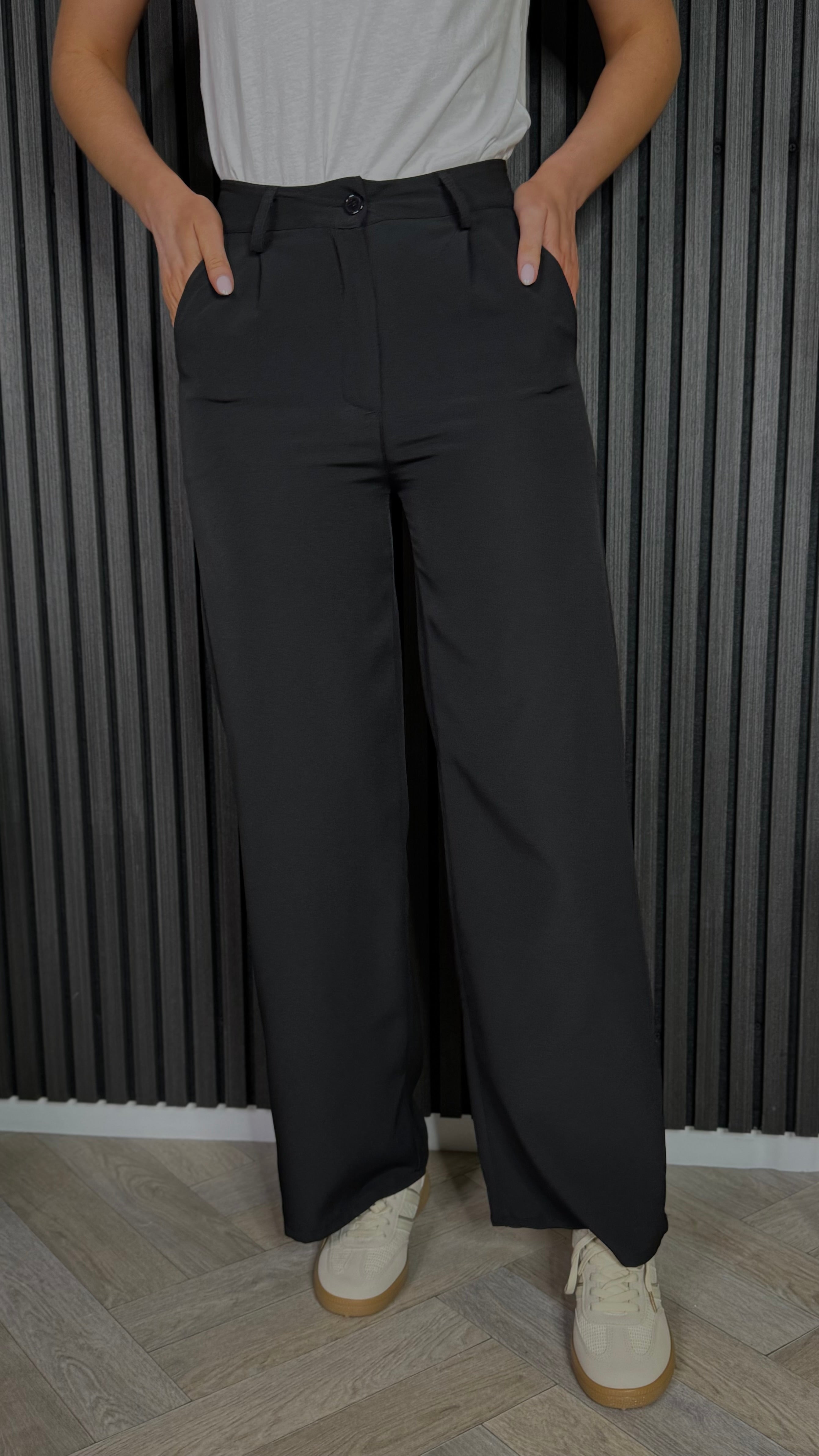Get ready to rule the fashion game with our Effie Black Wide Leg Trousers! These stylish trousers not only make a statement, but also offer a flattering and comfortable fit. Stand out from the crowd and exude confidence in these must-have trousers.