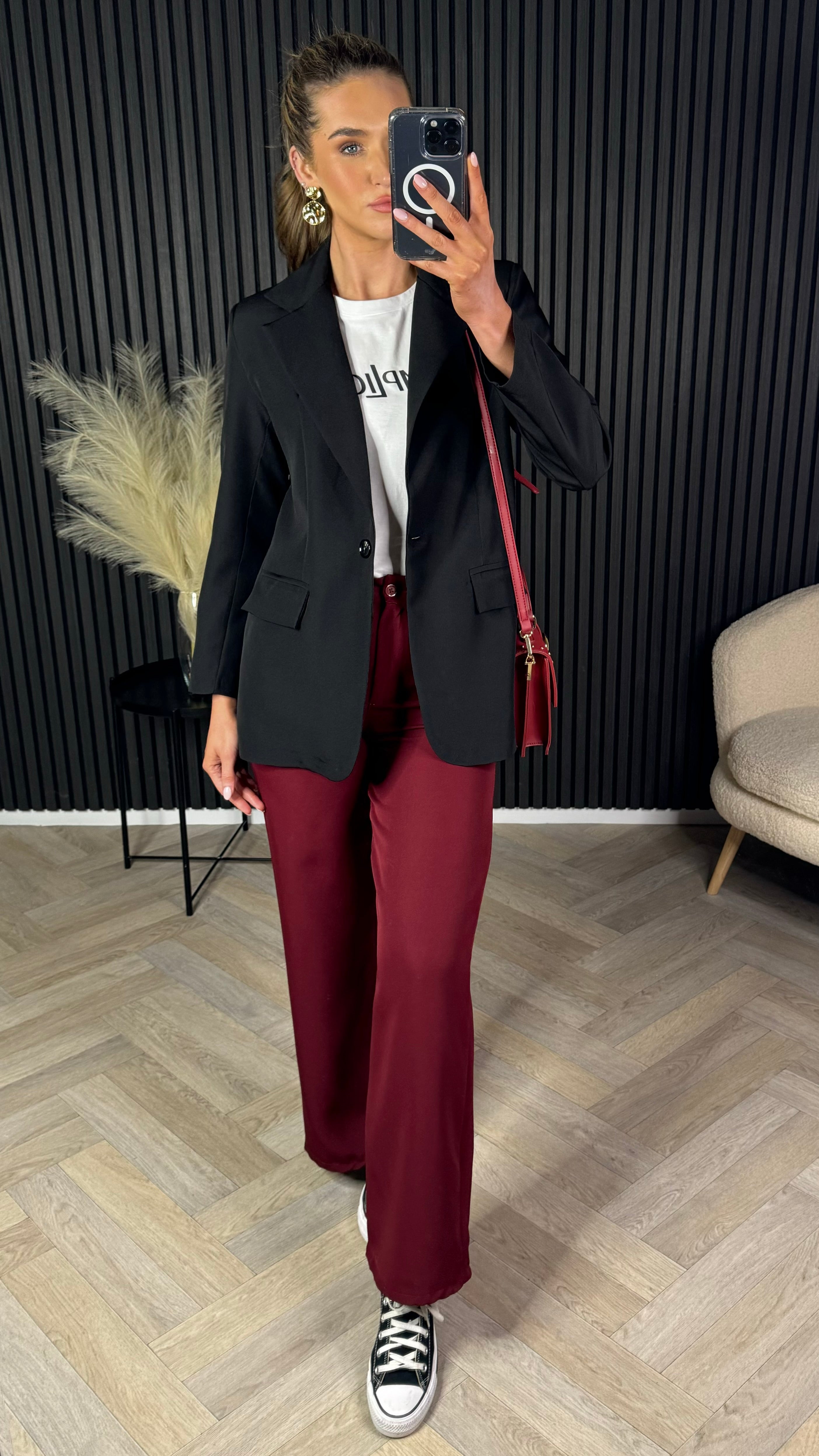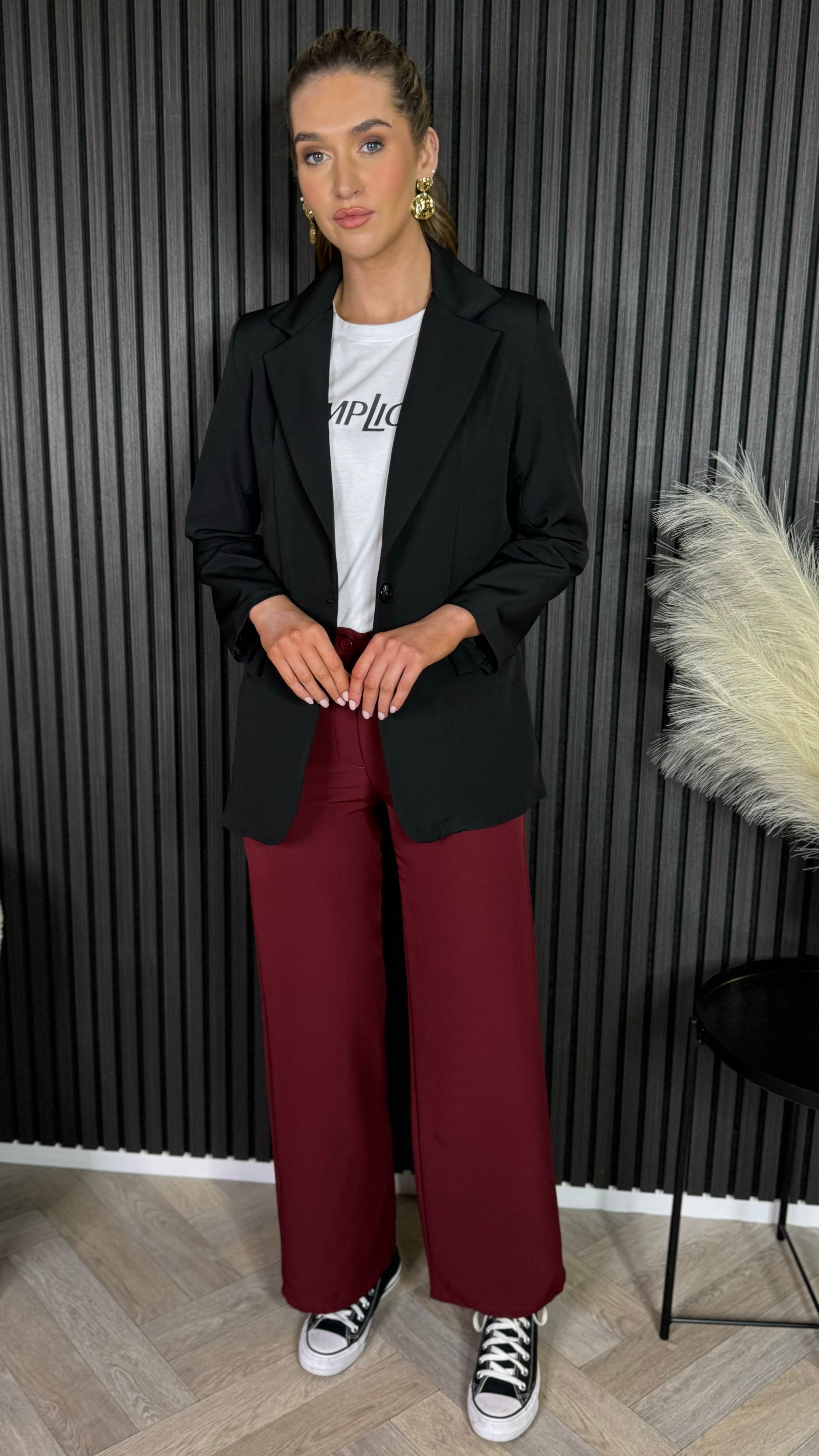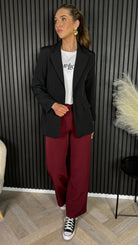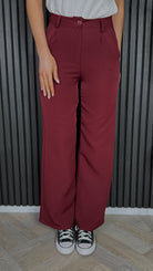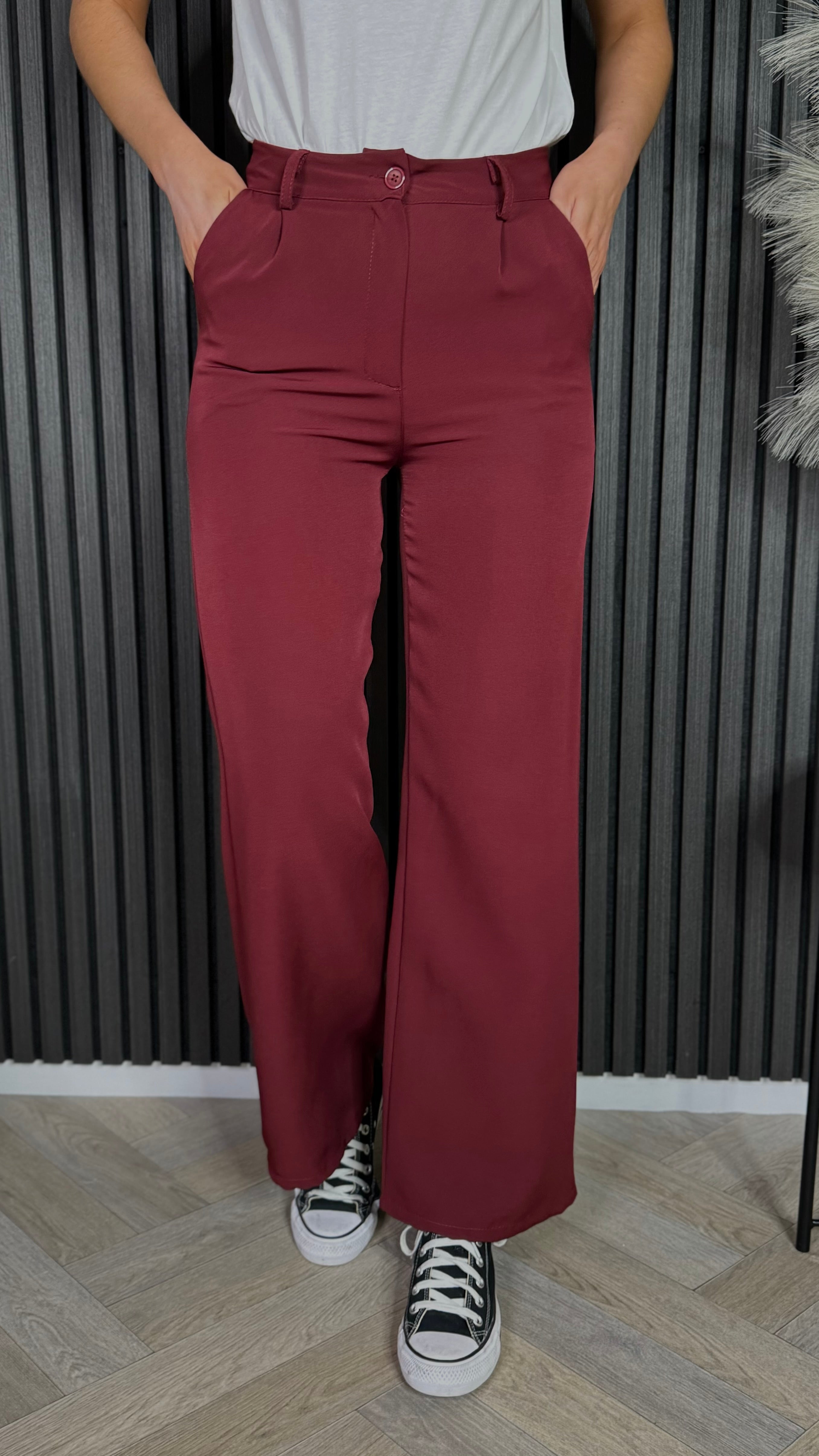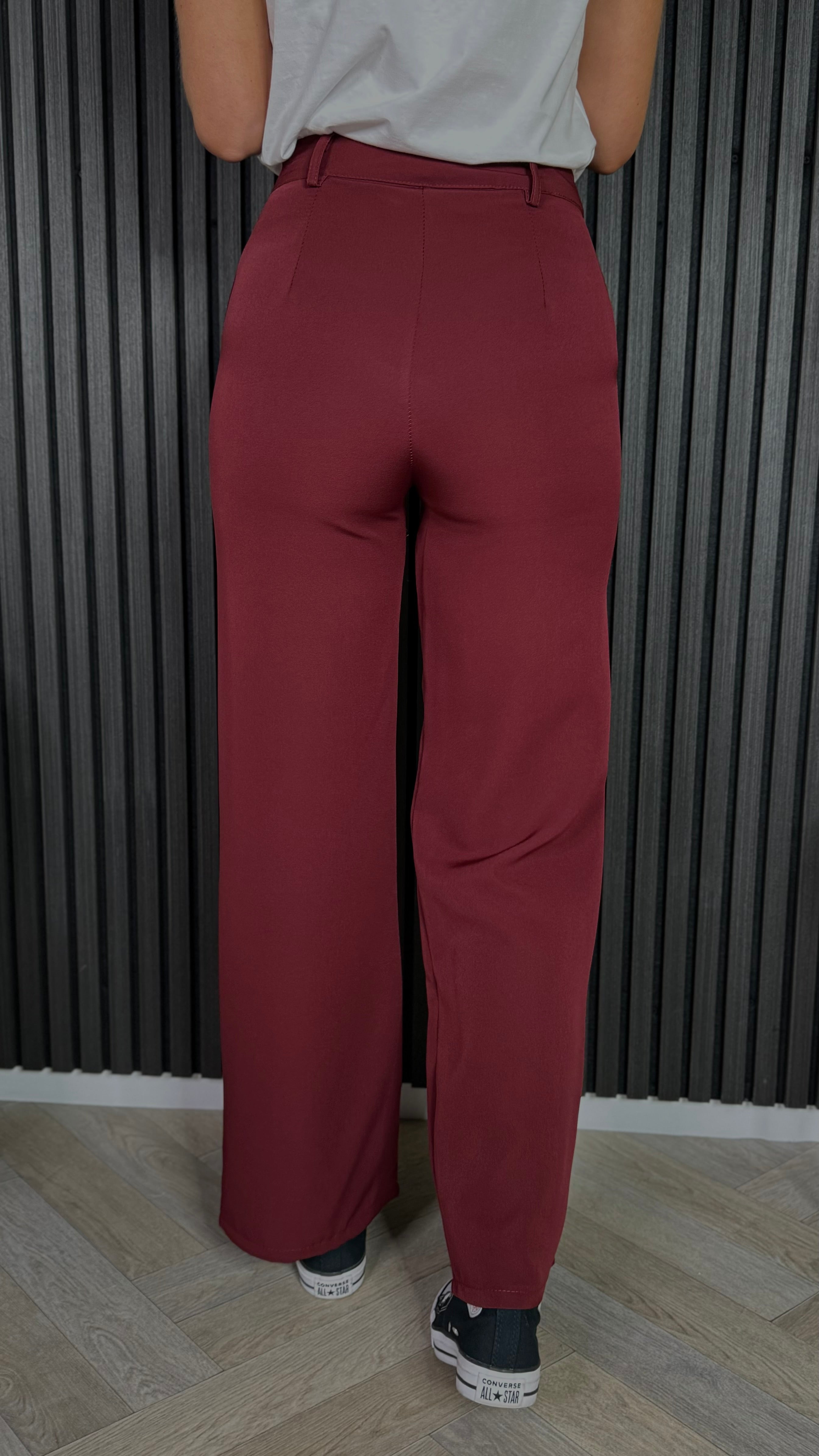 Get ready to rule the fashion game with our Effie Burgundy Wide Leg Trousers! These stylish trousers not only make a statement, but also offer a flattering and comfortable fit. Stand out from the crowd and exude confidence in these must-have trousers.