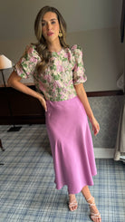 Emmie Purple Satin Finish Midi Skirt