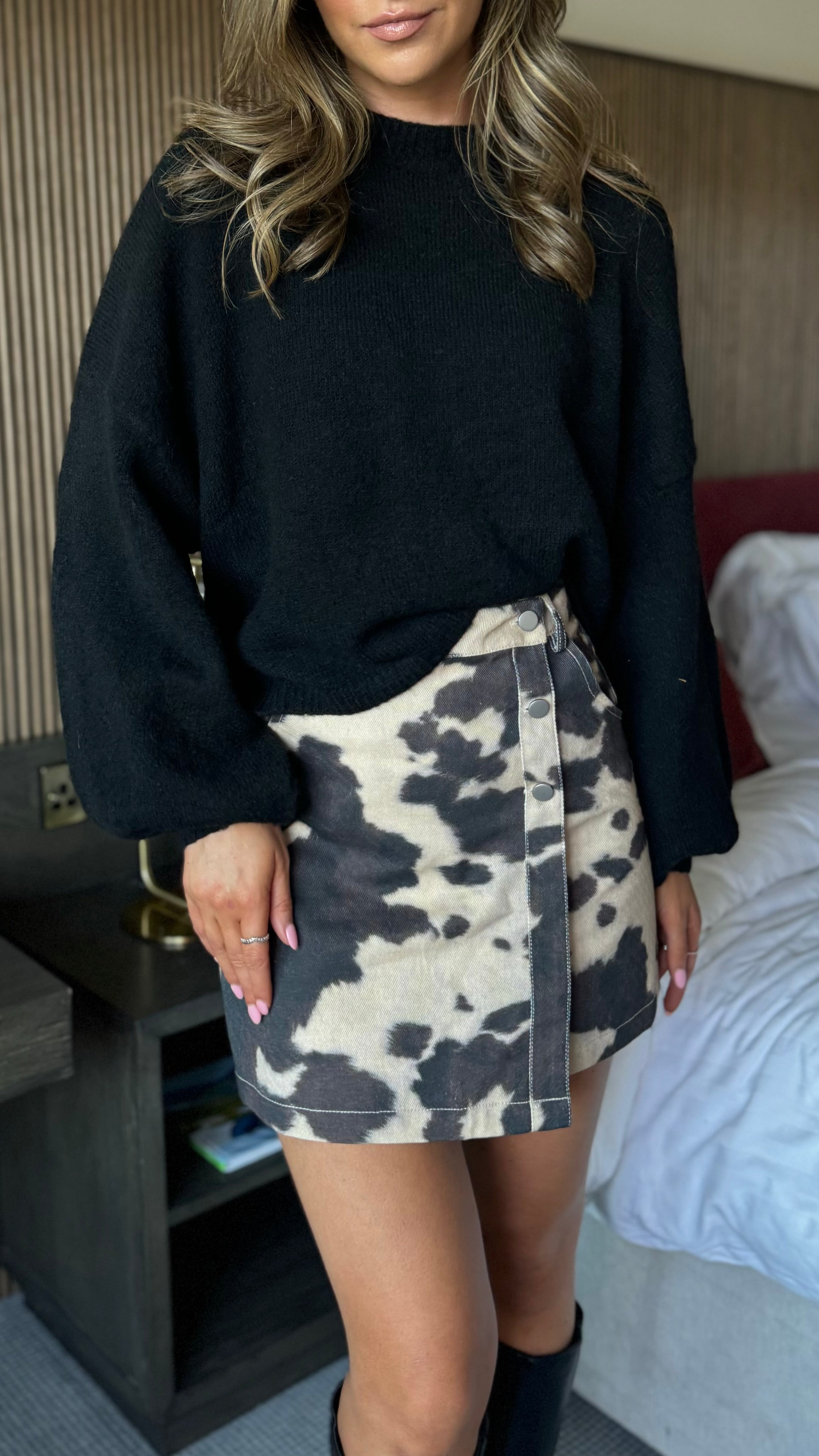 Fionnuala Cow Print Wrap Style Mini Skirt