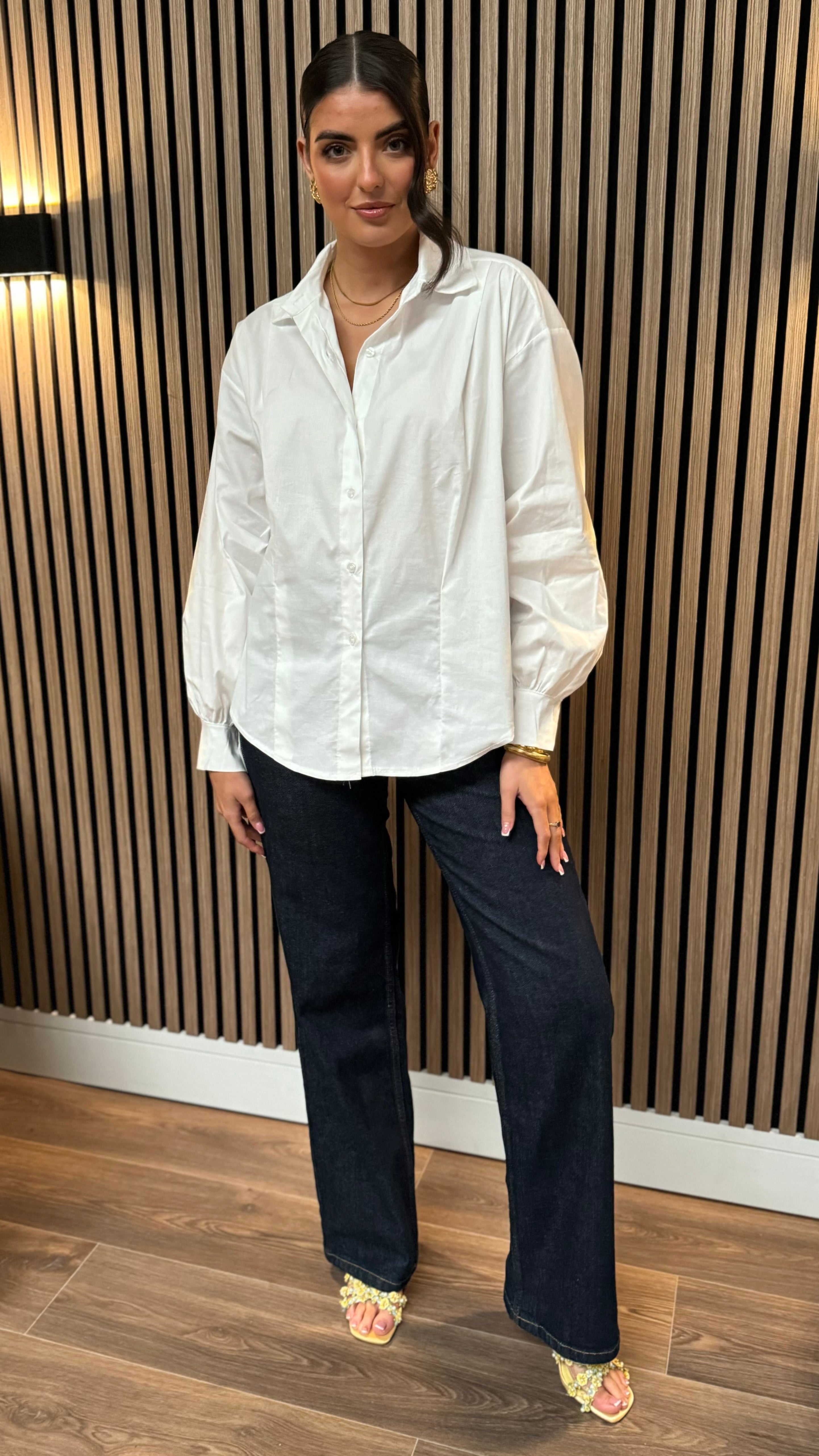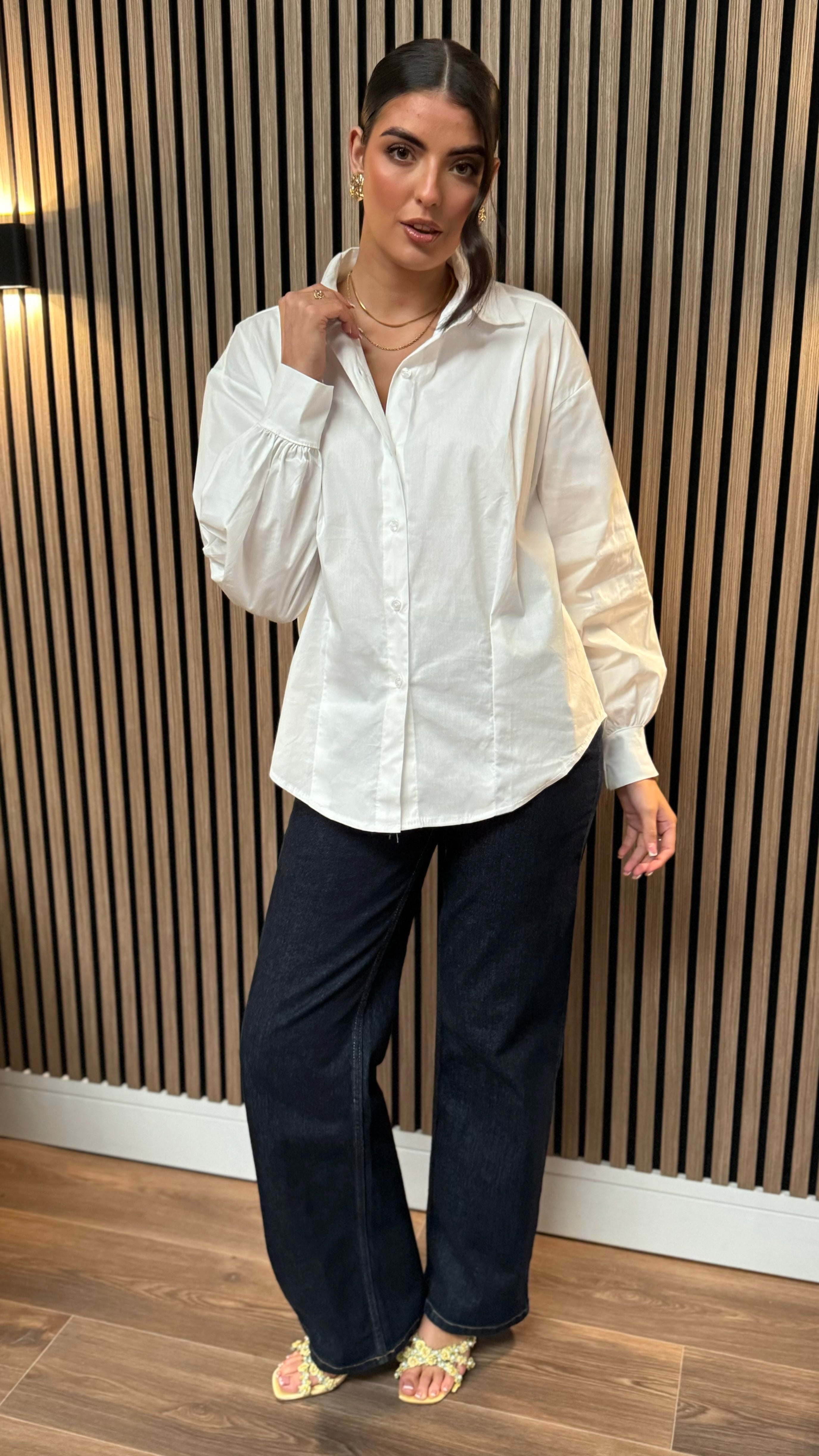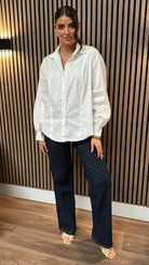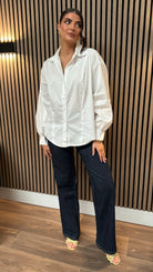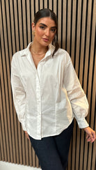 Elevate your shirt game with our Fleur White Panel Detail Collared Shirt. Its panel detail and slightly wide sleeve add a touch of uniqueness to your look. Perfect for adding some playful flair to any outfit.