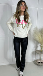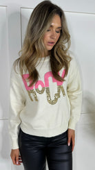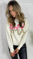 Gabriella Beige 'ROCK' Sequin Detail Slogan Jumper