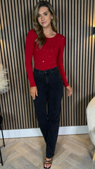 Harmony Red Embellished Detail Fine Knit Bodysuit