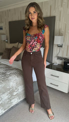 Heather Brown & Pink Multi Coloured Floral Cupped Bodysuit
