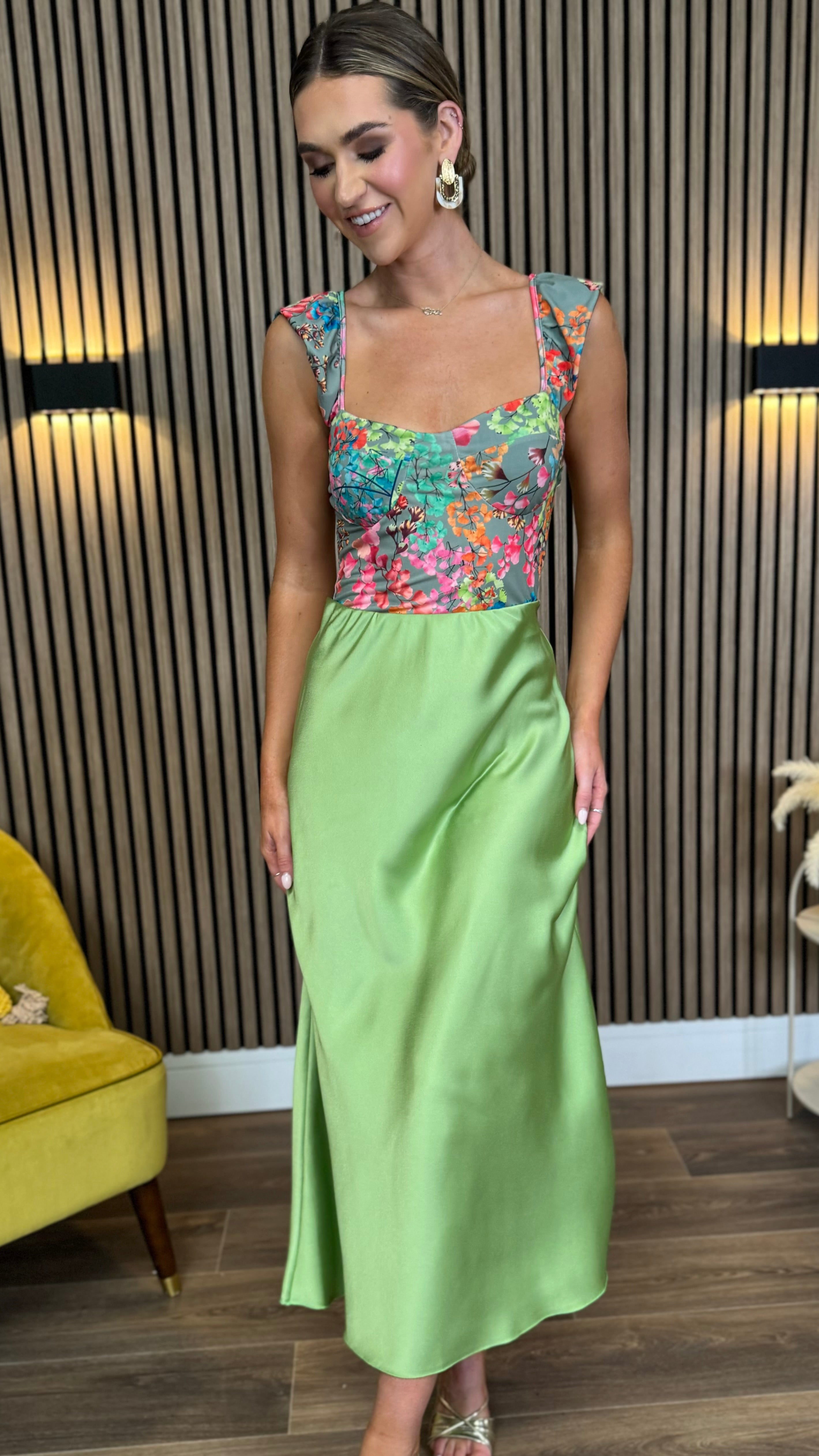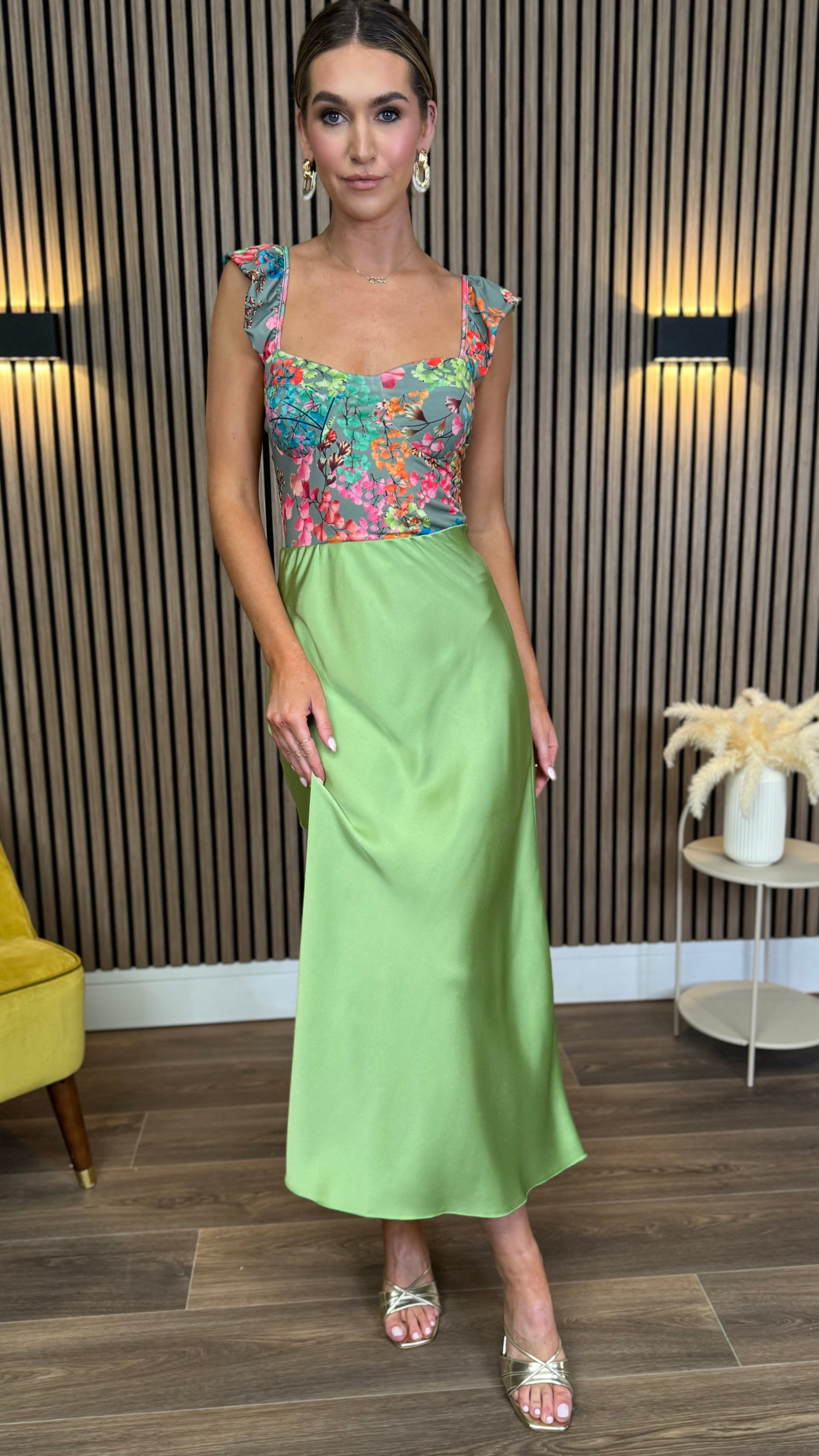 Heather Green & Multi Coloured Floral Cupped Bodysuit