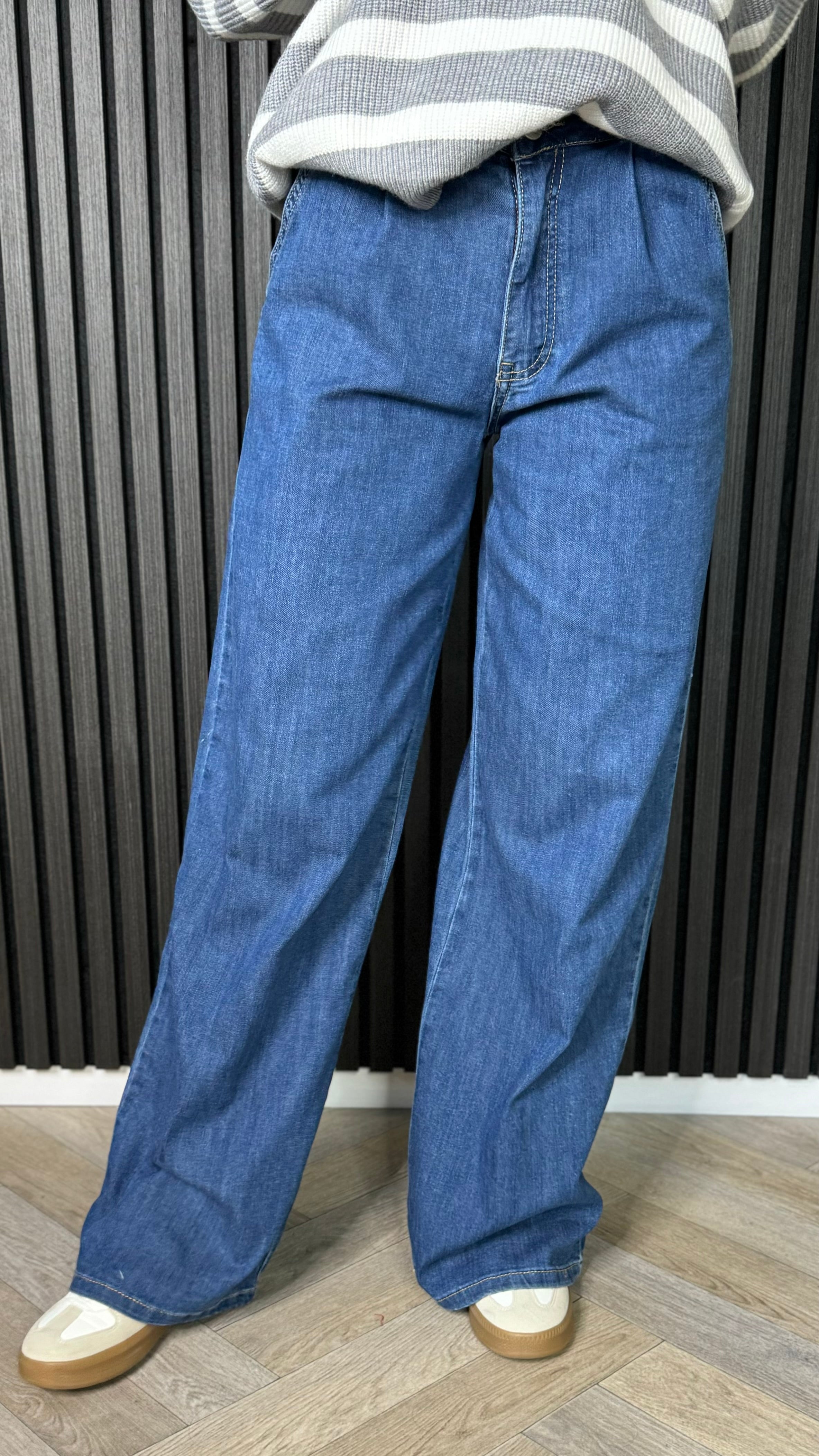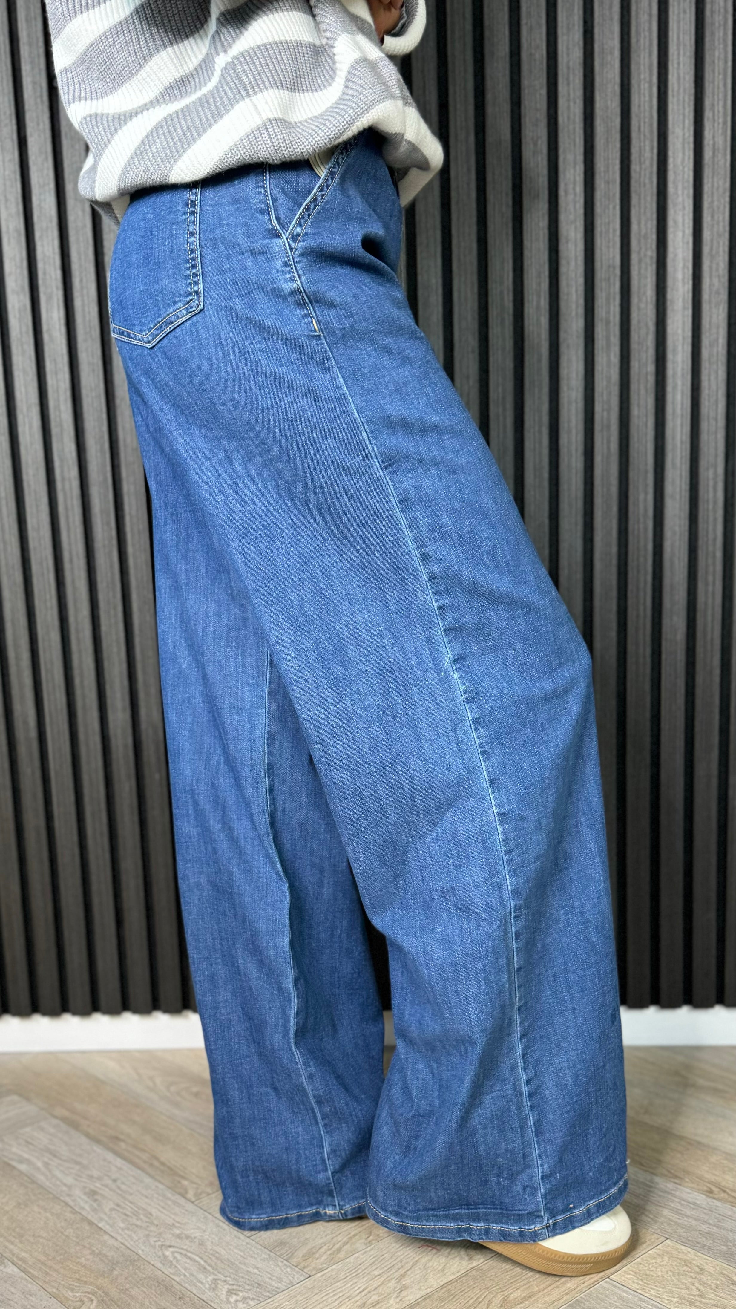 Get ready to make a statement in our Hunter Dark Blue Wide Leg Jeans. With a wide leg design and thin stretch denim, these jeans are perfect for those who want to show off their playful and quirky side. Step out in style and comfort with these unique and trendy jeans!