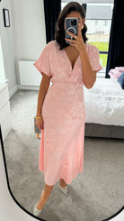 Inez Rose Pink Printed Satin Finish Midi Dress