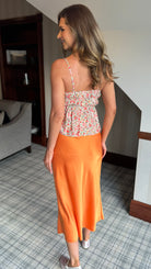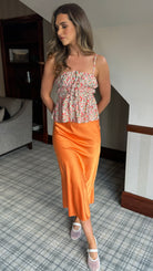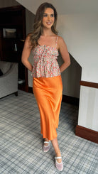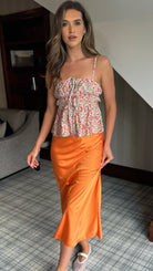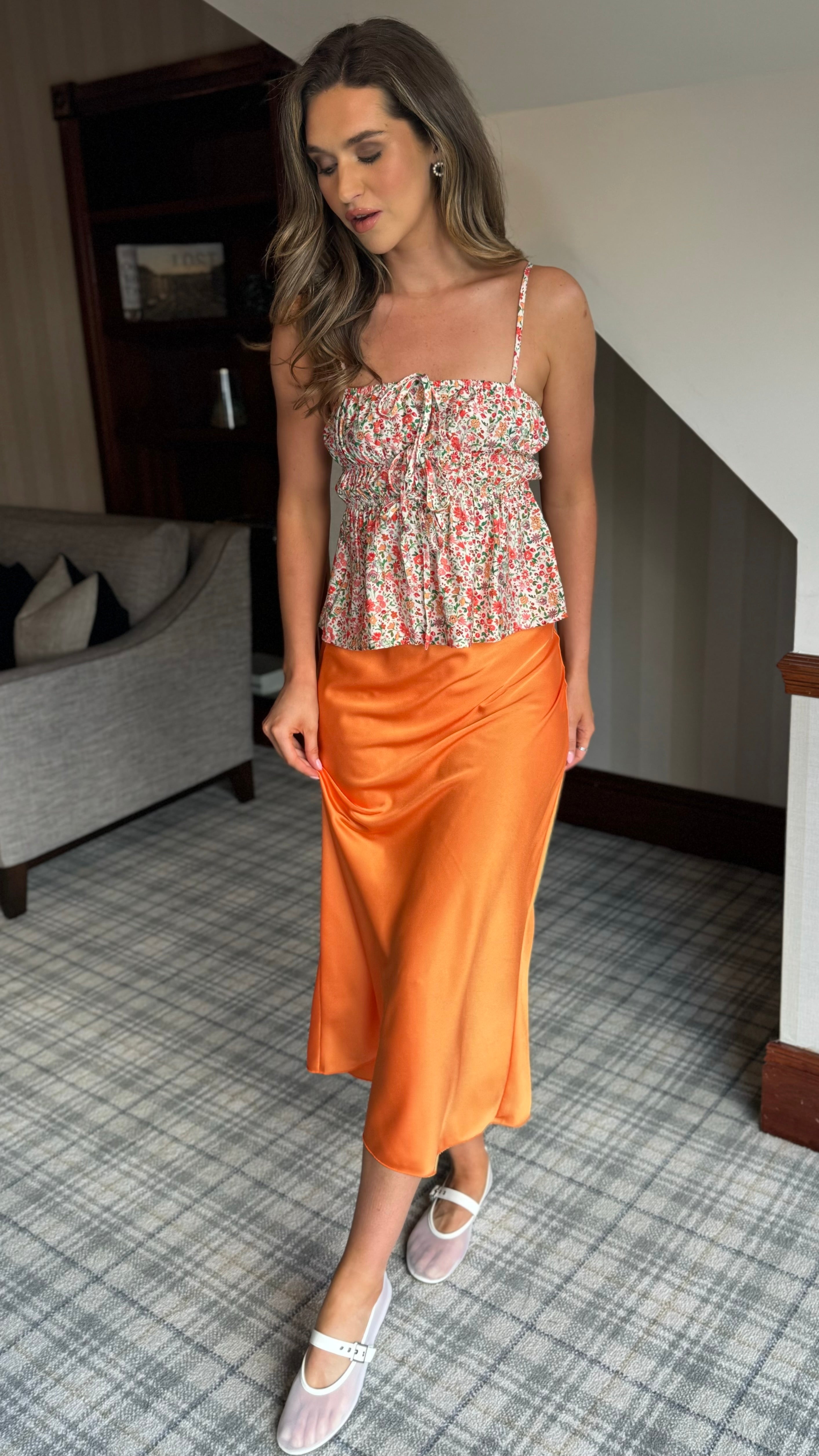 Julie Coral Floral Printed Cami Strap Tie Detail Top