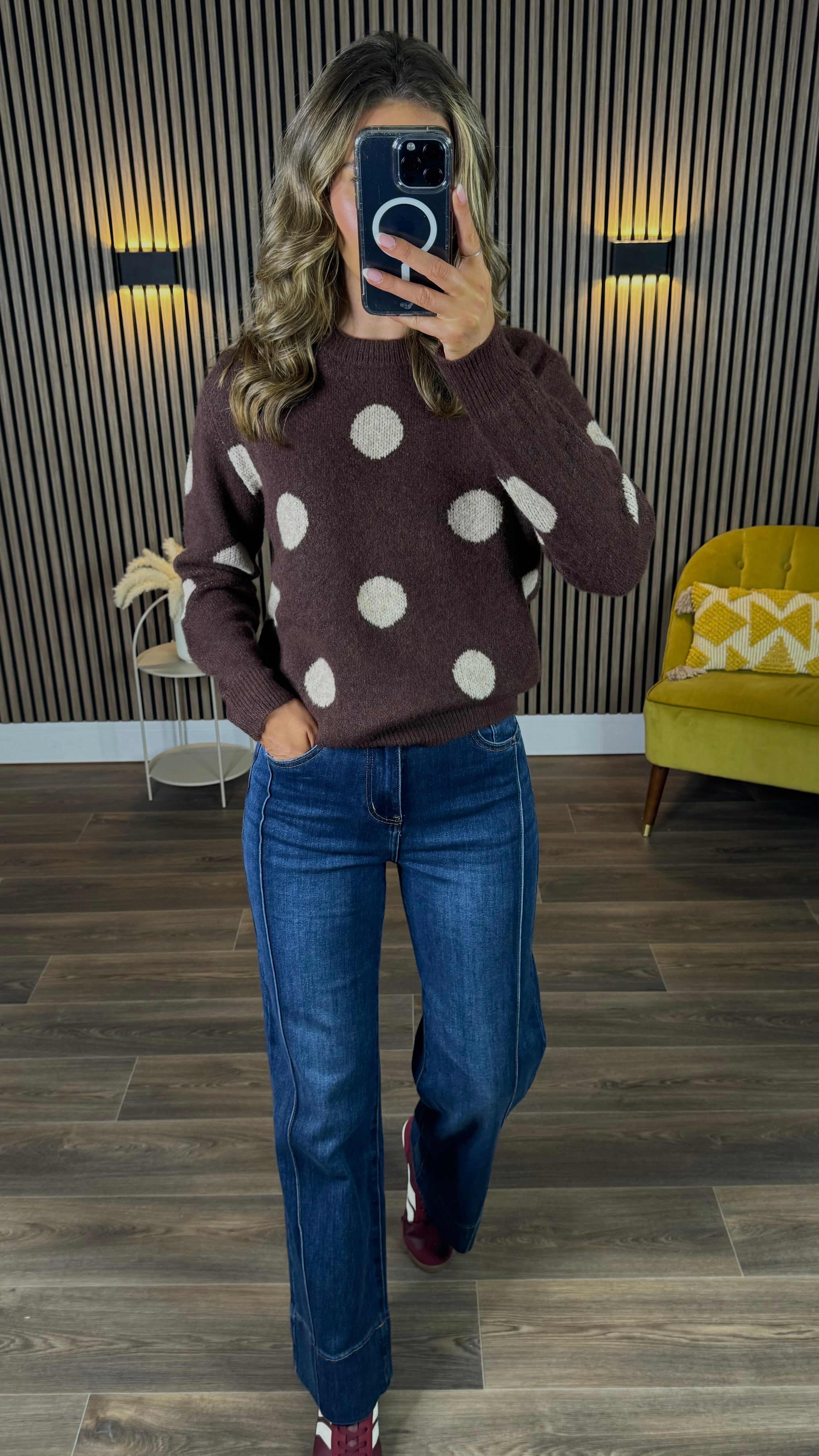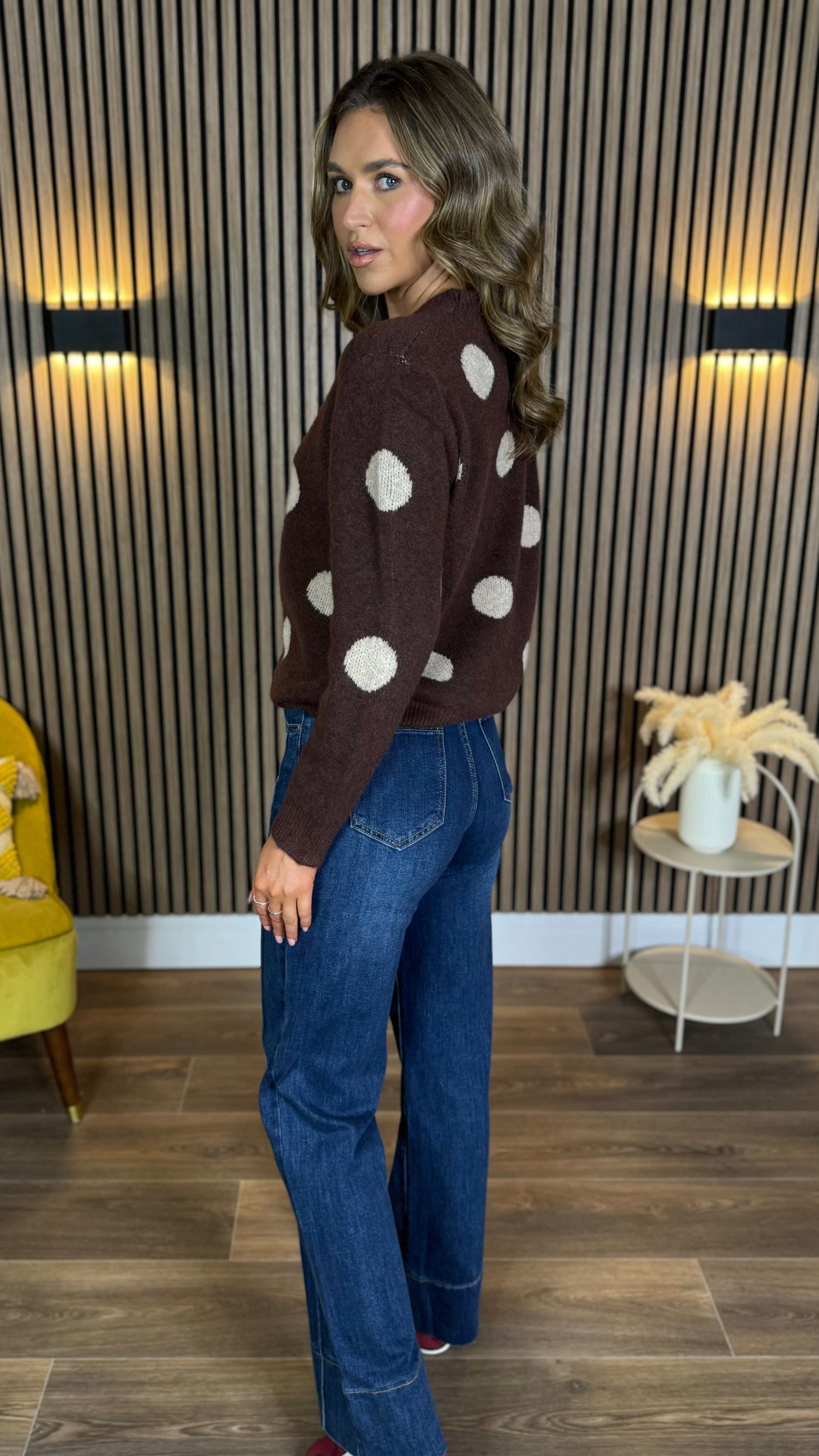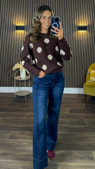 Juno Chocolate Brown Dot Print Jumper