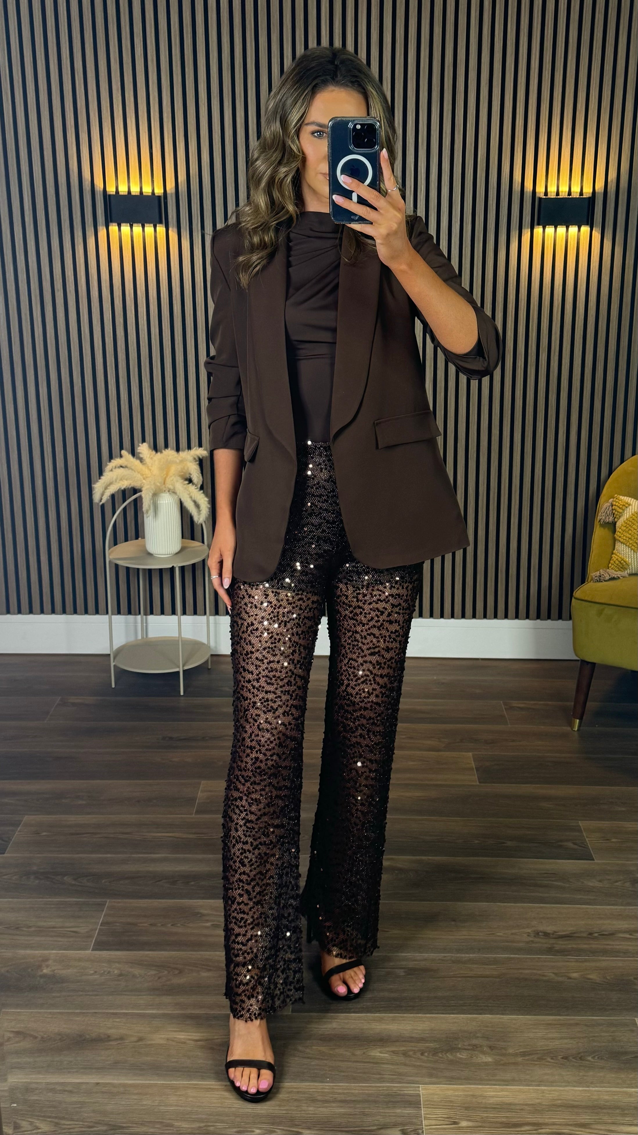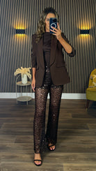 Karter Chocolate Brown Sequin Trousers
