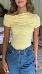 Kayleigh Yellow One Shoulder Ruched Top
