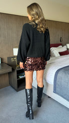 Bring the party wherever you go with the Kiki Brown Sequin Mini Skirt. Featuring an elasticated waistband for a comfy fit and a concealed zip fastening for a sleek look, this skirt dazzles with large, eye-catching sequins. Fully lined inside, it feels as good as it looks—perfect for dancing the night away in style!