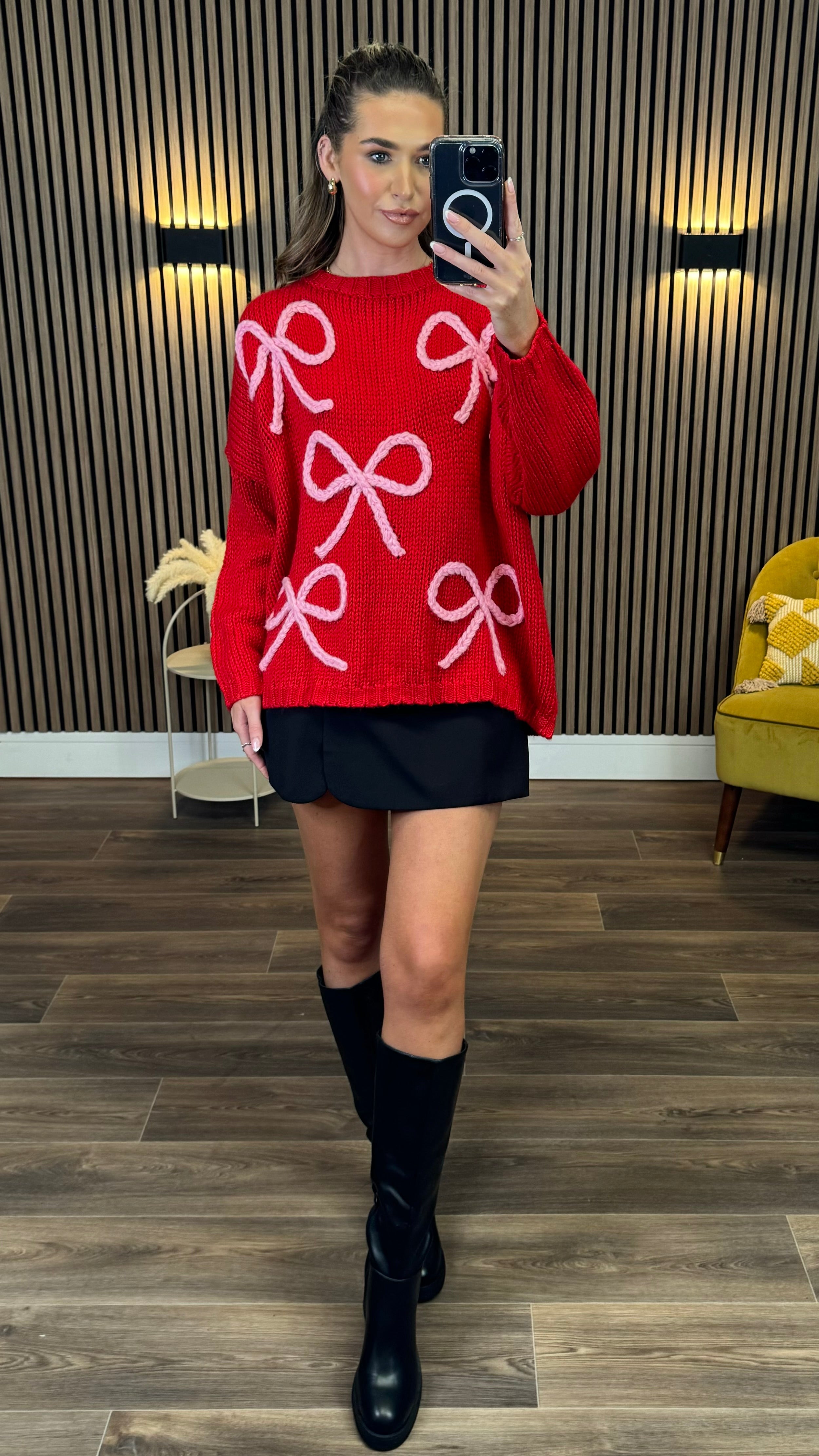 Cozy up in style with the Leigh-Anne Red & Pink Bow Design Jumper! Featuring a playful oversized fit and chunky knit, this jumper wraps you in warmth and comfort. The round neckline and long sleeves add classic charm, while the standout bow design brings a fun, flirty touch to your look. Perfect for layering or wearing solo on cooler days, it’s your new go-to for effortless, cheerful fashion.