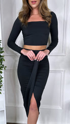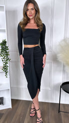 Leona Black Crop Top & Midi Skirt Co Ord
