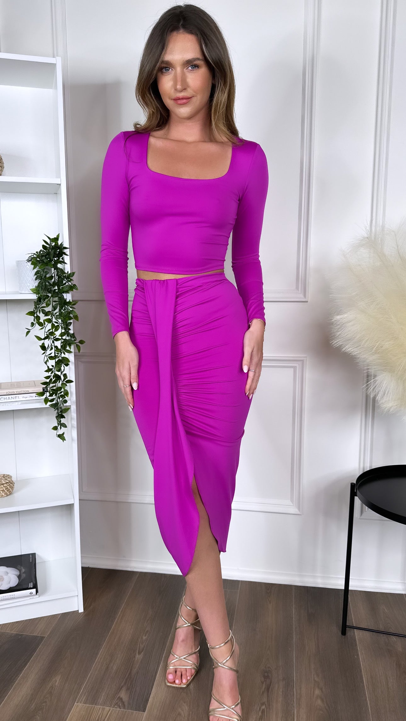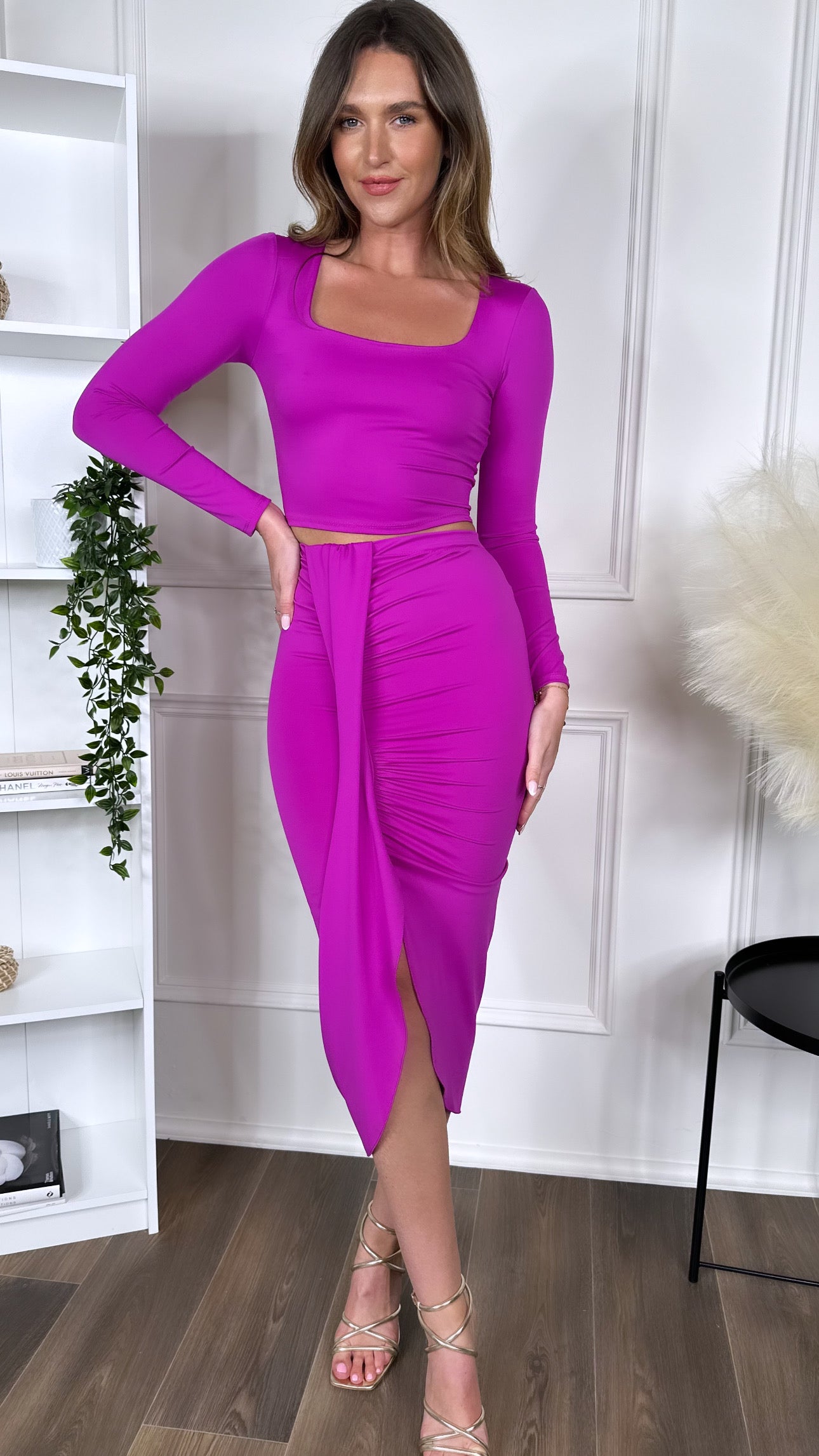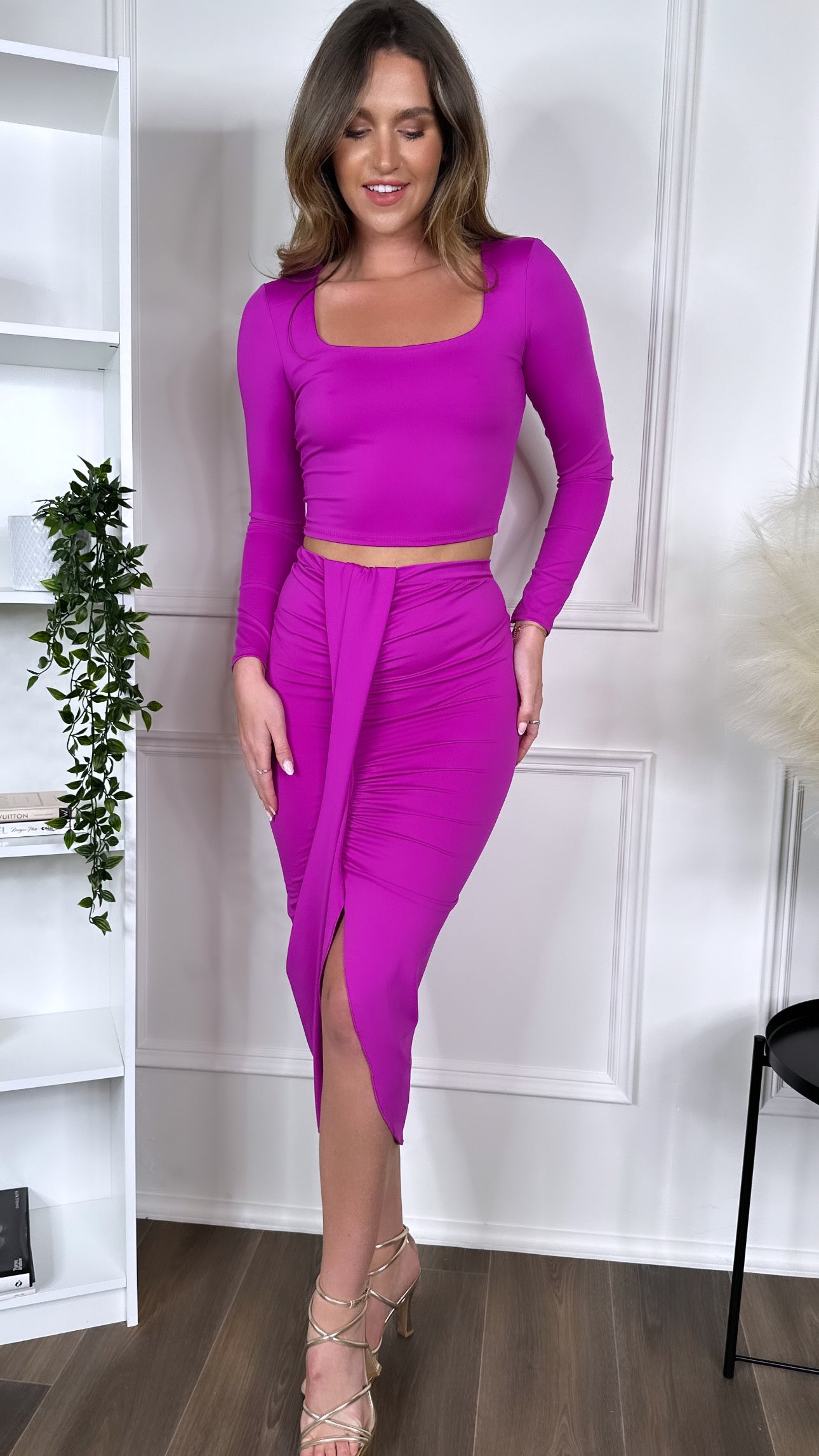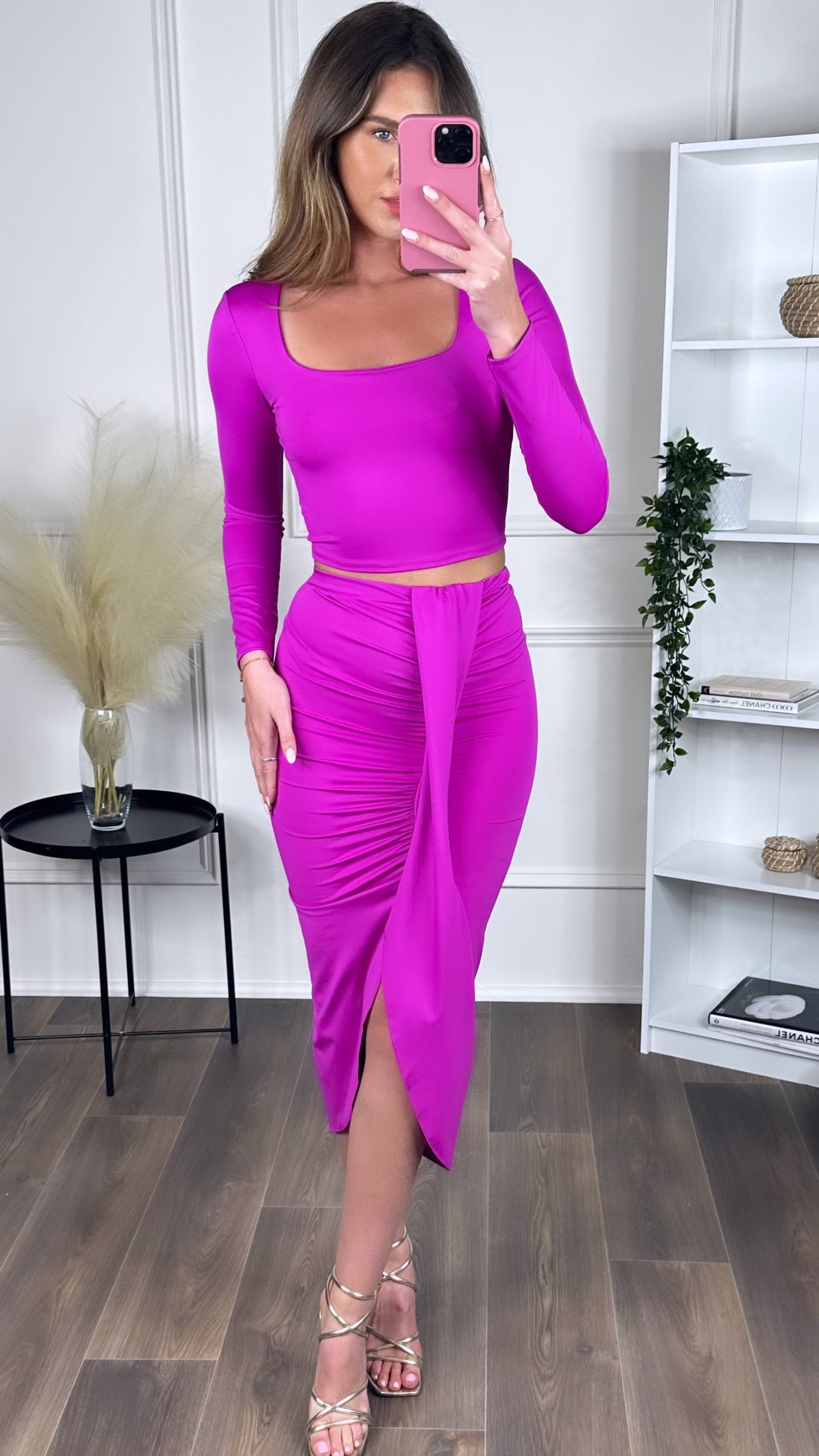 Leona Fuchsia Crop Top & Midi Skirt Co Ord