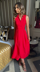 Unleash your confidence with our Makenna Red Collared Tailored Shirt Midi Dress. With its superior tailored fit, high quality fabric, and pleated skirts, this dress is perfect for any occasion. Whether it's a day or a night out with the girls, Makenna will be your go-to choice. Get ready to turn heads with this versatile dress!