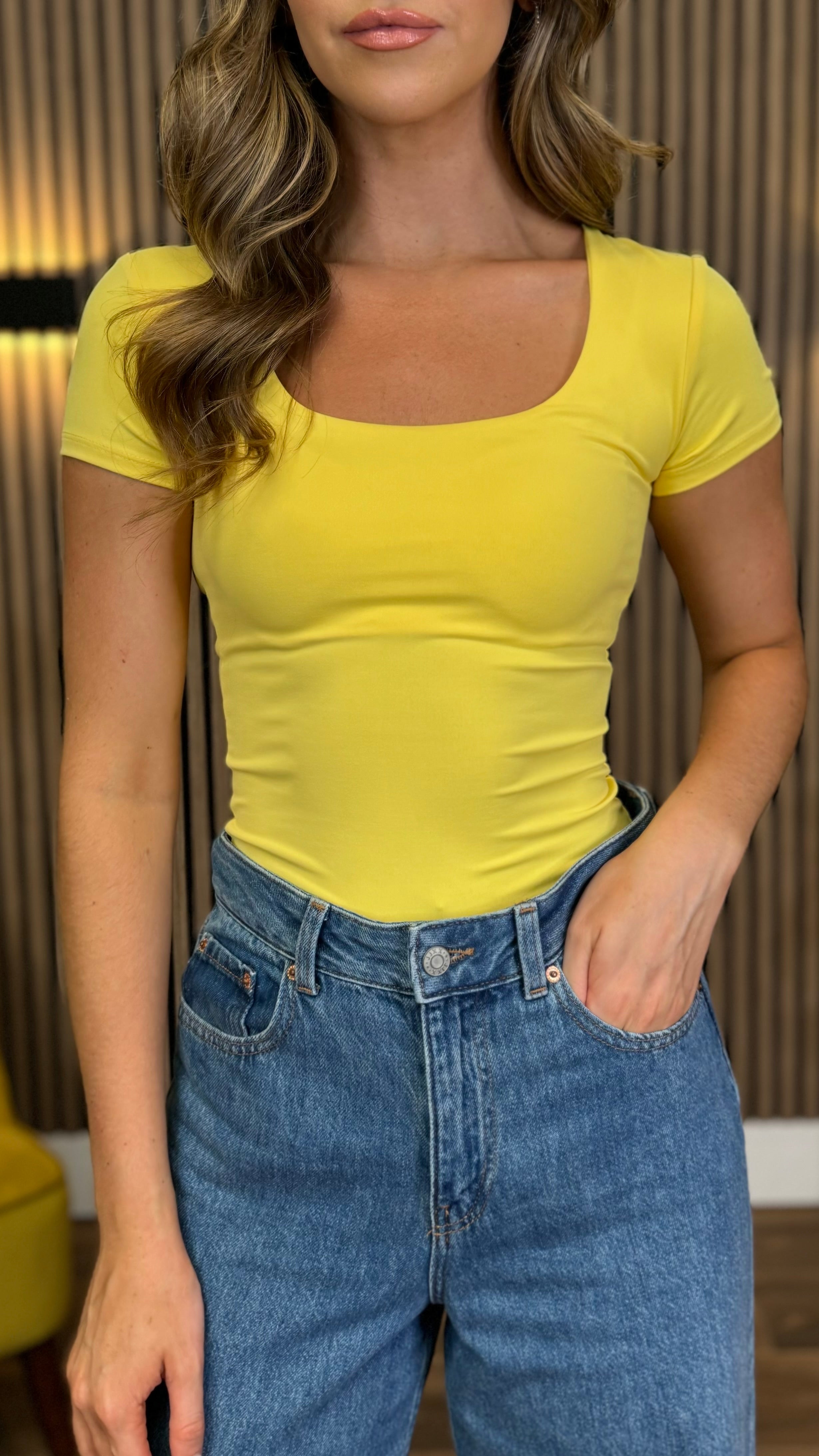 Margo Yellow Scoop Neck Short Sleeve Slinky Top
