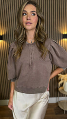 Stay cosy and cute in the Marlee Mocha Brown Puff Long Sleeve Cropped Sweatshirt! 🍂 With charming button details and puffed sleeves, it adds a fun twist to your casual look. Perfect for layering or rocking solo, this sweatshirt keeps you comfy while turning heads. ✨
