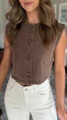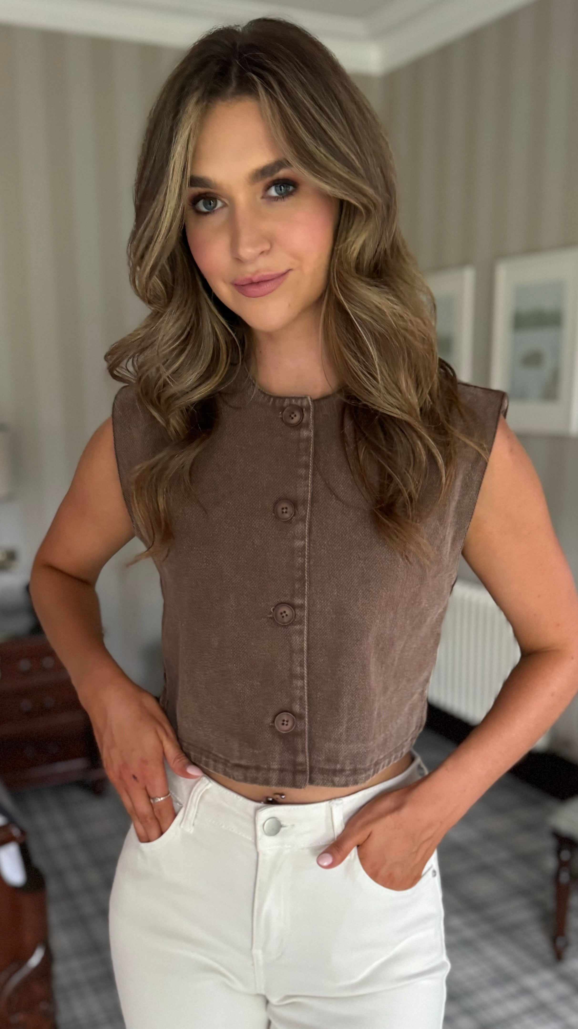 Add a splash of fun to your outfit with the Marsha Brown Denim Round Neck Waistcoat! 🎉 Crafted from comfy denim, this waistcoat brings a cool, casual vibe to any look. Perfect for layering, it adds a playful twist while keeping you stylish and comfy all day long. Ready to turn heads? 😉