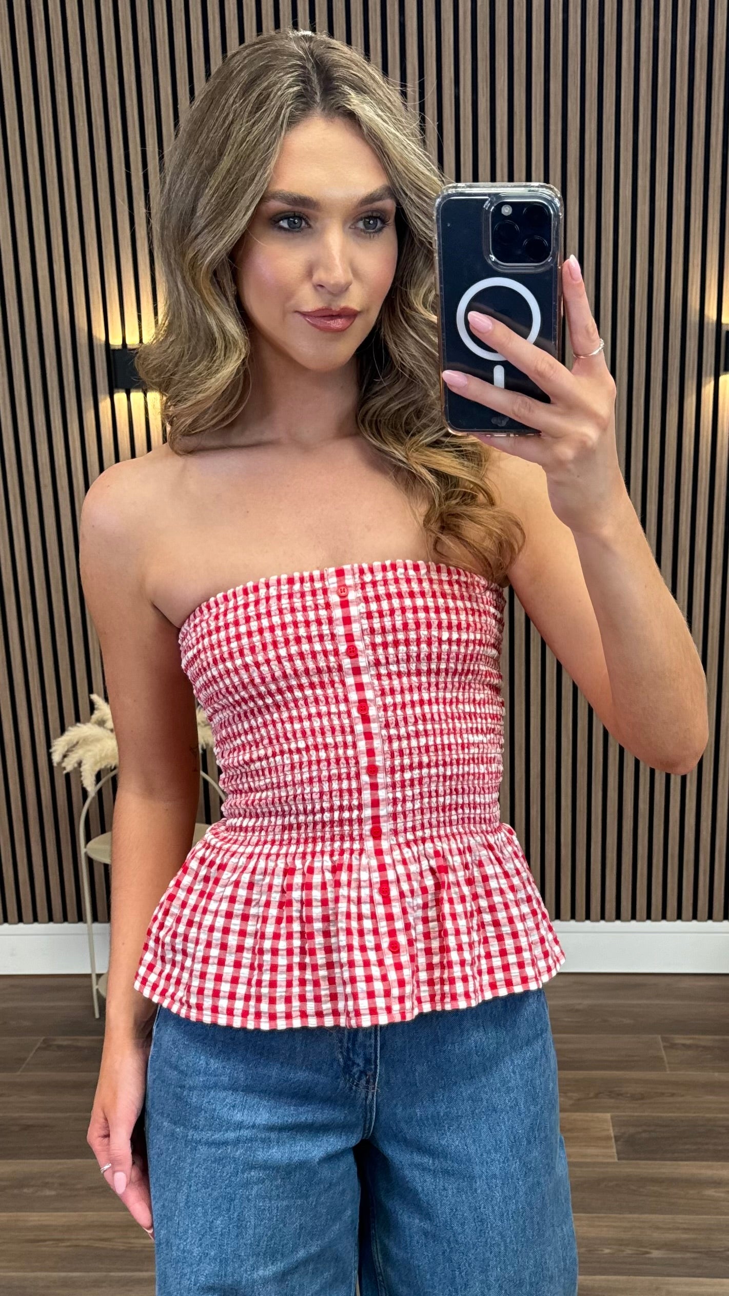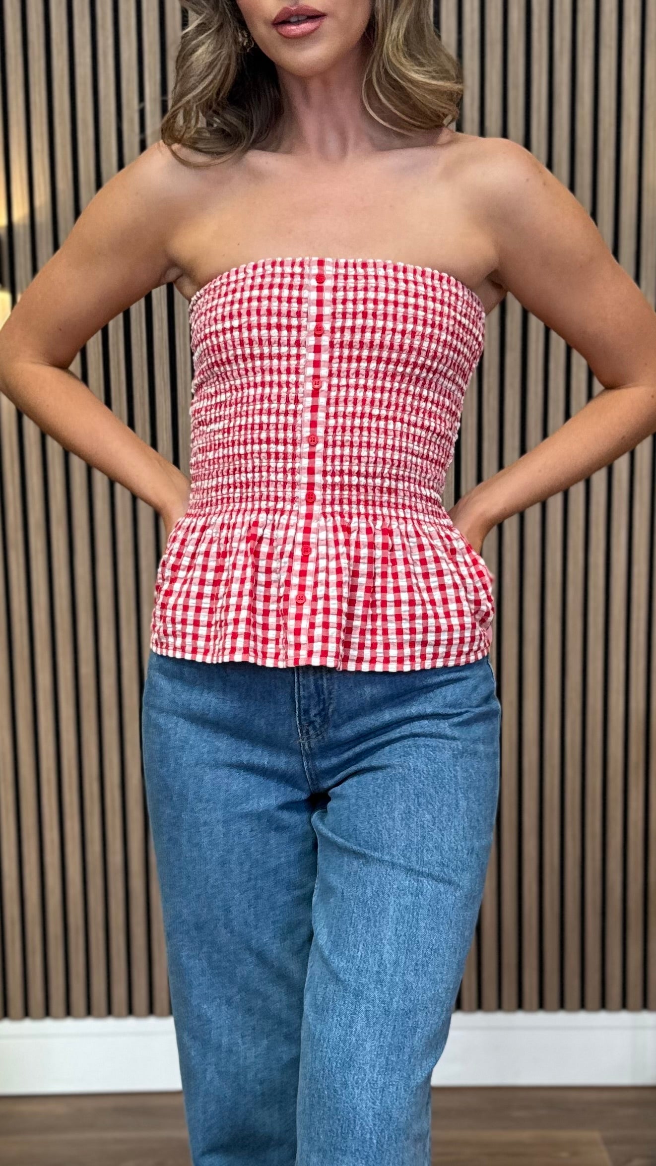 Add a splash of fun to your wardrobe with the Matilde Red & White Gingham Strapless Shirred Top! π This playful, shirred design hugs your silhouette perfectly, while the classic gingham pattern brings a fresh, retro vibe. Strapless and breezy, itβs ideal for sunny days and spontaneous adventures. Pair it with your favourite jeans or skirt and get ready to turn heads! πβ¨Β Β