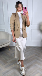 Sizing info: Our model is wearing the S and she is usually a UK 8. We recommend sticking with your usual size unless you are busty/ broad on the back or like your blazer to feel a little more roomy. S = UK 8-10, M = UK 10-12, L = UK 12-14.