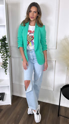 Look sharp and feel comfy with this McKinley Bright Green Ruched Sleeve Blazer! It's got all the features you need and then some: ruched sleeves, a trendy collar detail, faux pockets, and a lining to keep you comfortable 🔥